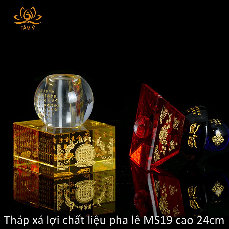 Cả tòa tháp được khắc Kinh Nhất Thiết Như Lai Tâm Bí Mật Toàn Thân Xá Lợi Bảo Khiếp Ấn Đà-la-ni. Đức Phật nói: “Hãy lắng nghe! Hãy nghĩ nhớ đừng quên! Tất cả Như Lai hiện tại, vị lai phân chia dáng dấp sáng rực của thân, toàn thân Xá Lợi của chư Phật quá khứ đều ở tại Bảo Khiếp An Đà La Ni, hết thảy ba Thân của các Như Lai đó cũng ở ngay trong đó”. Kinh vô vàn lợi lạc diệu dụng, kính mời quý vị tìm hiểu thêm qua các tài liệu khác. Shop có bán kèm đế đèn led, đế có nhiều màu sắc quý vị có thể tùy chọn chế độ. Khi tháp được đặt lên đế trông tháp sẽ đẹp, trang nghiêm và lung linh hơn! Mỗi đế sẽ có kích thước sao cho phù hợp với kích cỡ của tháp nên quý vị yên tâm khi mua đế. Xá lợi là từ ngữ phiên âm tiếng Phạn: sarira – nghĩa đen là “những hạt cứng”. Theo ghi chép trong lịch sử Phật giáo, khi Đức Phật Thích Ca Mâu Ni viên tịch, các tín đồ đã đem xác của ngài đi hỏa táng. Sau khi lửa tàn, họ phát hiện thấy trong phần tro còn lại có lẫn rất nhiều tinh thể trong suốt; hình dạng và kích thước khác nhau; cứng như thép, lóng lánh và tỏa ra những tia sáng muôn màu; giống như những viên ngọc quý. Họ đếm được cả thảy 84.000 viên, đựng đầy trong 8 hộc và 4 đấu. Nó được đặt tên là xá lợi, được coi là một bảo vật đặc biệt quý hiếm của Phật giáo.