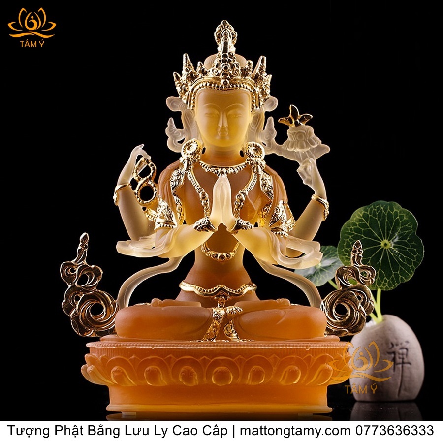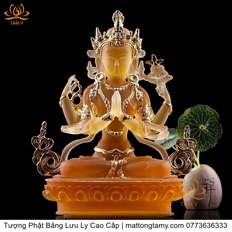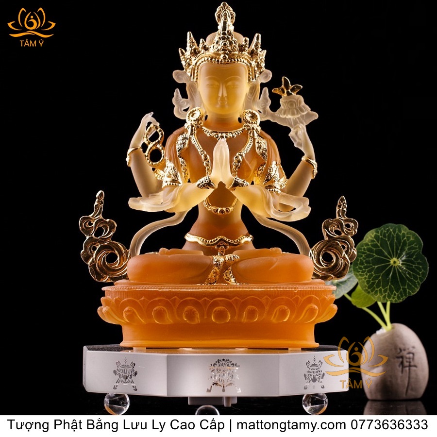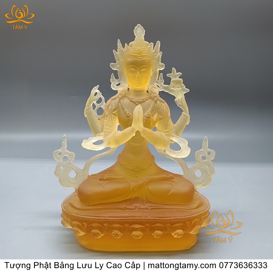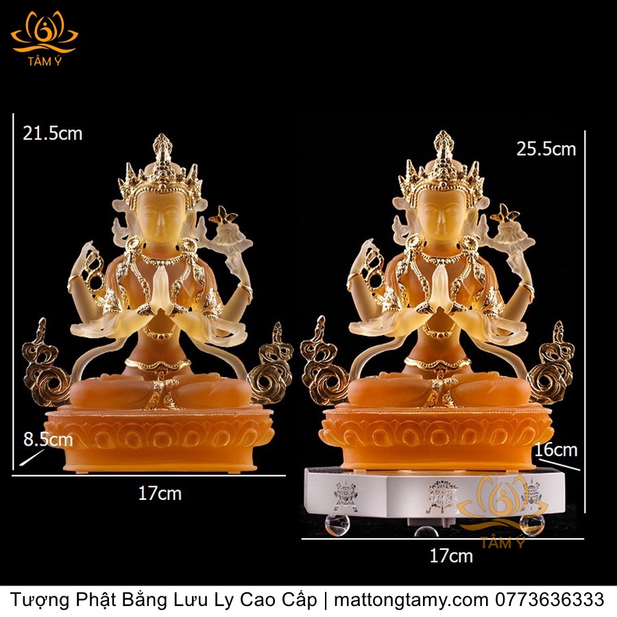 |Cao 21.5cm| Tượng Phật Quan Âm Tứ Thủ Bằng Lưu Ly Cao Cấp, Thiết Kế Sang Trọng TP175