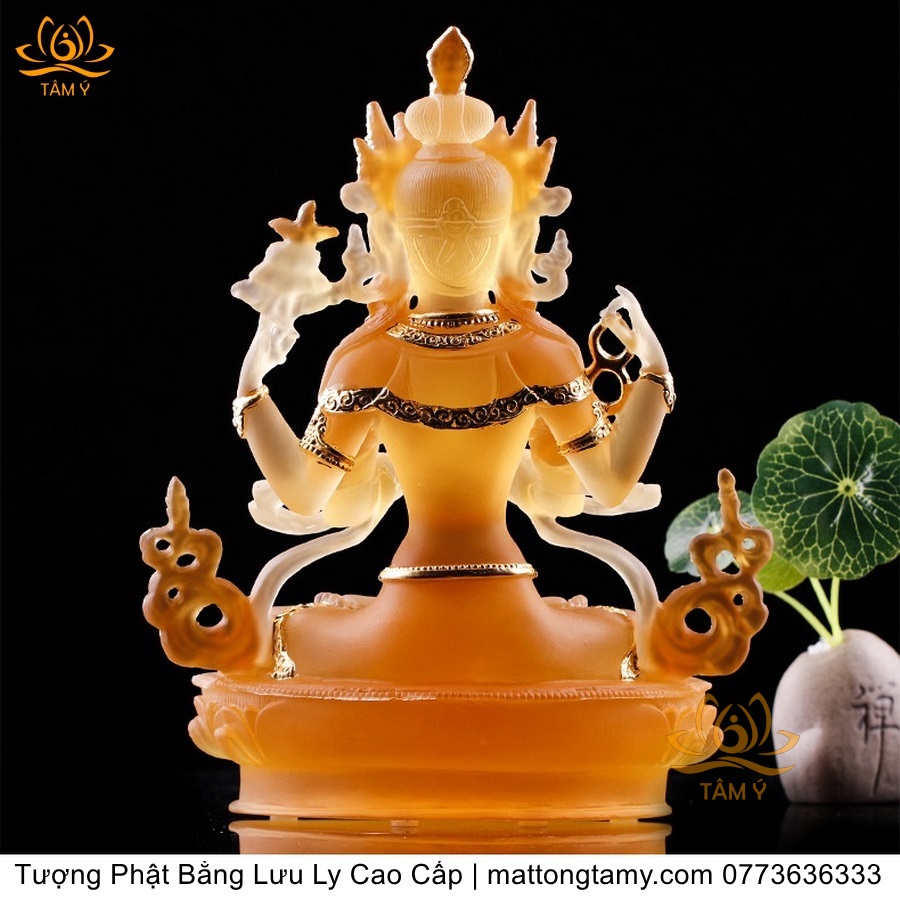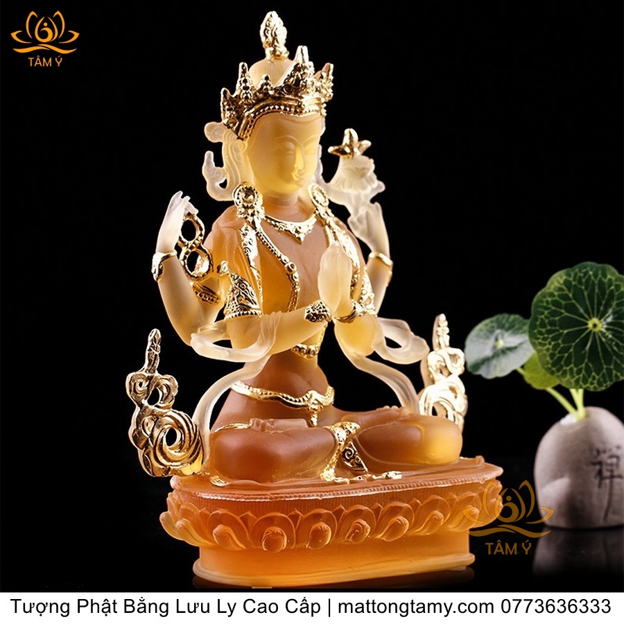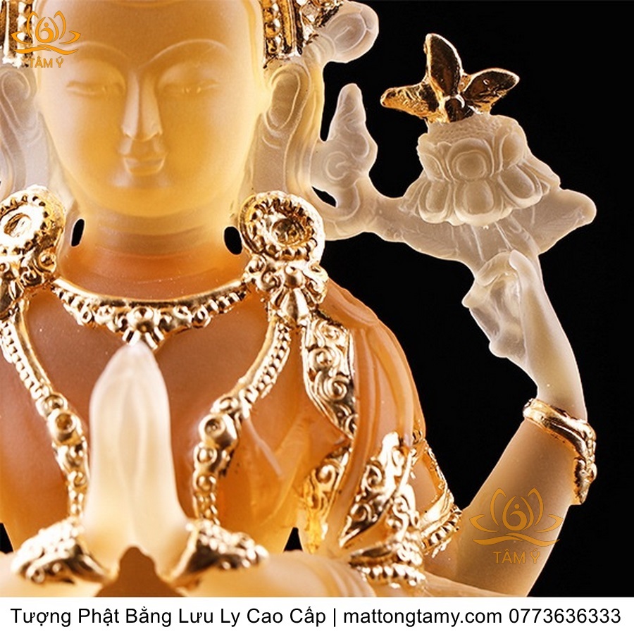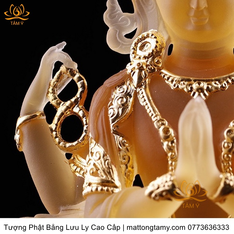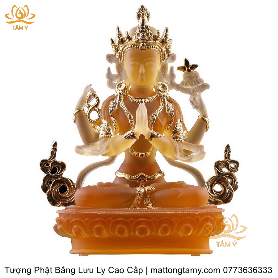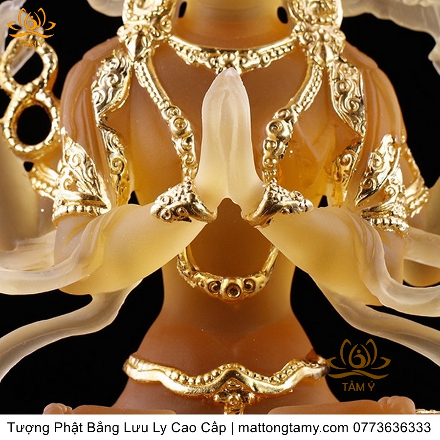 |Cao 21.5cm| Tượng Phật Quan Âm Tứ Thủ Bằng Lưu Ly Cao Cấp, Thiết Kế Sang Trọng TP175