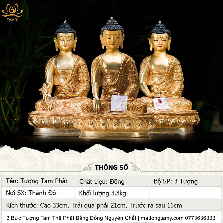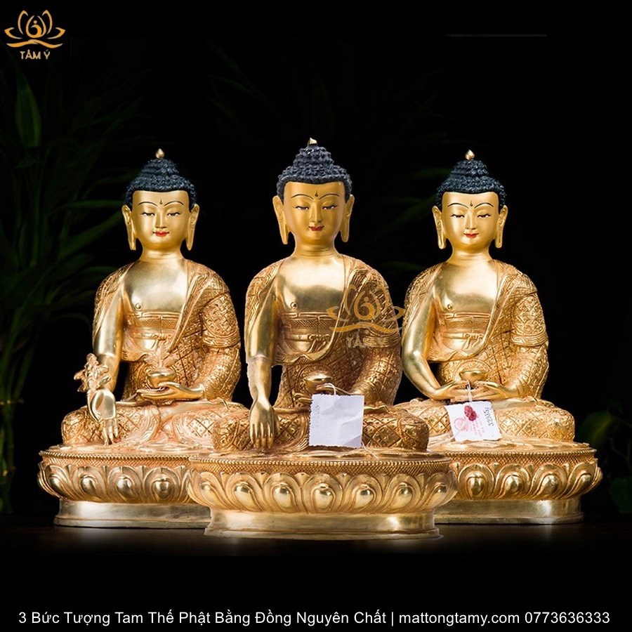 |Cao 36.5cm| Tượng Phật Tam Thế Phật Bằng Đồng Đỏ Nguyên Chất, Thiết Kế Sang Trọng TP99