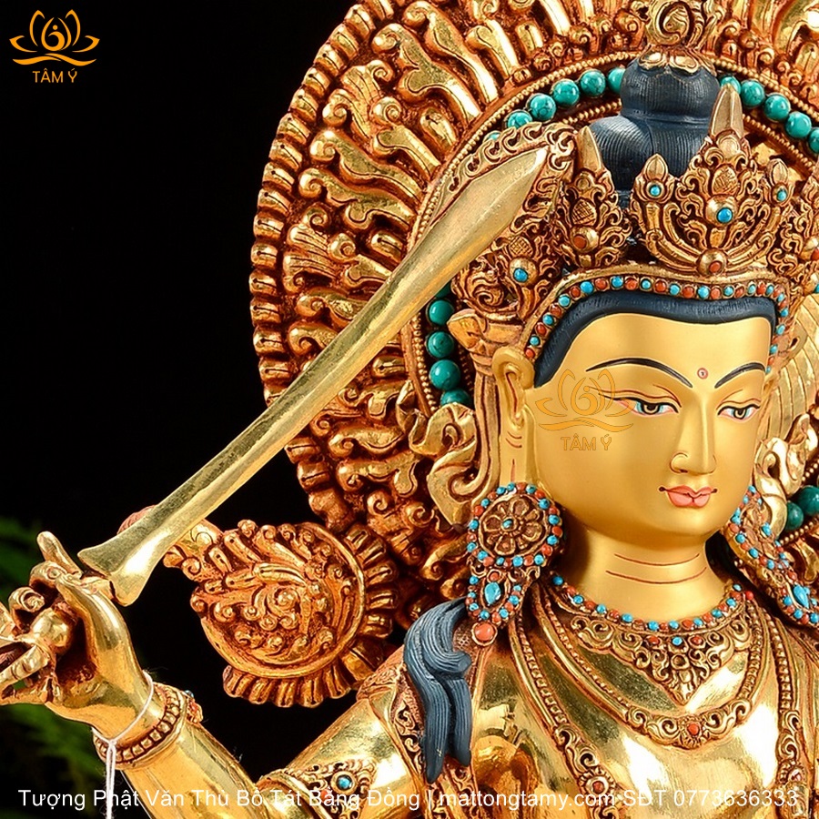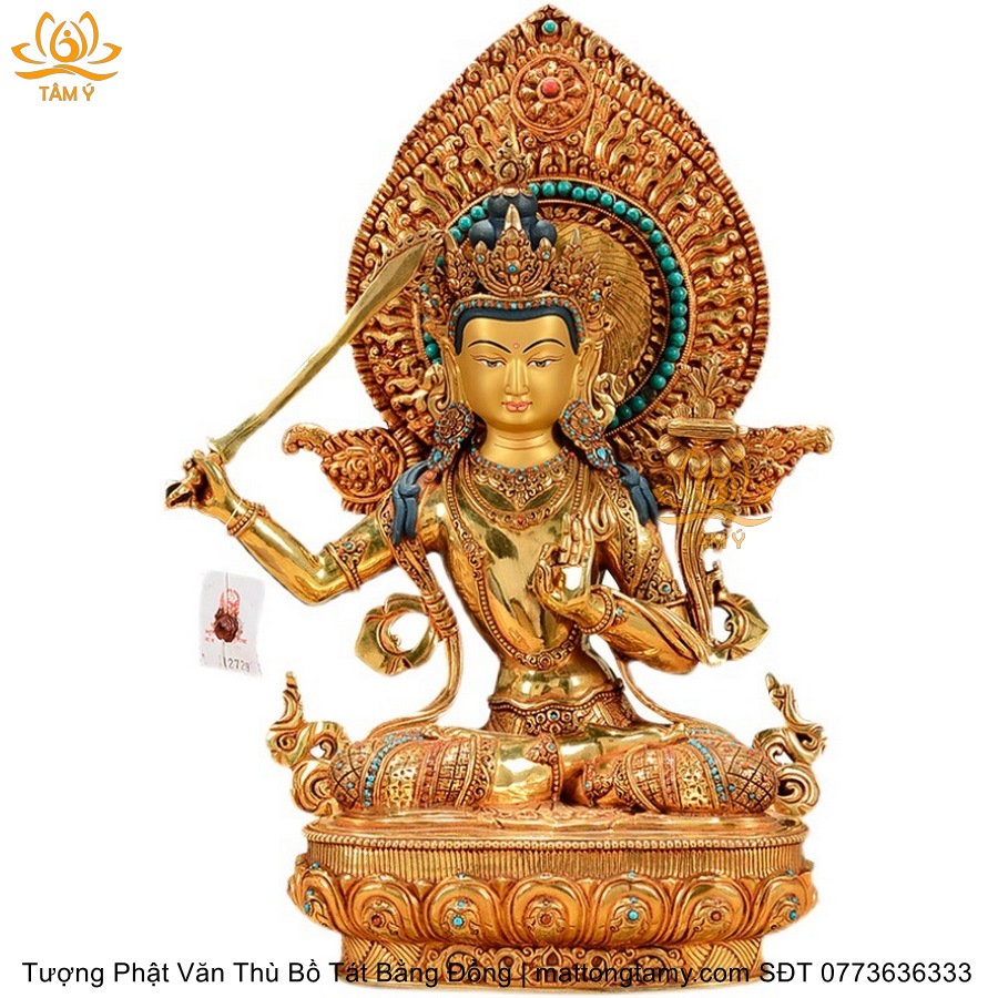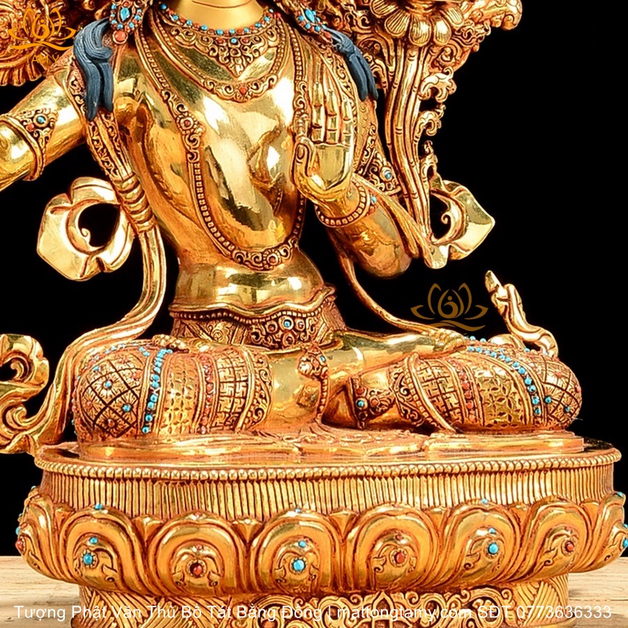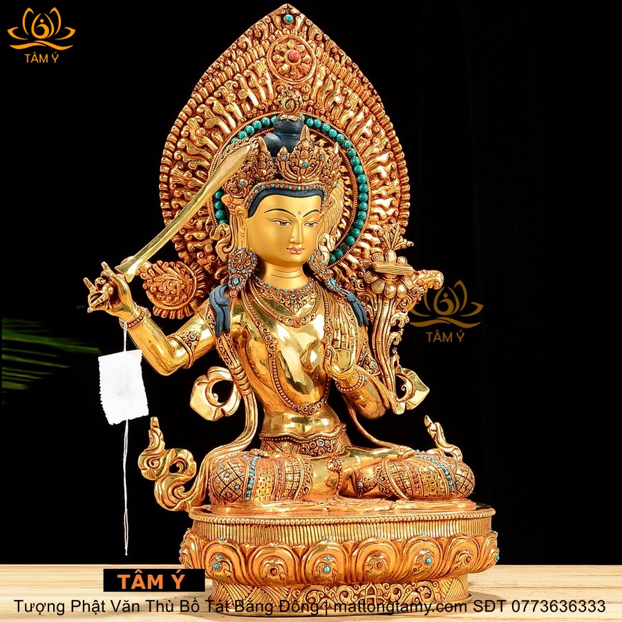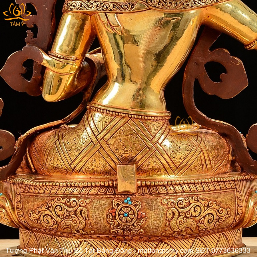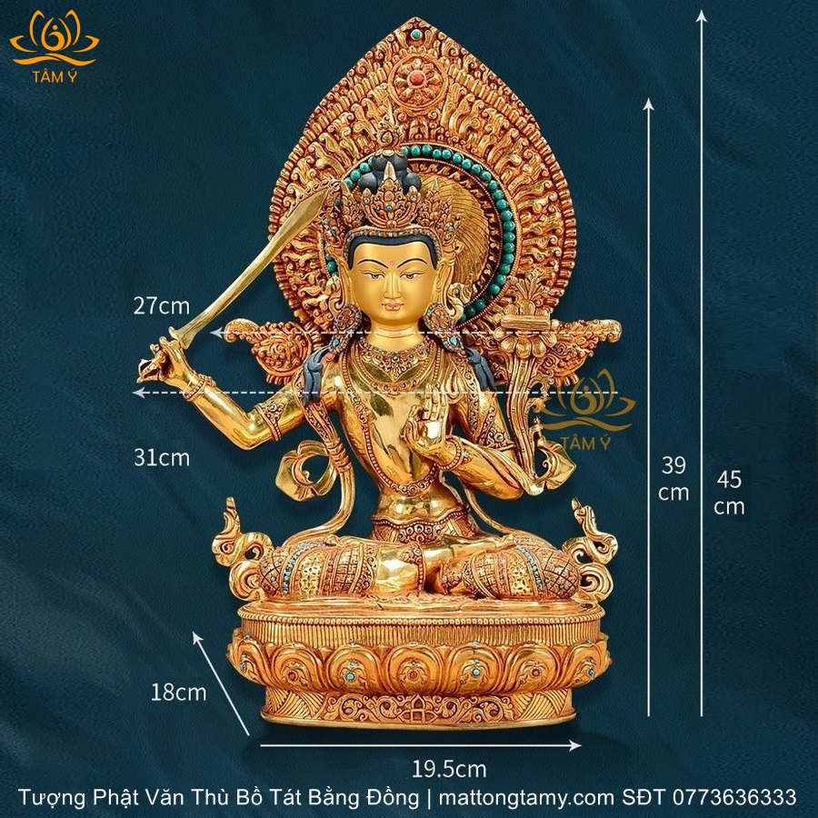 |Cao 43cm| Tượng Phật Văn Thù Bồ Tát Bằng Đồng Nguyên Chất, Dát Vàng 24K TP37