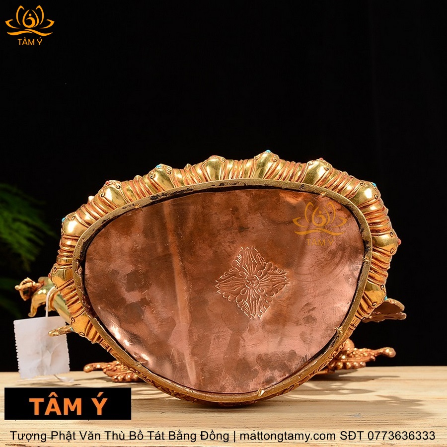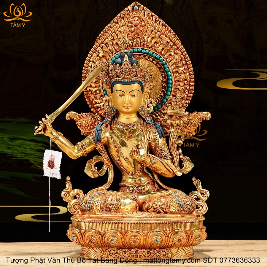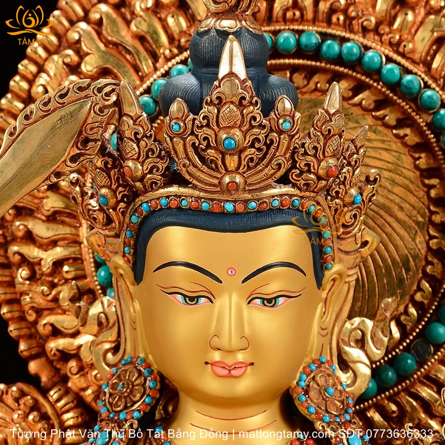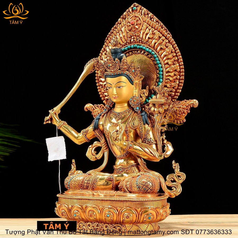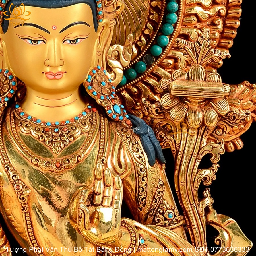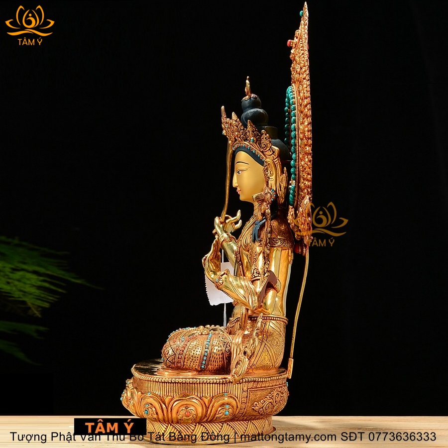 |Cao 43cm| Tượng Phật Văn Thù Bồ Tát Bằng Đồng Nguyên Chất, Dát Vàng 24K TP37