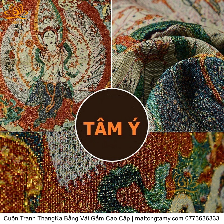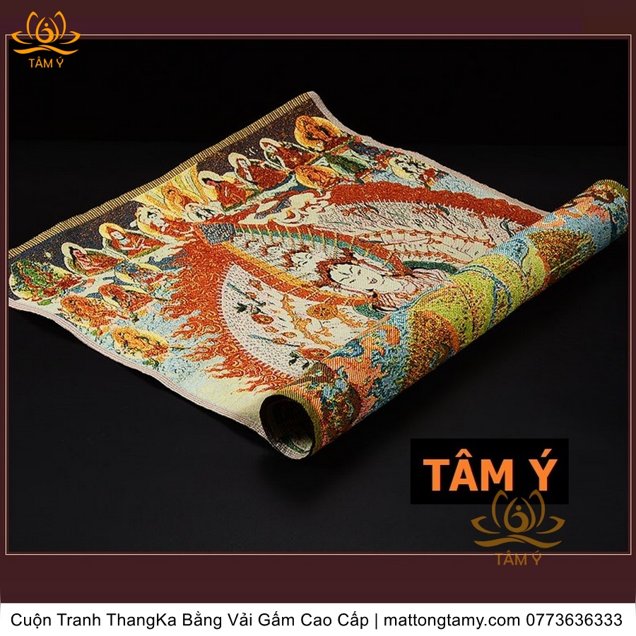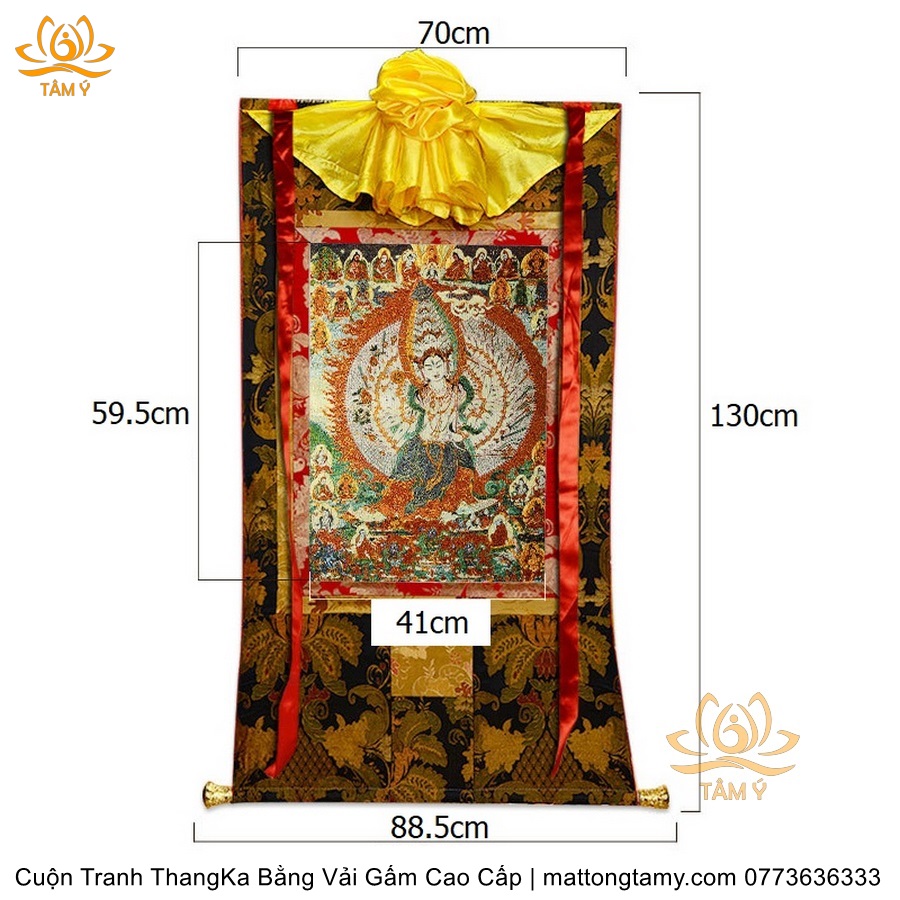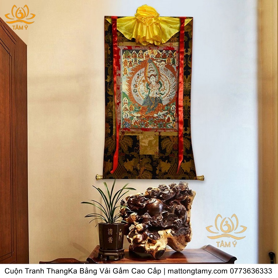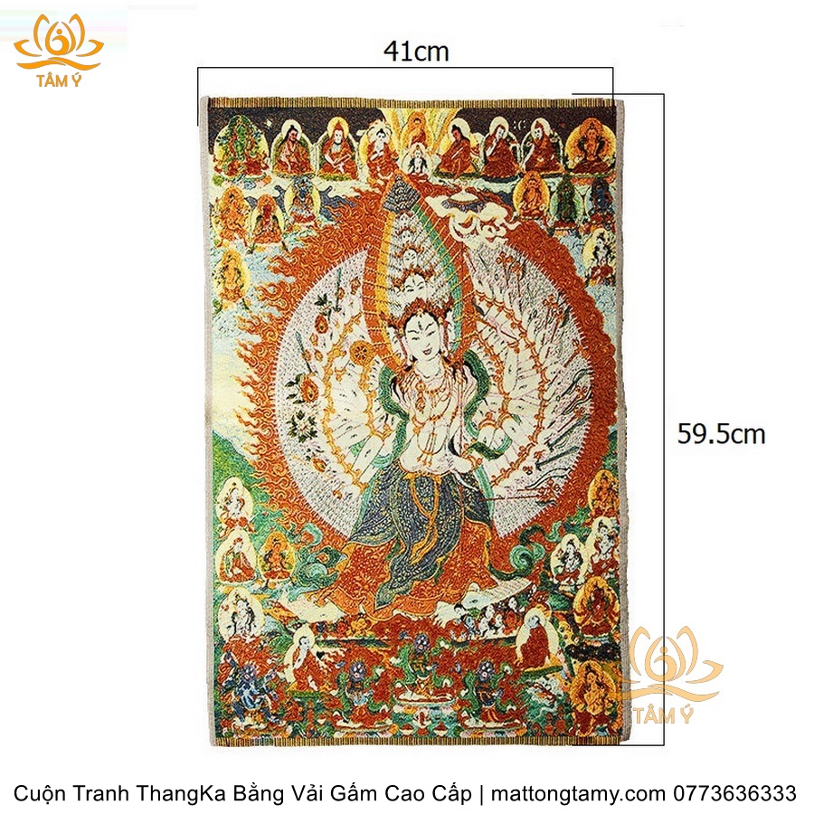 Cuộn Tranh ThangKa Ngài Quan Âm Thiên Thủ Thiên Nhãn Bồ Tát Bằng Vải Gấm Cao Cấp, Kiểu 1, TCT22
