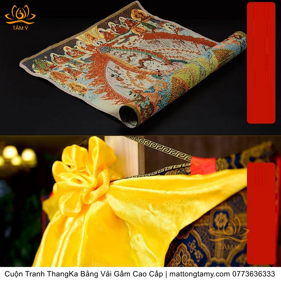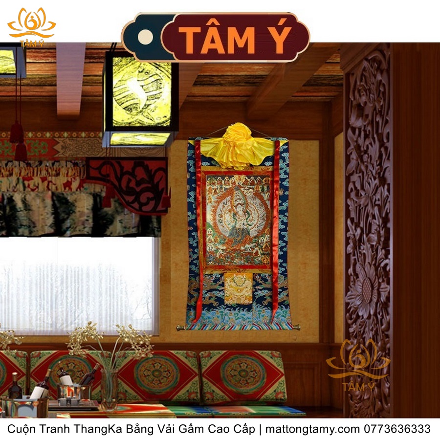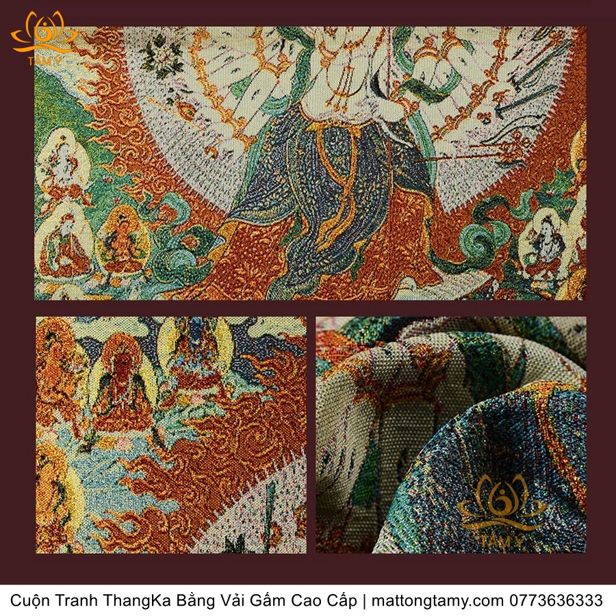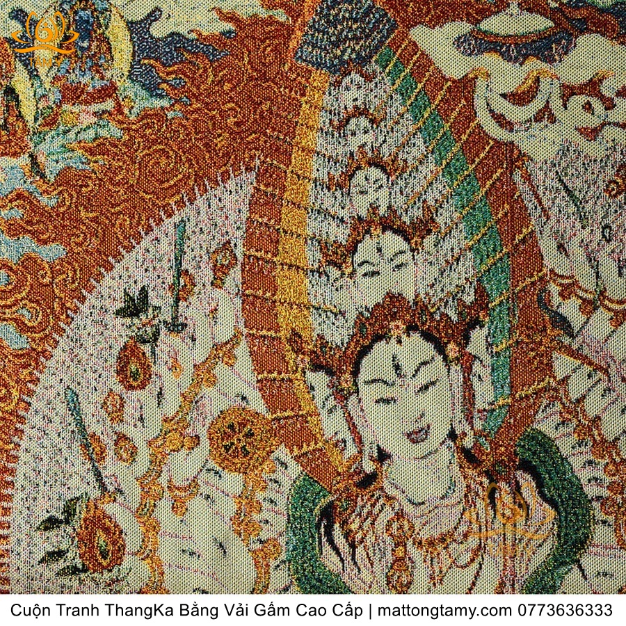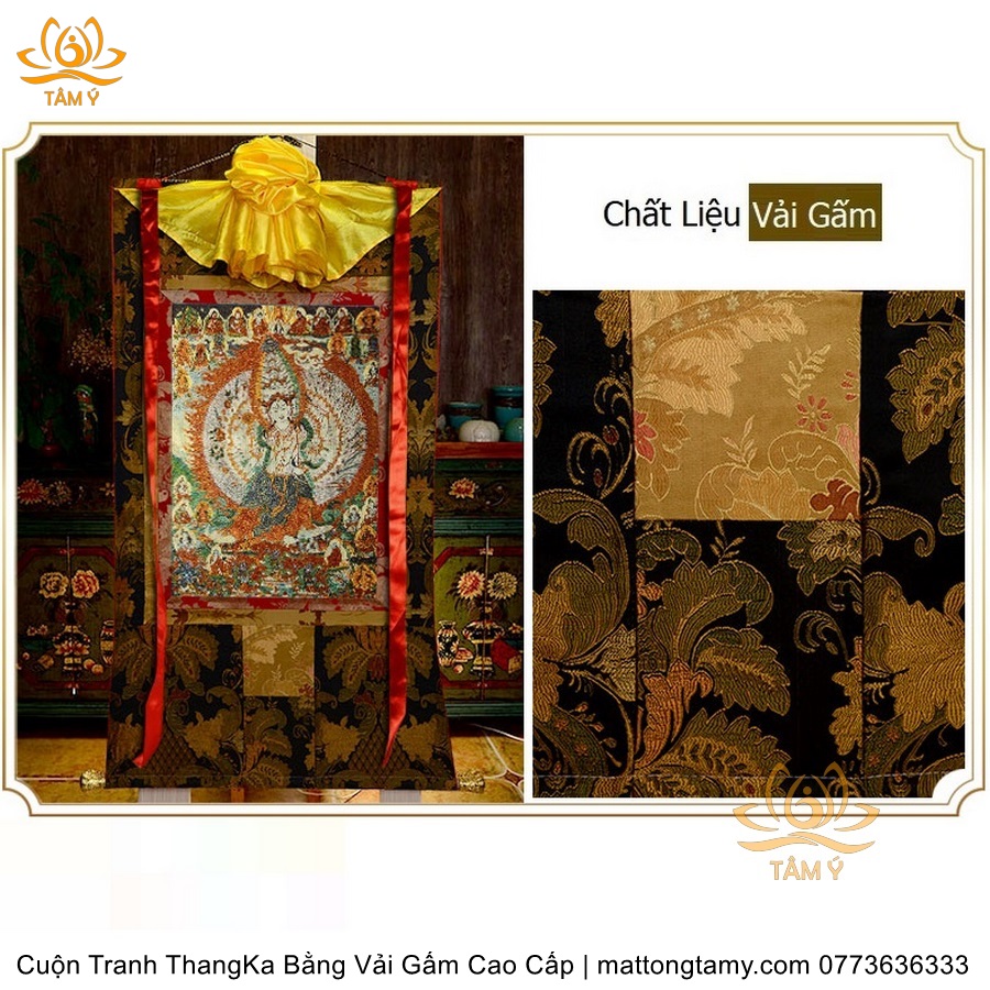 Cuộn Tranh ThangKa Ngài Quan Âm Thiên Thủ Thiên Nhãn Bồ Tát Bằng Vải Gấm Cao Cấp, Kiểu 1, TCT22