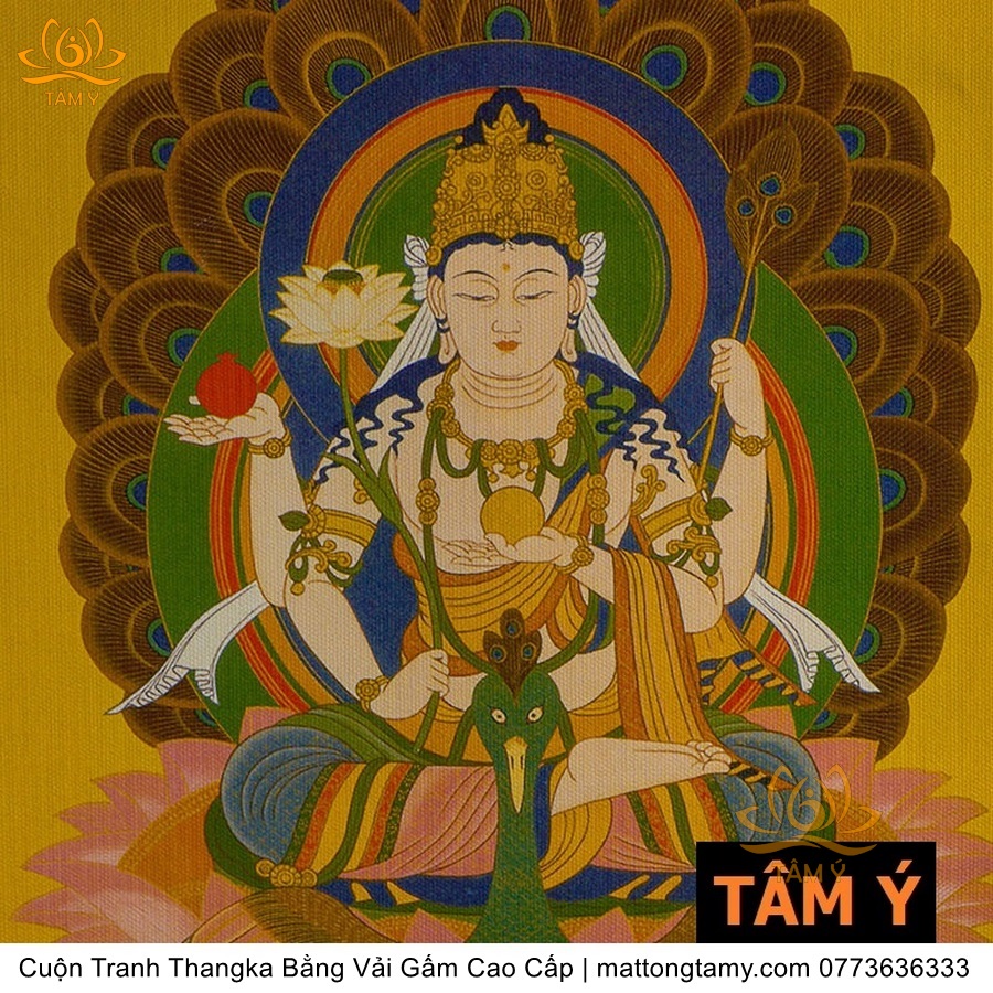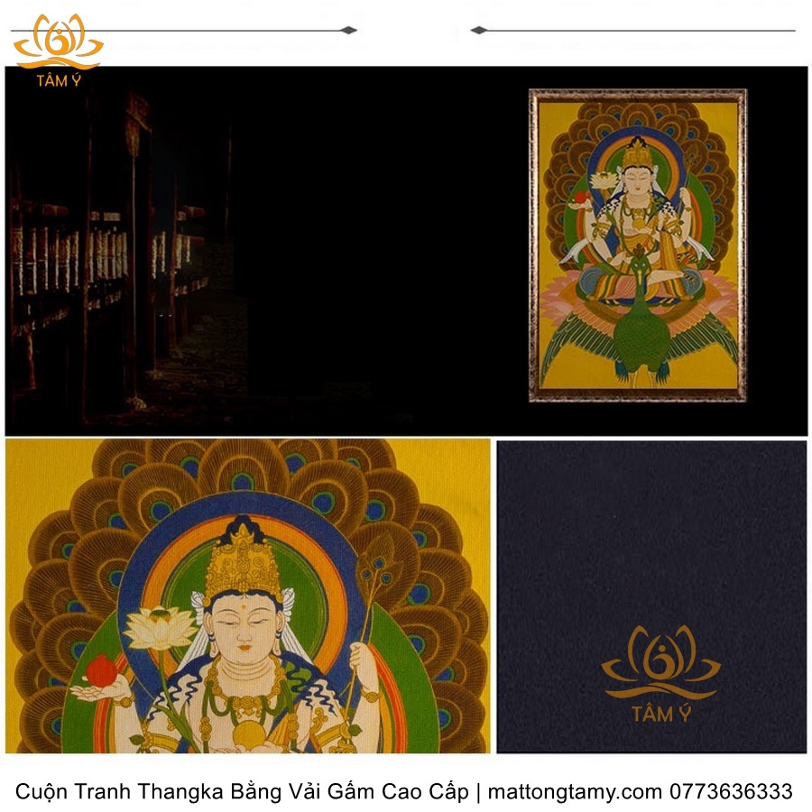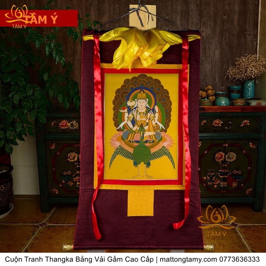 Cuộn Tranh ThangKa Ngài Quan Âm Tứ Thủ Bằng Vải Gấm Cao Cấp, Kiểu 5, TCT95