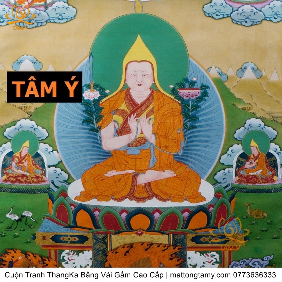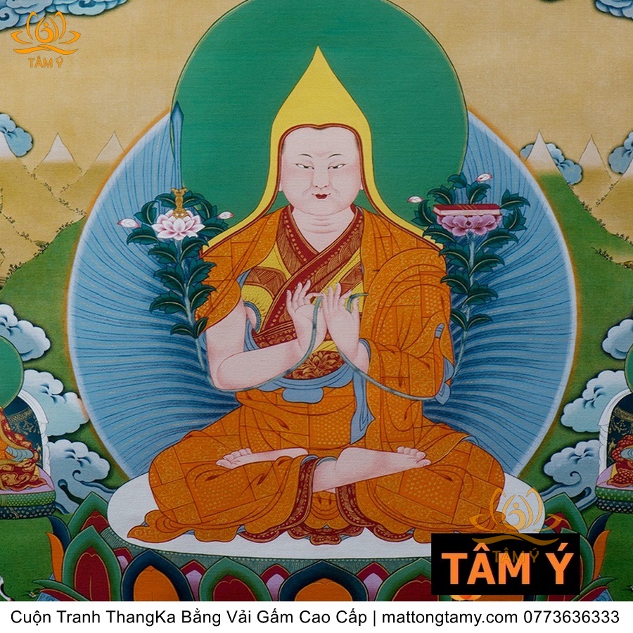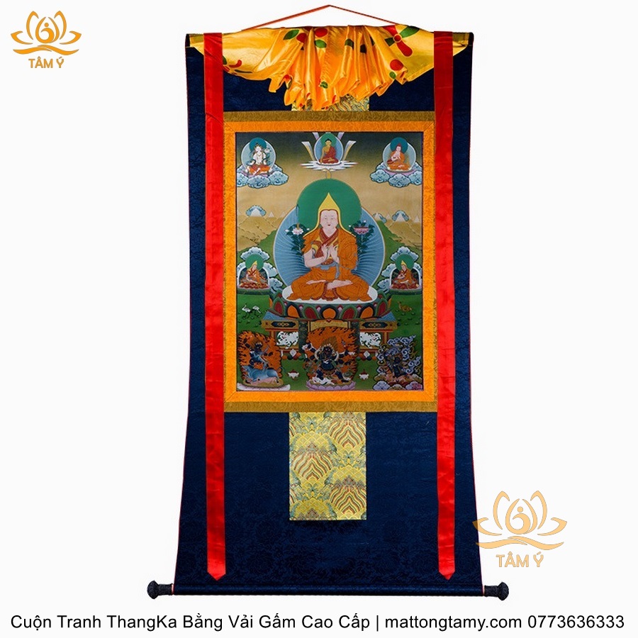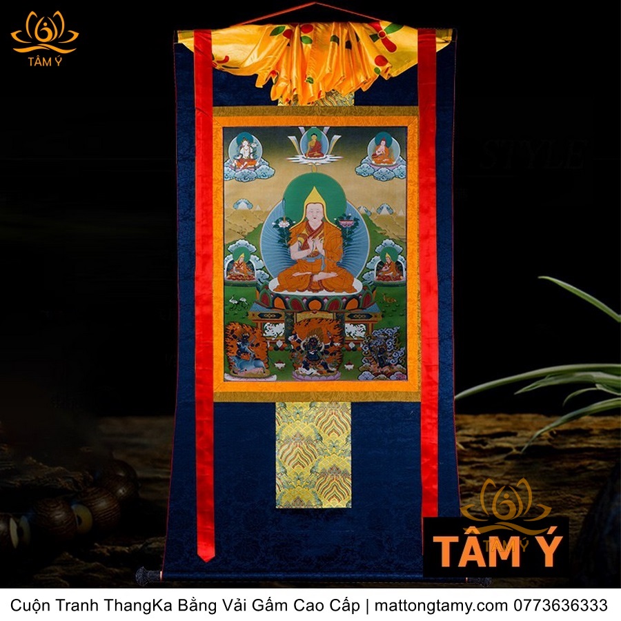 Cuộn Tranh ThangKa Ngài Tổ Longchenpa Bằng Vải Gấm Cao Cấp, Kiểu 1, TCT17