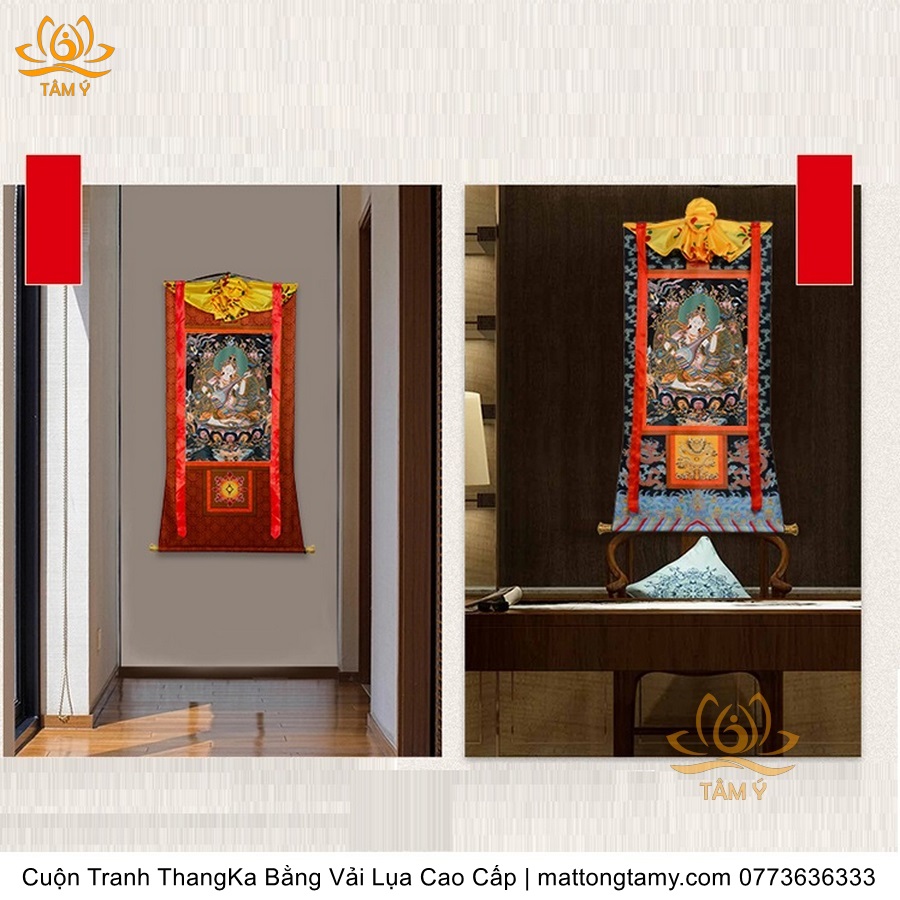 Cuộn Tranh ThangKa Nữ Thần Âm Thanh Bằng Vải Gấm Cao Cấp, Kiểu 1, TCT42