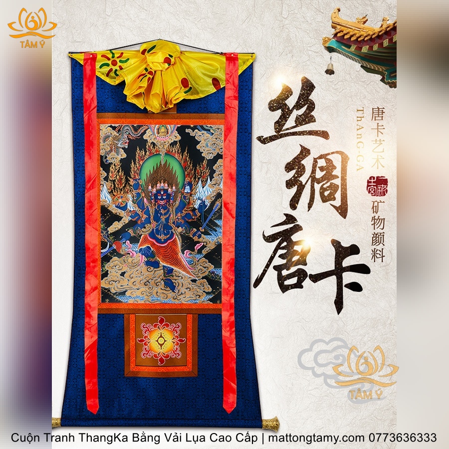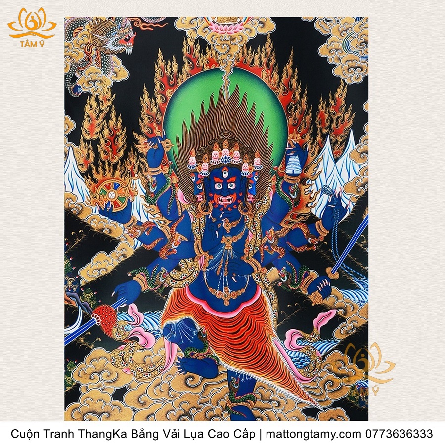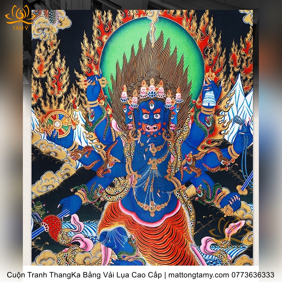Cuộn Tranh ThangKa Phật Đại Uy Đức Minh Vương Yamatanka Bằng Vải Gấm Cao Cấp, Kiểu 2, TCT56