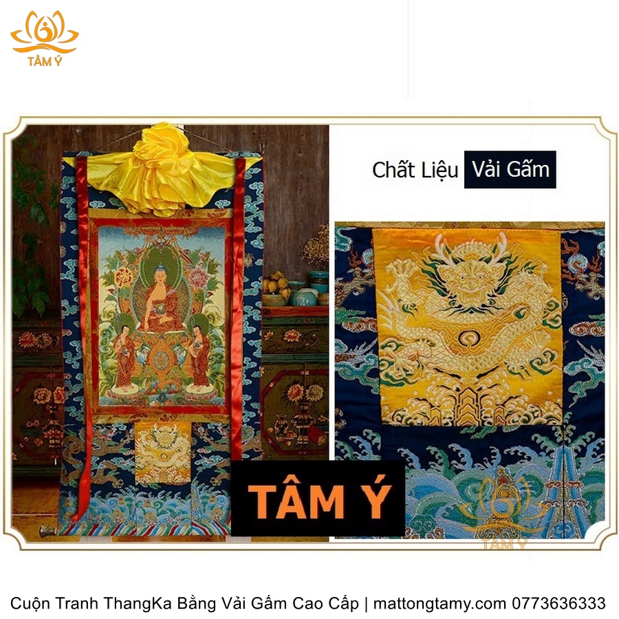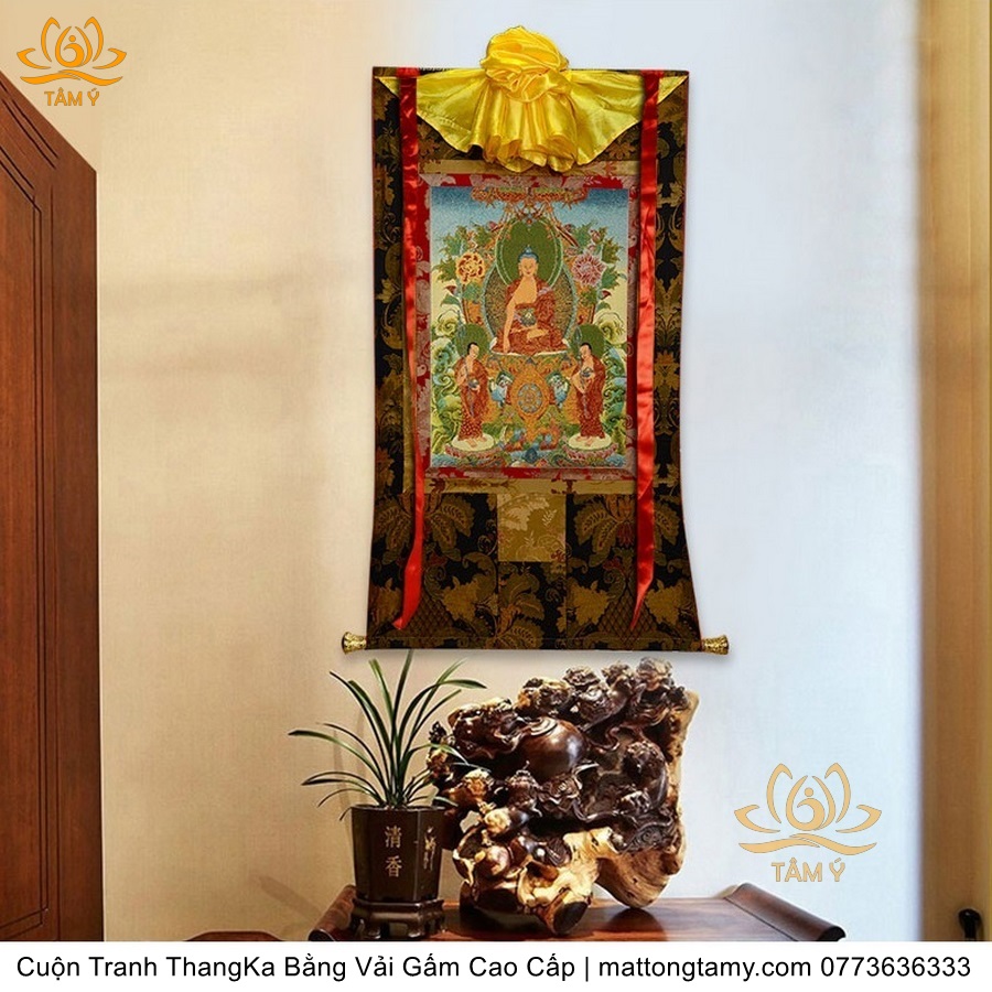 Cuộn Tranh ThangKa Phật Thích Ca Mâu Ni Bằng Vải Gấm Cao Cấp, Kiểu 5, TCT26