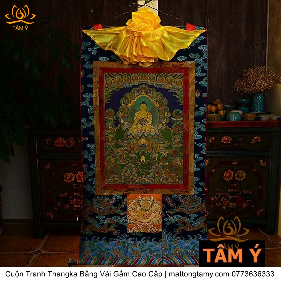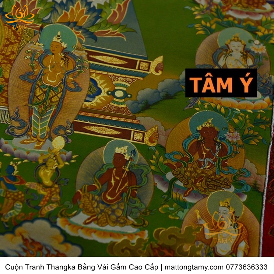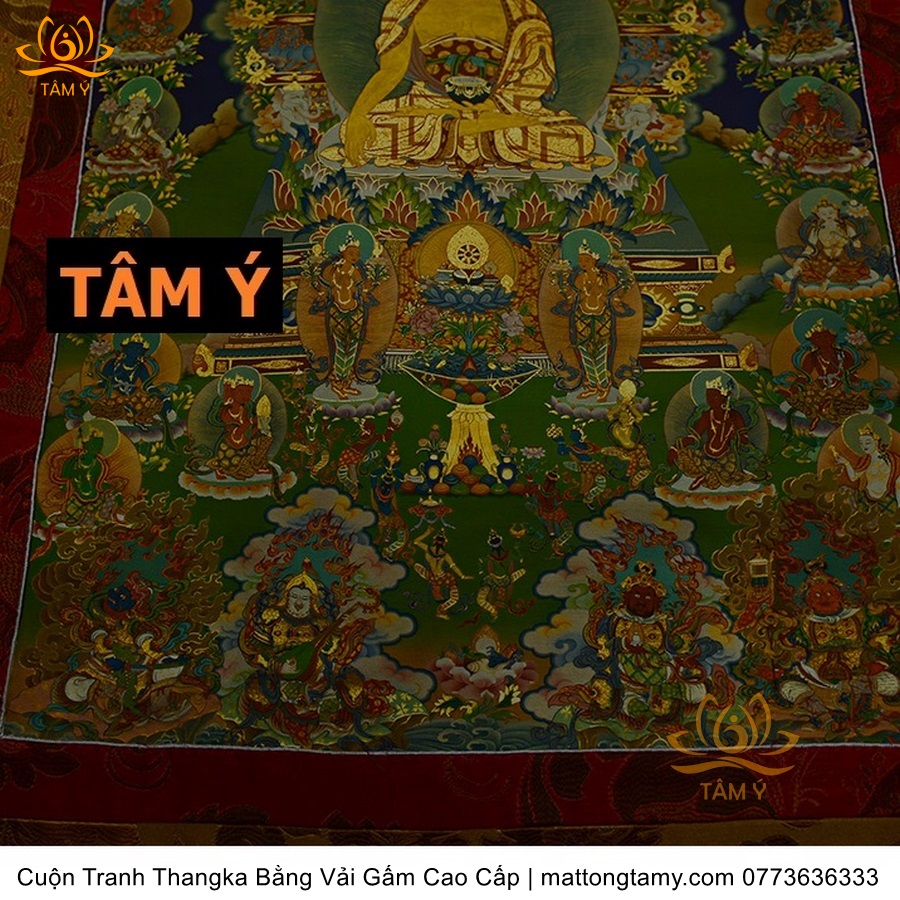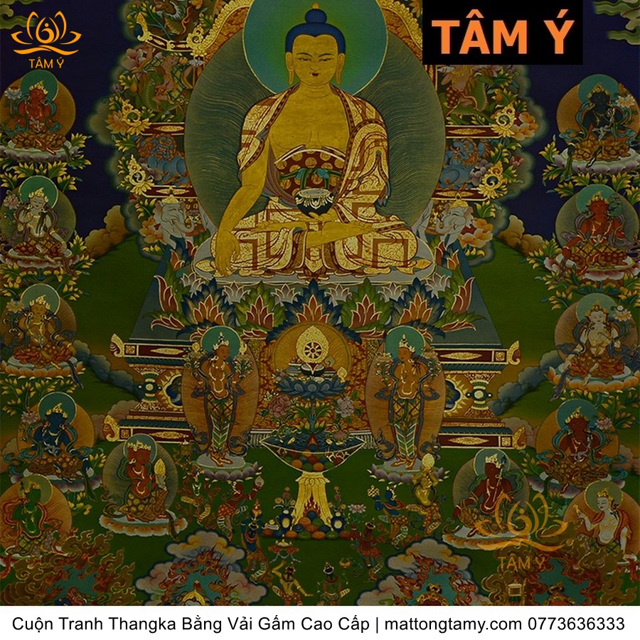 Cuộn Tranh ThangKa Phật Thích Ca Và Tám Vị Bồ Tát Mật Tông Bằng Vải Gấm Cao Cấp, Kiểu 11, TCT90