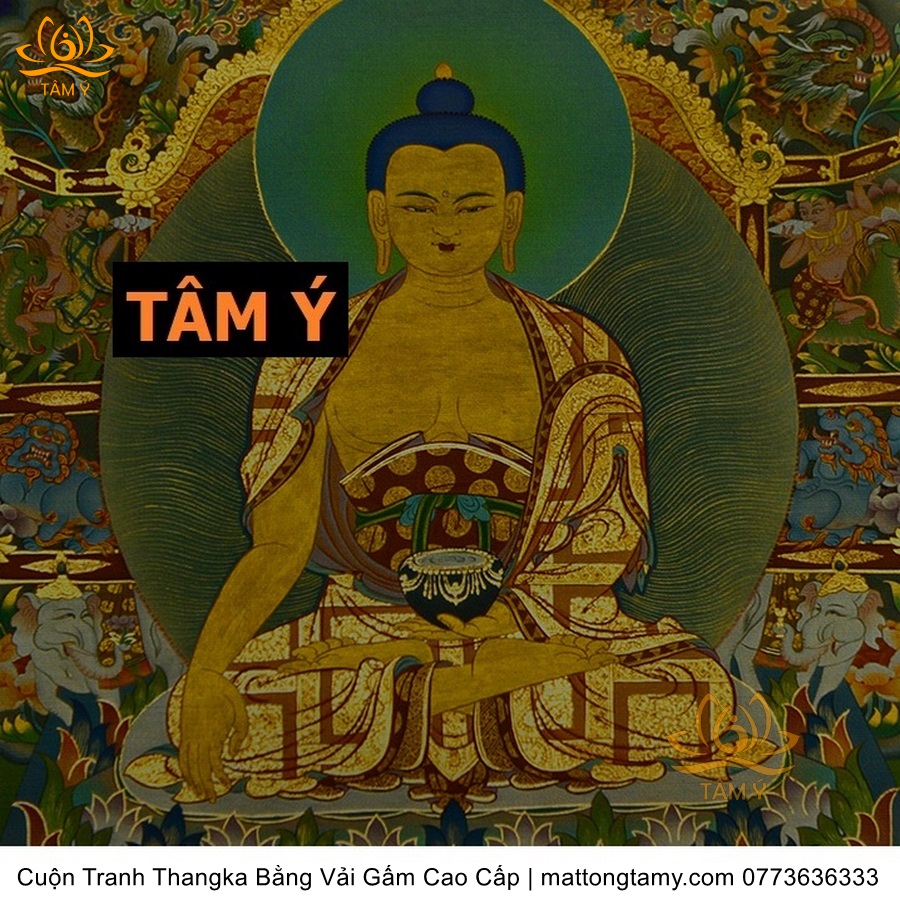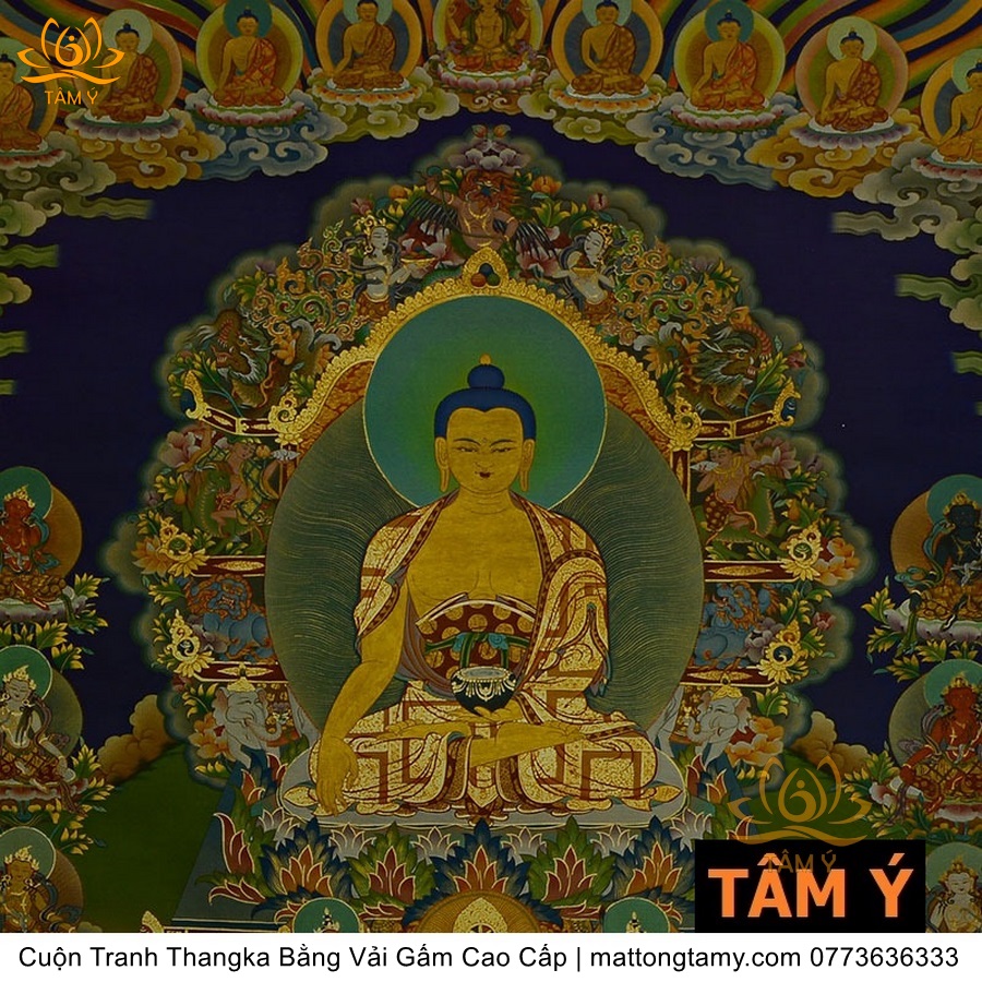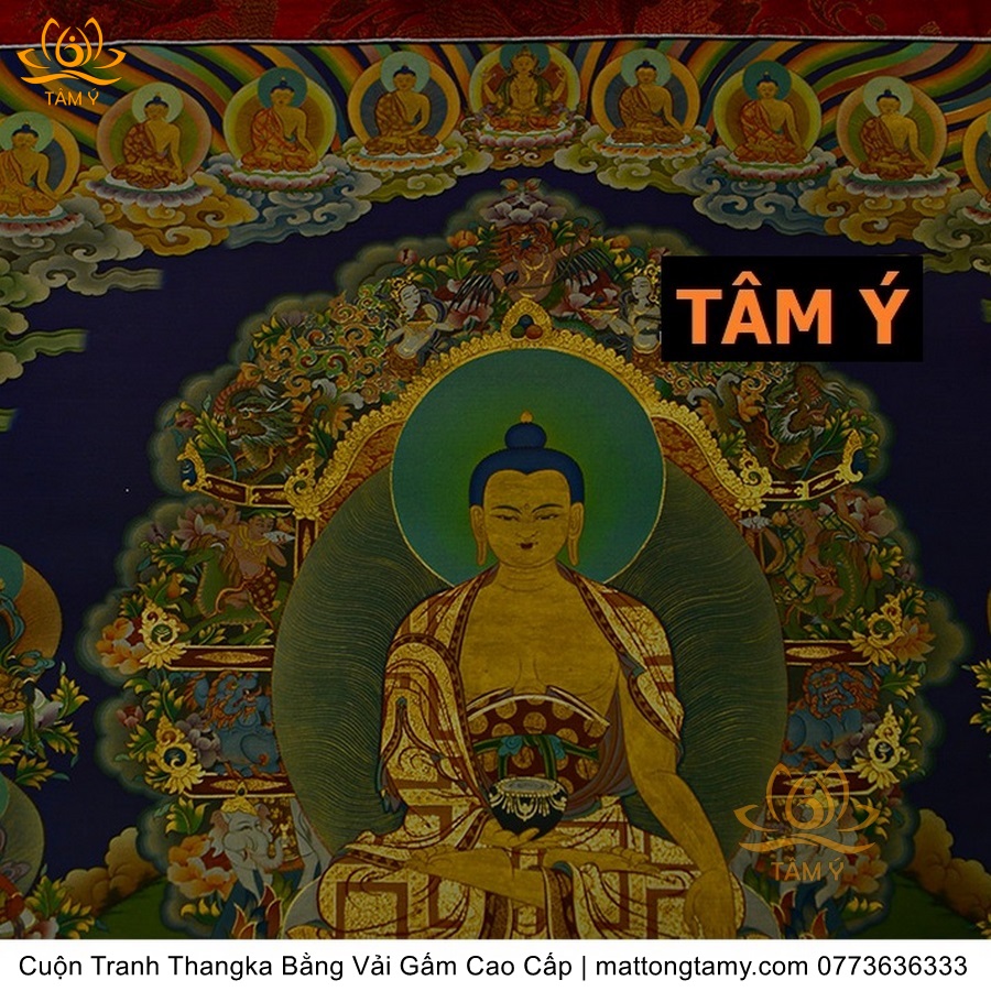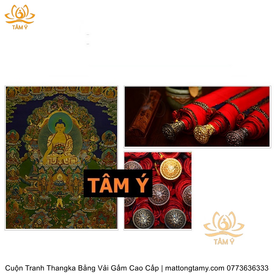 Cuộn Tranh ThangKa Phật Thích Ca Và Tám Vị Bồ Tát Mật Tông Bằng Vải Gấm Cao Cấp, Kiểu 11, TCT90