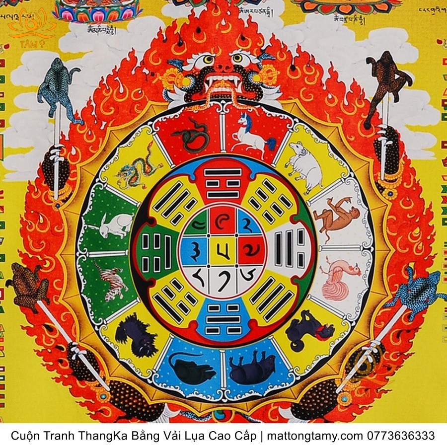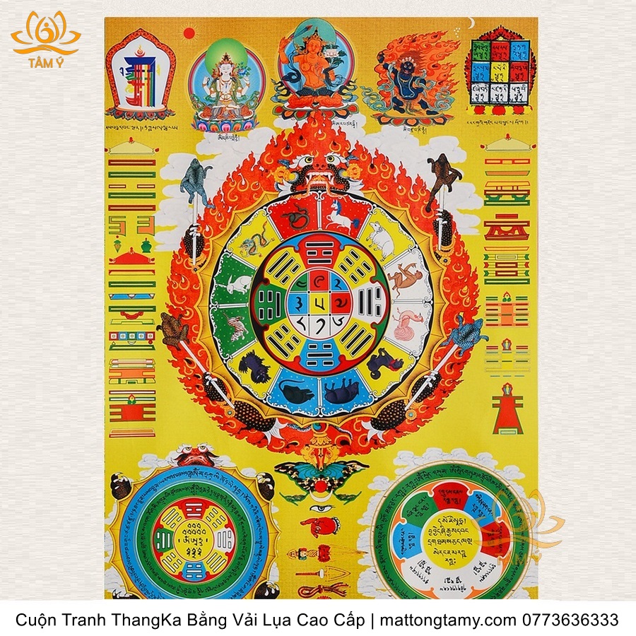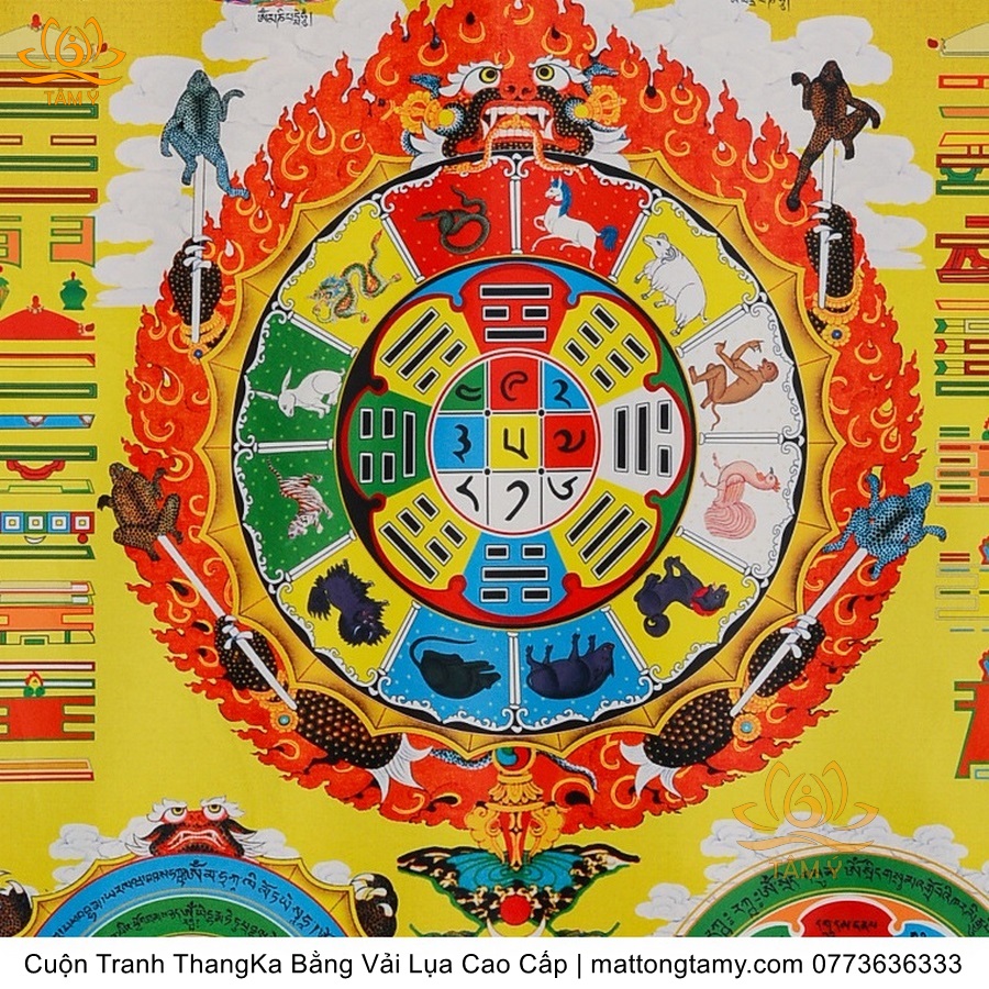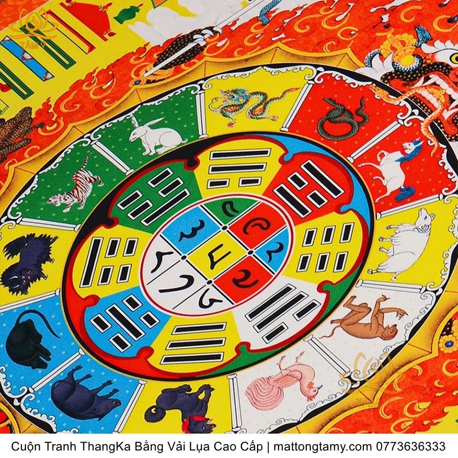 Cuộn Tranh ThangKa Văn Thù Cửu Cung Bát Quái Bằng Vải Gấm Cao Cấp, Kiểu 1, TCT60