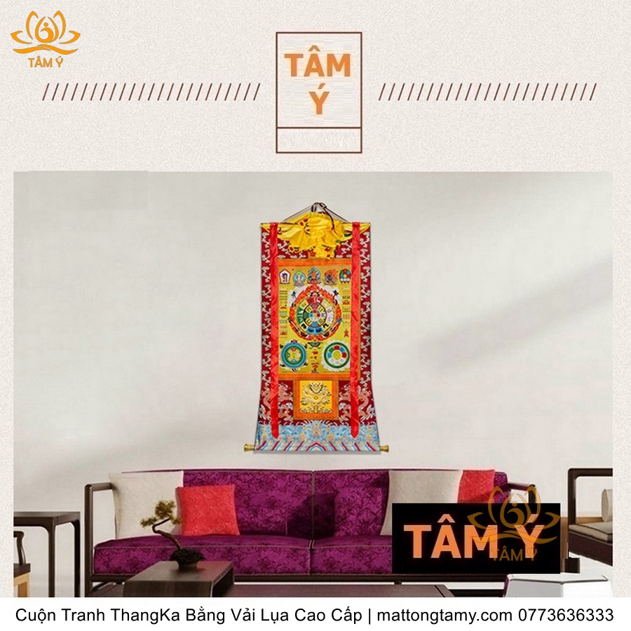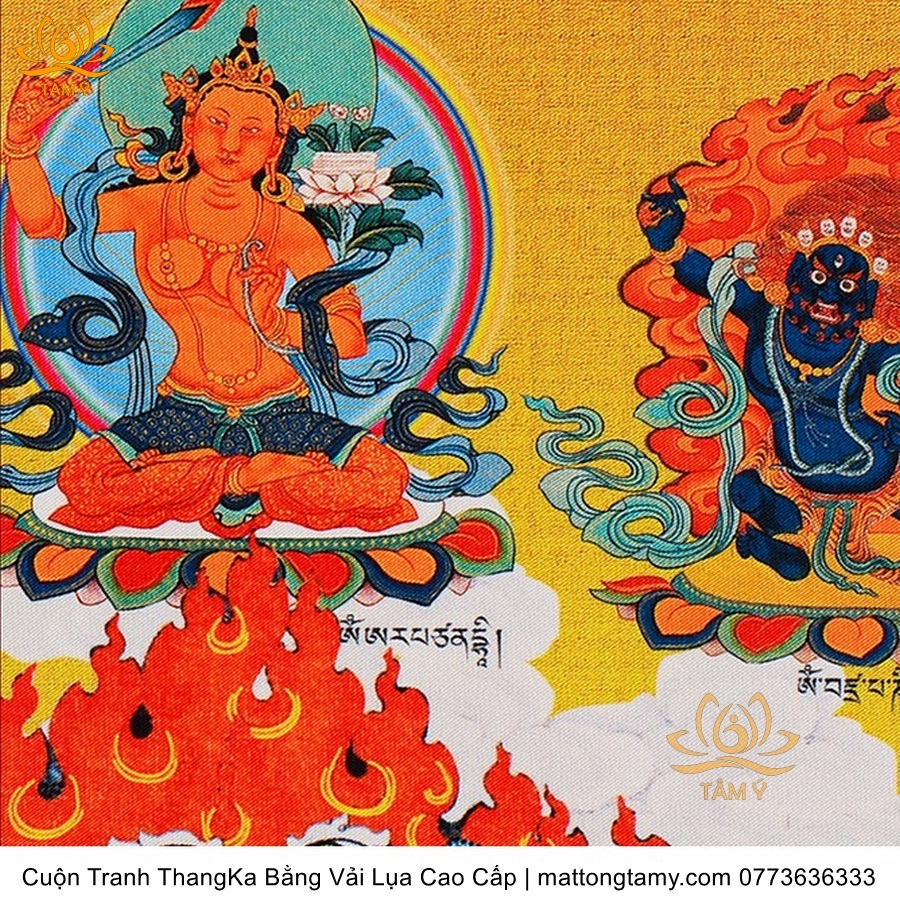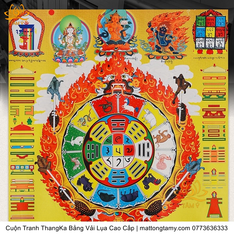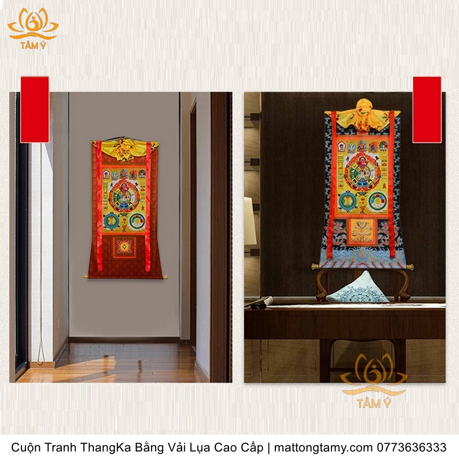 Cuộn Tranh ThangKa Văn Thù Cửu Cung Bát Quái Bằng Vải Gấm Cao Cấp, Kiểu 1, TCT60