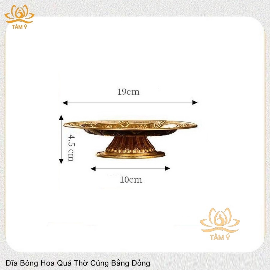 Kích Thước: mặt đĩa đường kính 19cm, chân đế đường kính 10cm, chiều cao 4.5cm (Đo lường và màu sắc sản phẩm trên ảnh có sai số vì dụng cụ đo, mắt người đo, do máy móc và do độ phân giải màn hình)