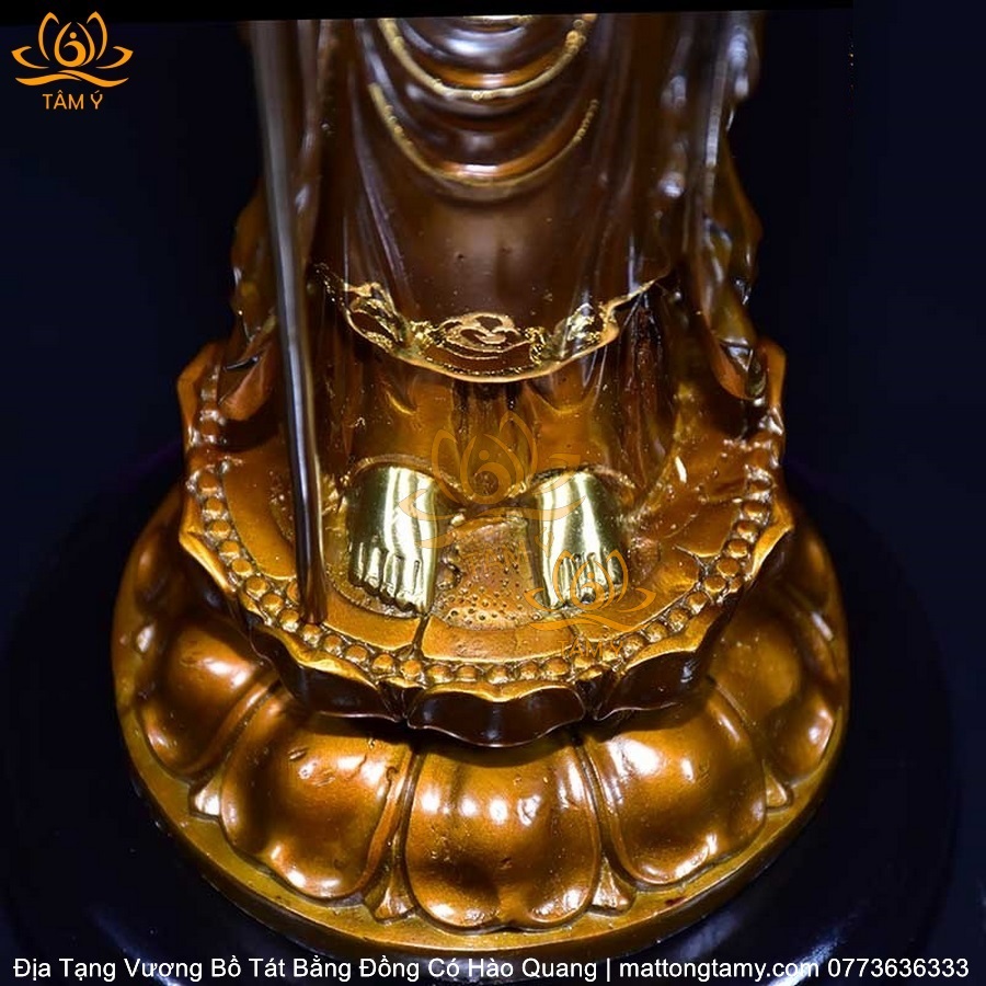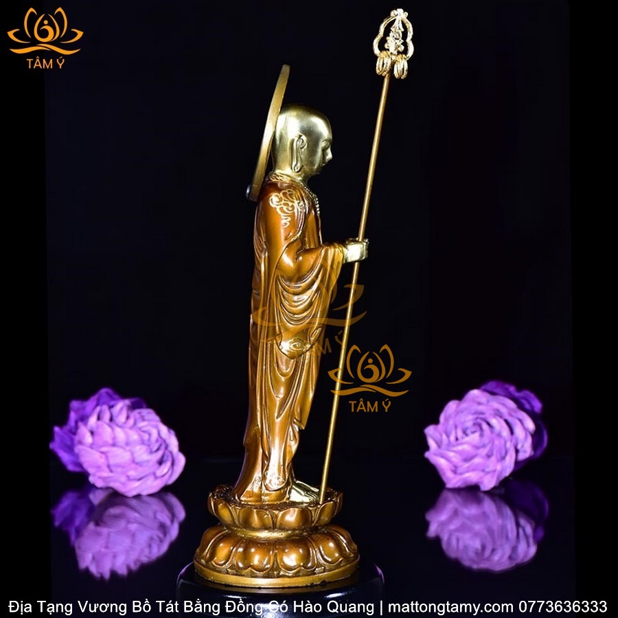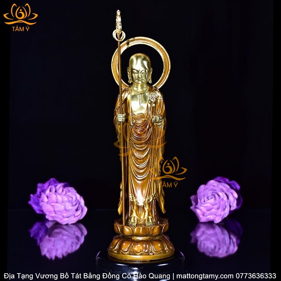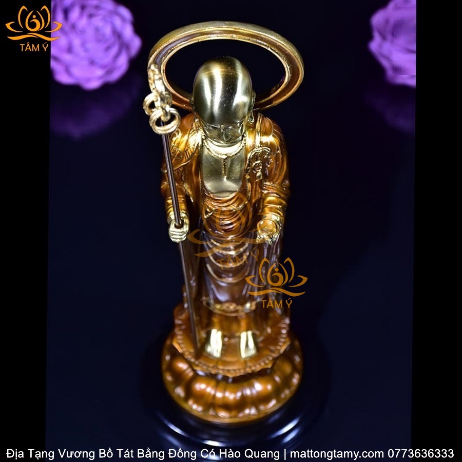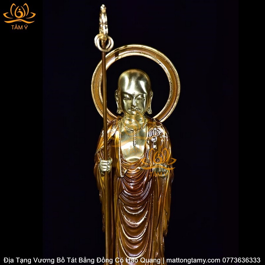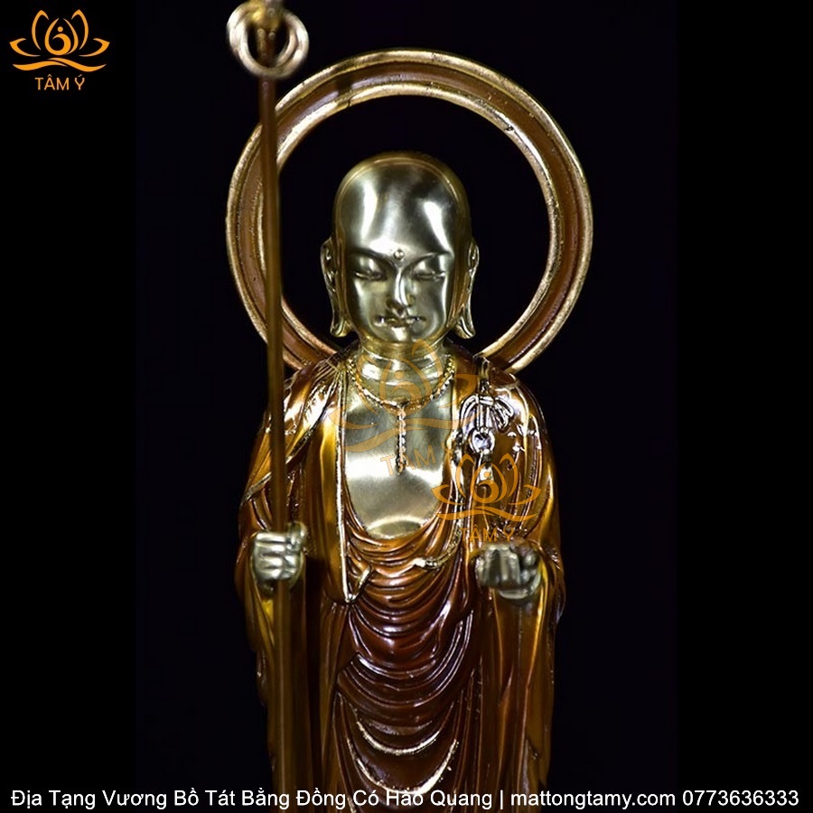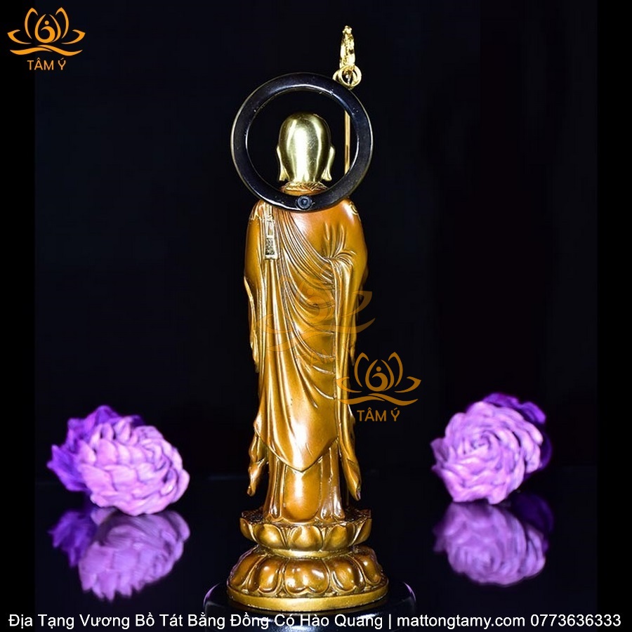 |Mạ Vàng 18K| Tượng Địa Tạng Vương Bồ Tát Có Vầng Hào Quang Bằng Đồng Siêu Đẹp