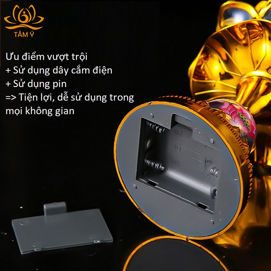 Khi cắm điện lên thì đèn sẽ đổi màu lần lượt rất đẹp đồng thời phát tiếng trì tụng kinh chú.