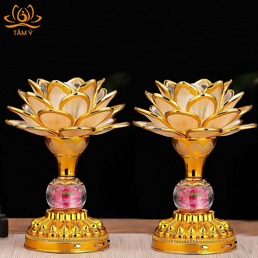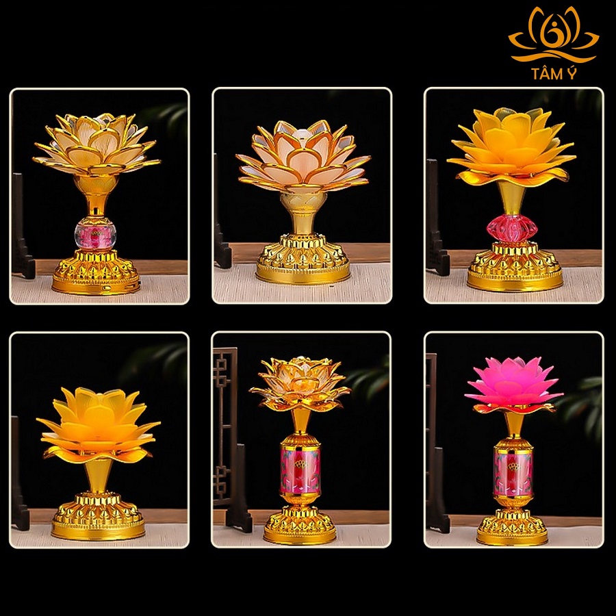 |Màu Vàng| Đèn Hoa Sen Mẫu Mới 2024 Cắm Điện Phát Nhạc Nghe Pháp Niệm Phật Ánh Sáng Ngũ Sắc