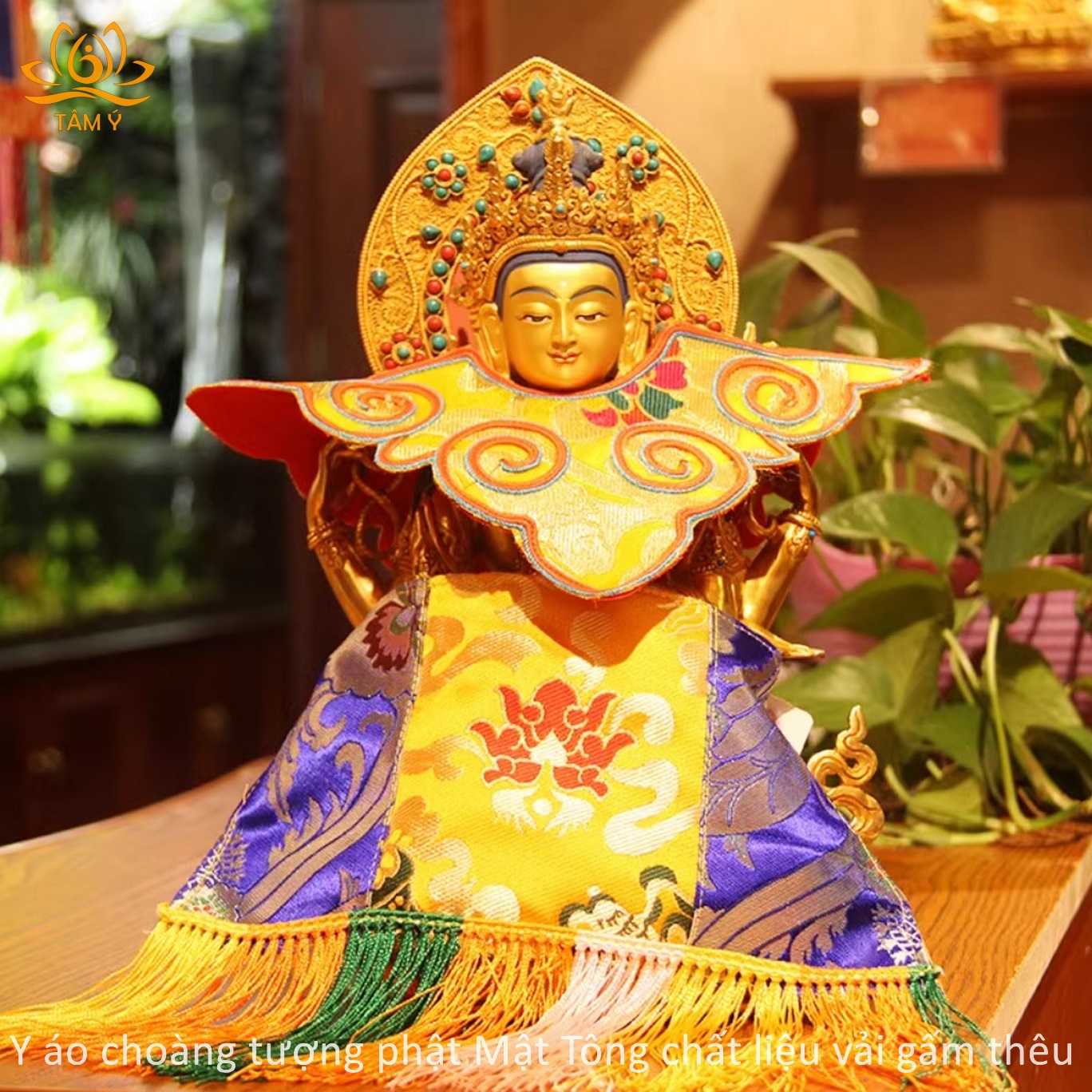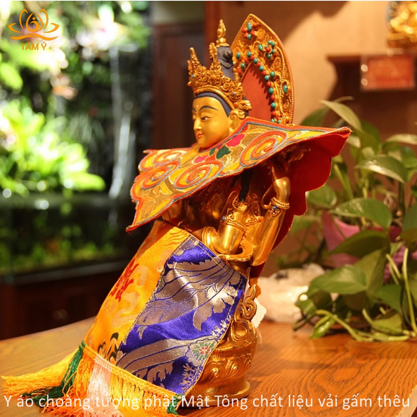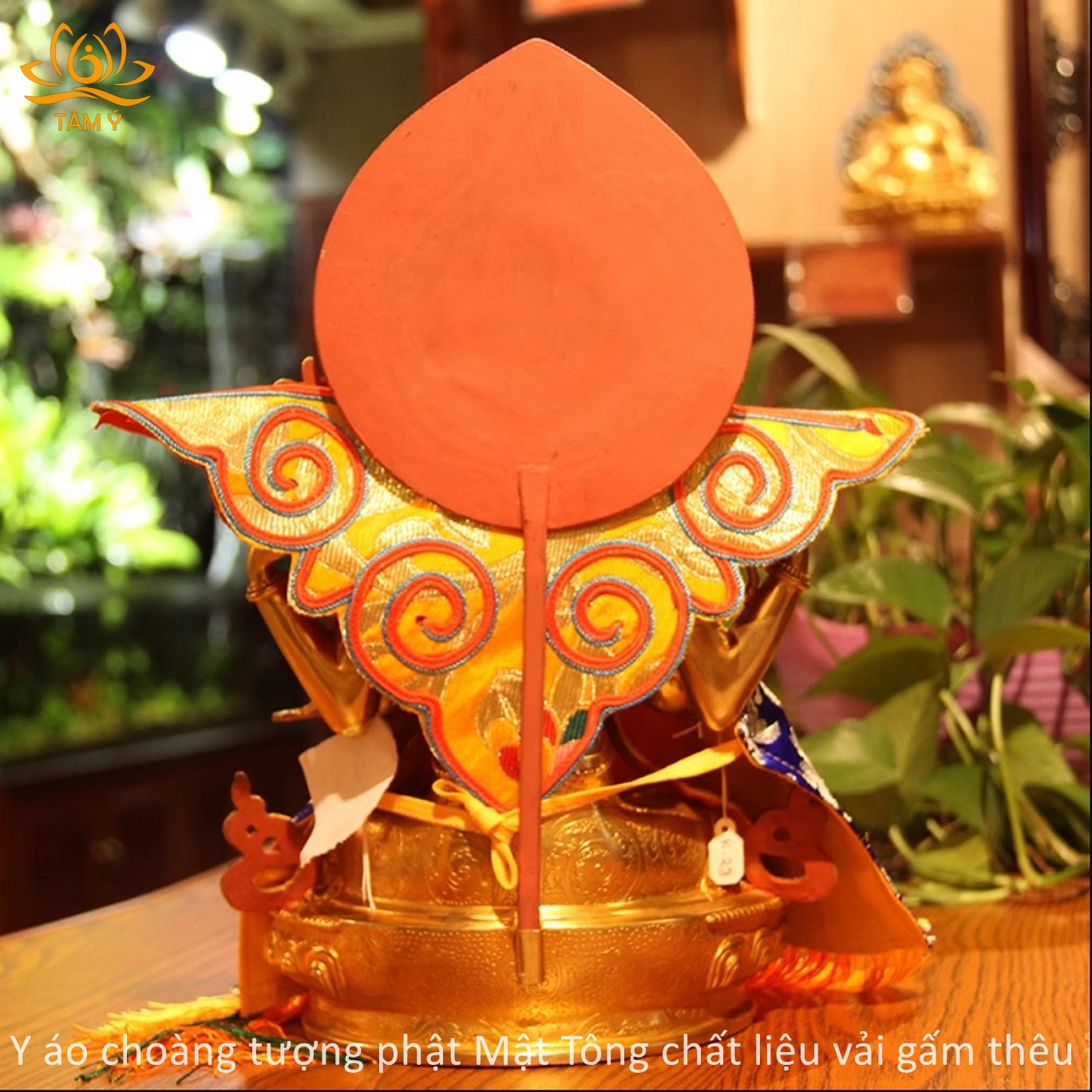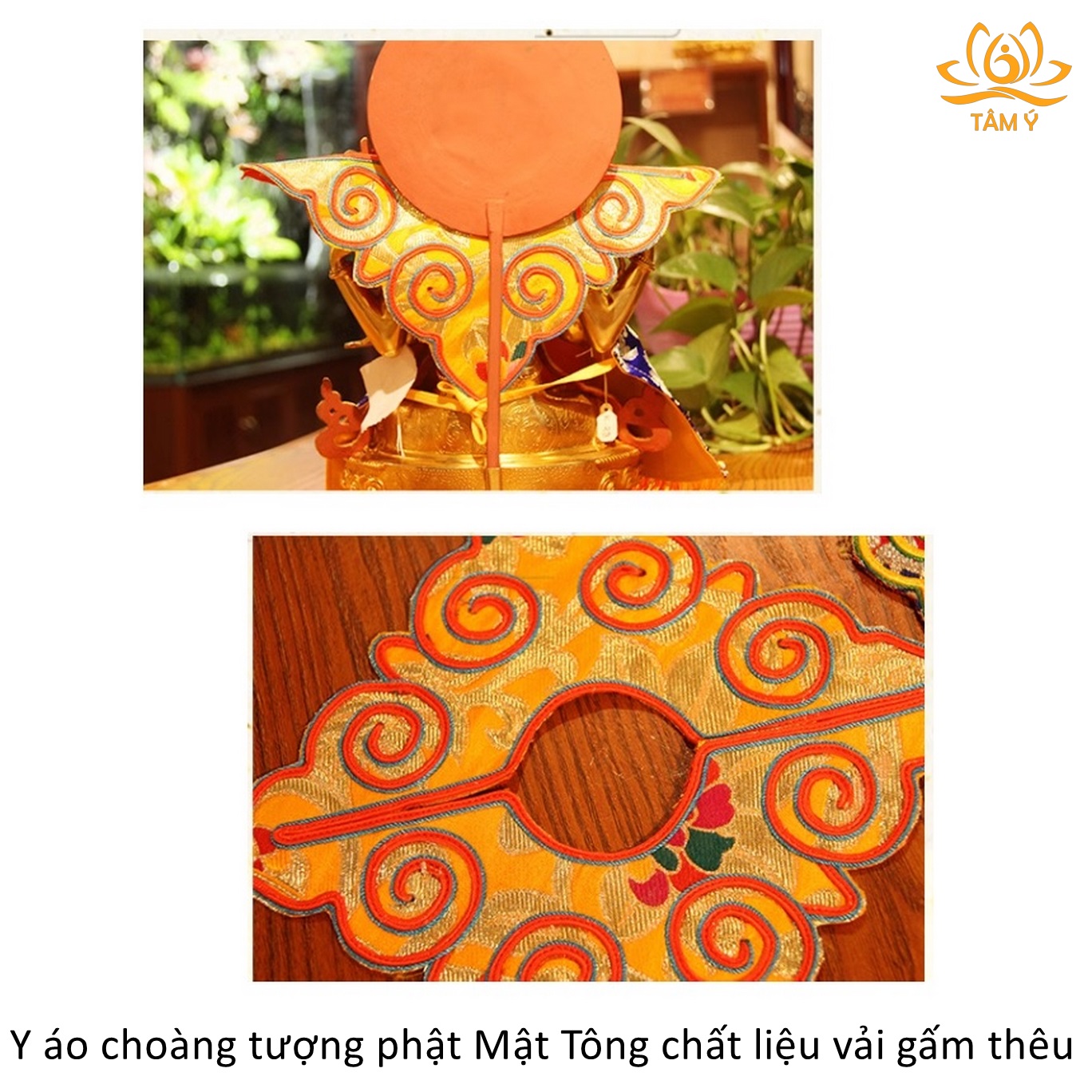 Chất liệu bền, đẹp, hoa văn trên thân áo được thêu thủ công vô cùng tinh xảo và tỉ mỉ. Y áo choàng tượng Phật được thiết kế với mục đích làm tăng sự trang nghiêm cho tượng Phật, thể hiện lòng tôn kính của chúng ta với các vị Phật mỗi khi chúng ta nhìn ngắm hảo tướng hay đảnh lễ các ngài, với chất liệu vải gấm dưới bàn tay công phu của những nghệ nhân Tây Tạng họ đã làm ra 1 sản phẩm vô cùng chất lượng, đẹp đến từng chi tiết.