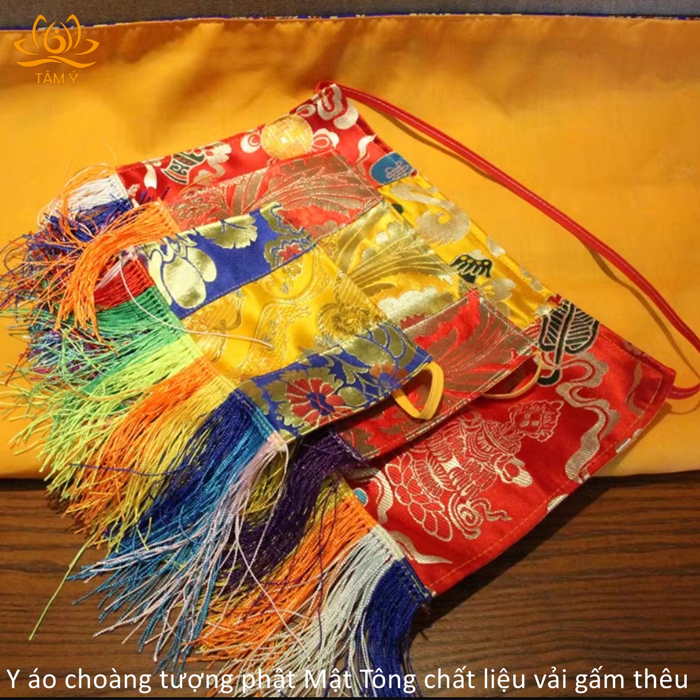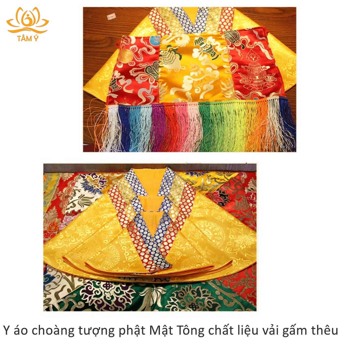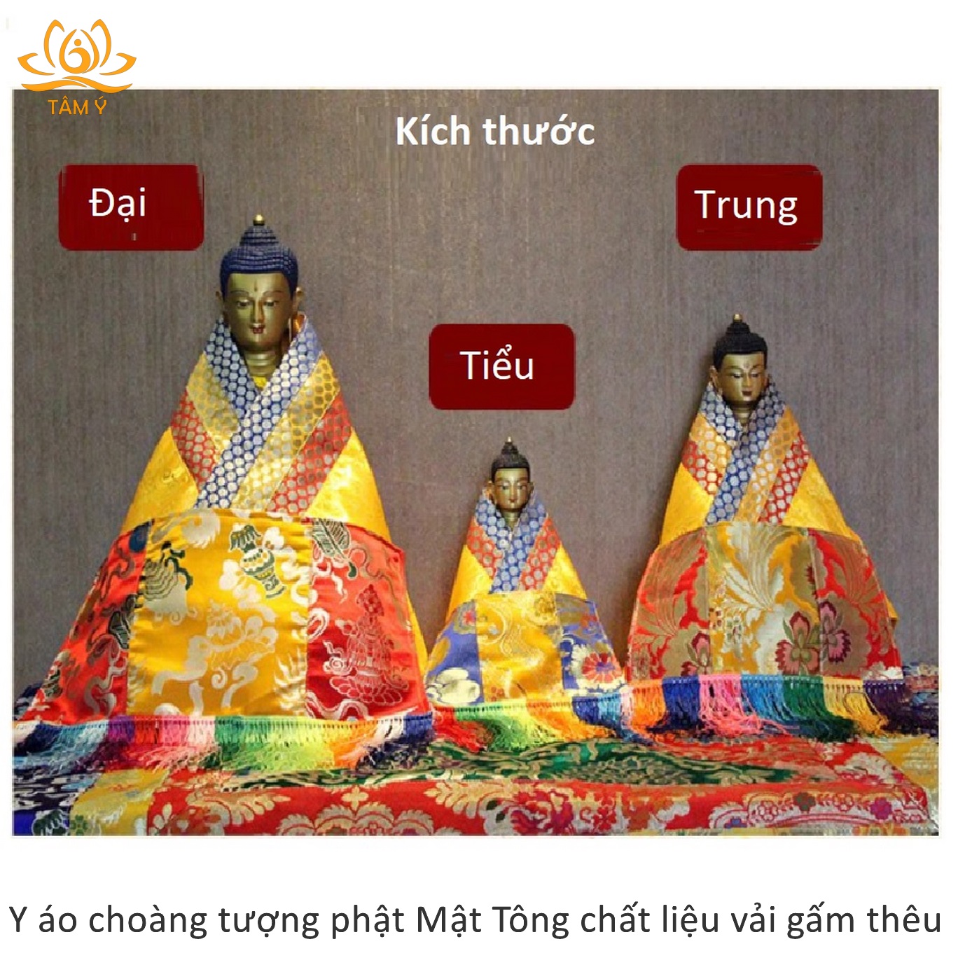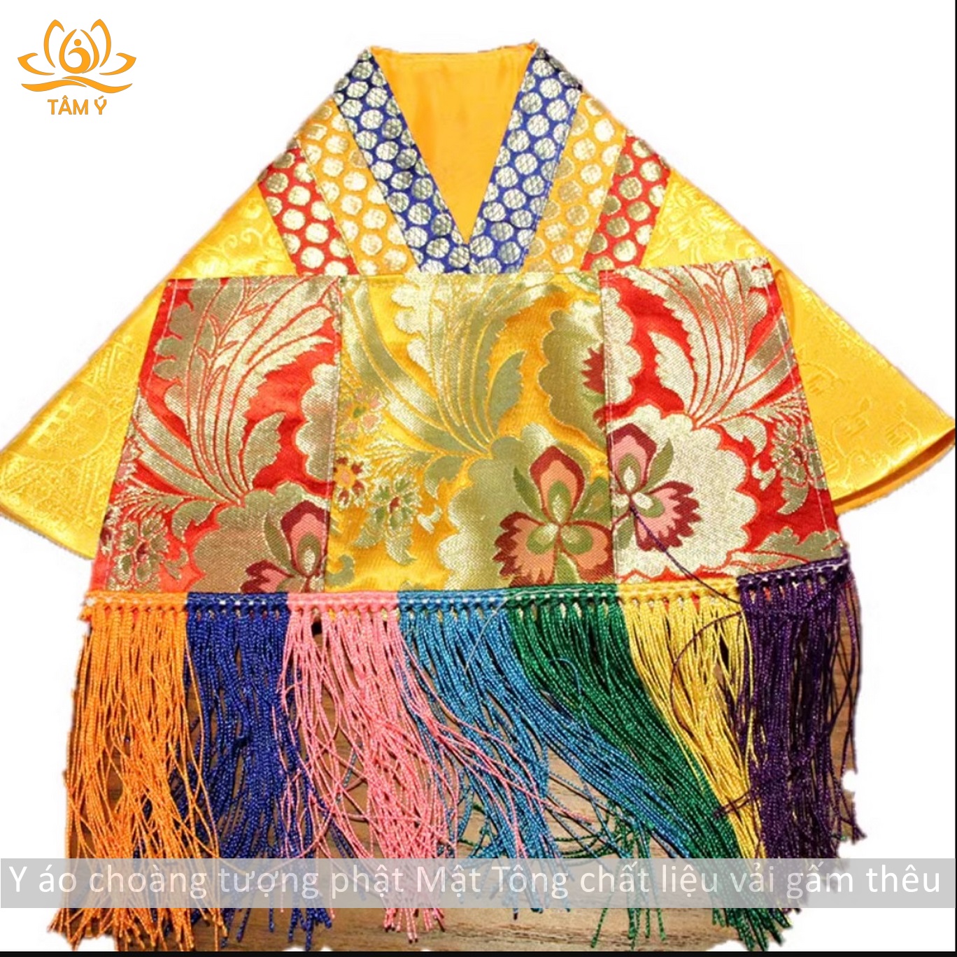 Y áo choàng tượng Phật được thiết kế với mục đích làm tăng sự trang nghiêm cho tượng Phật, thể hiện lòng tôn kính của chúng ta với các vị Phật mỗi khi chúng ta nhìn ngắm hảo tướng hay đảnh lễ các ngài, với chất liệu vải gấm dưới bàn tay công phu của những nghệ nhân Tây Tạng họ đã làm ra 1 sản phẩm vô cùng chất lượng, đẹp đến từng chi tiết.
