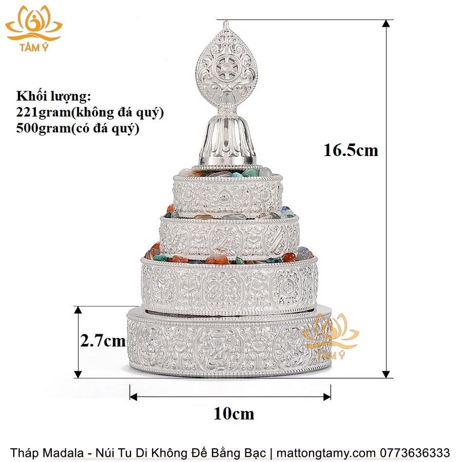 Tháp Madala - Núi Tu Di Không Đế, Bằng Bạc Nguyên Chất, Thiết Kế Sang Trọng TMDL50
