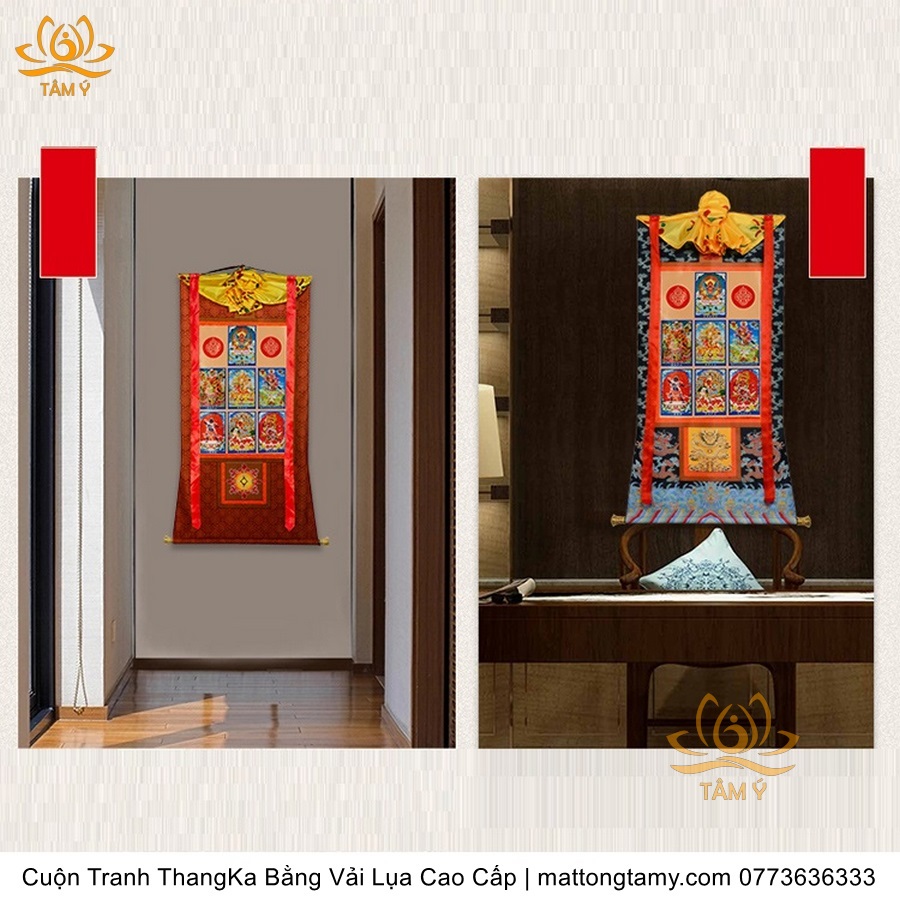 Cuộn Tranh ThangKa 7 Ngài Phật Bằng Vải Gấm Cao Cấp, Kiểu 1, TCT49