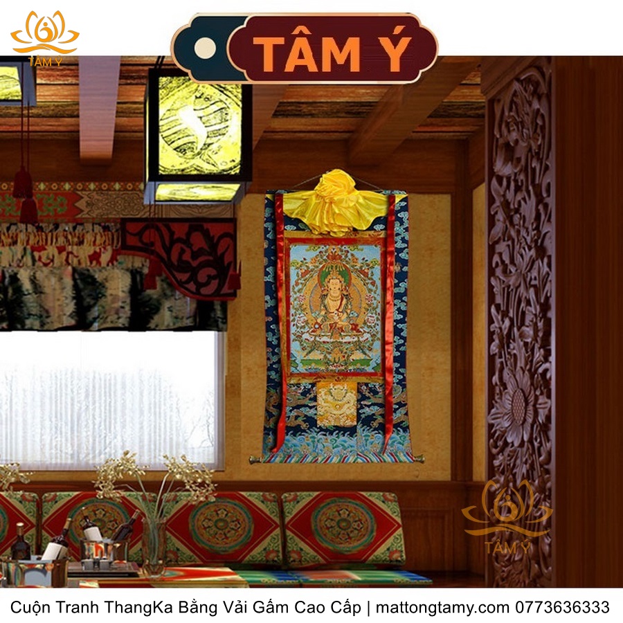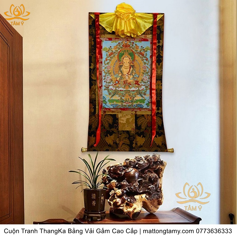 Cuộn Tranh ThangKa Địa Tạng Vương Bồ Tát Bằng Vải Gấm Cao Cấp, Kiểu 2, TCT32