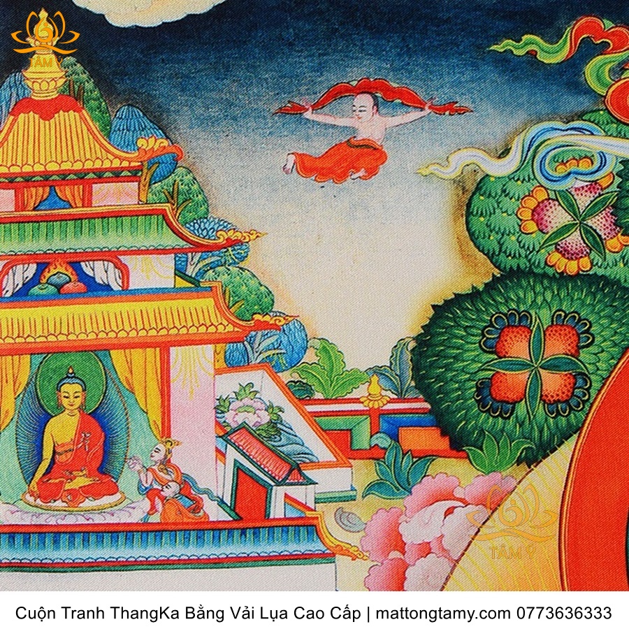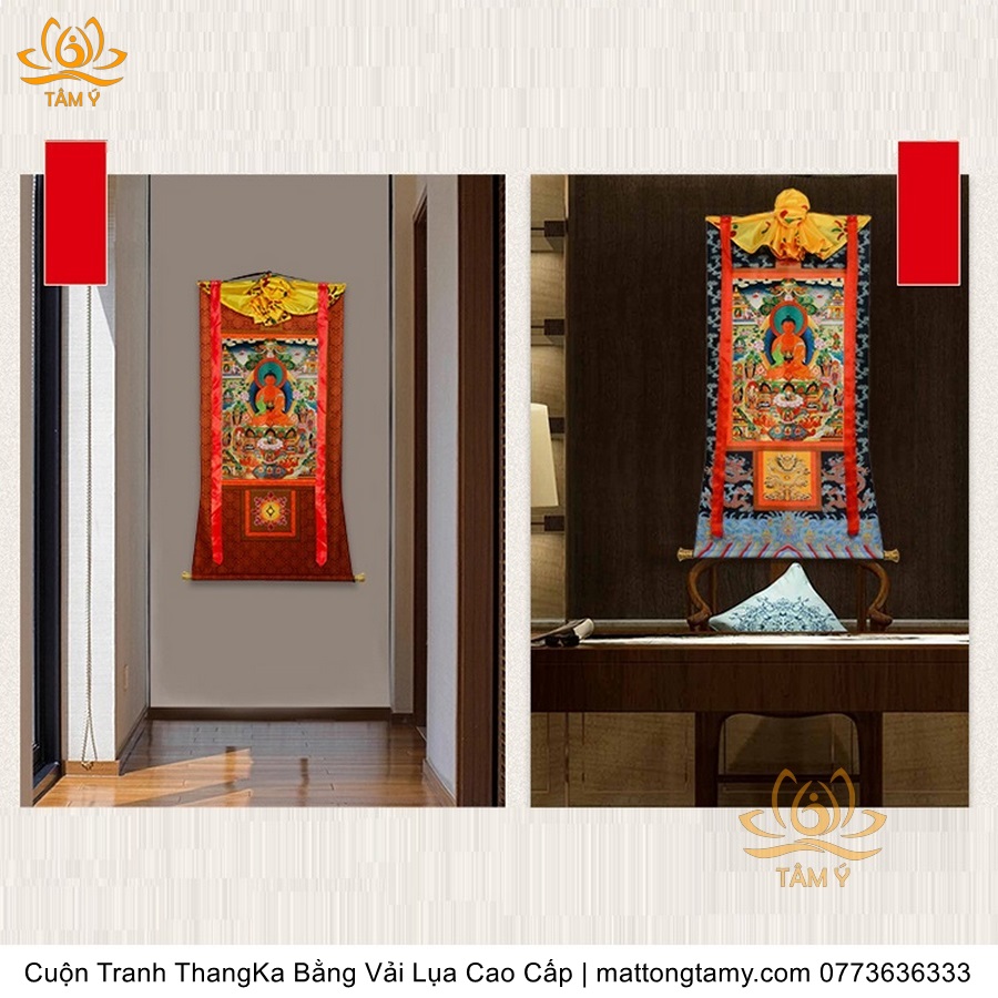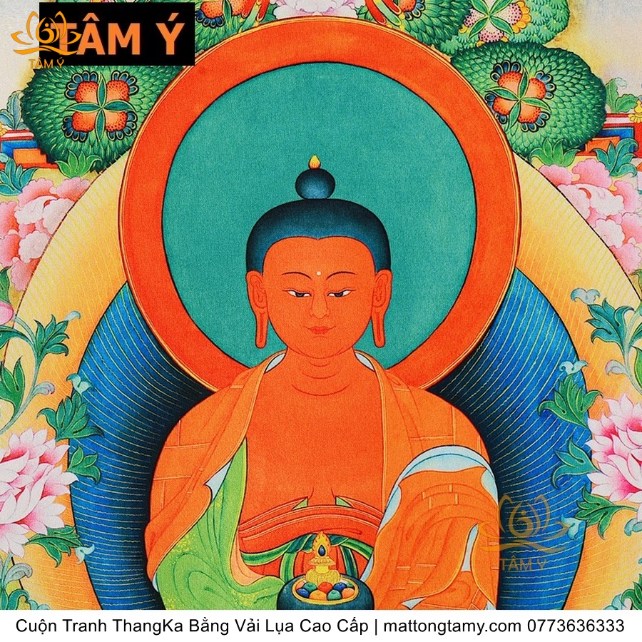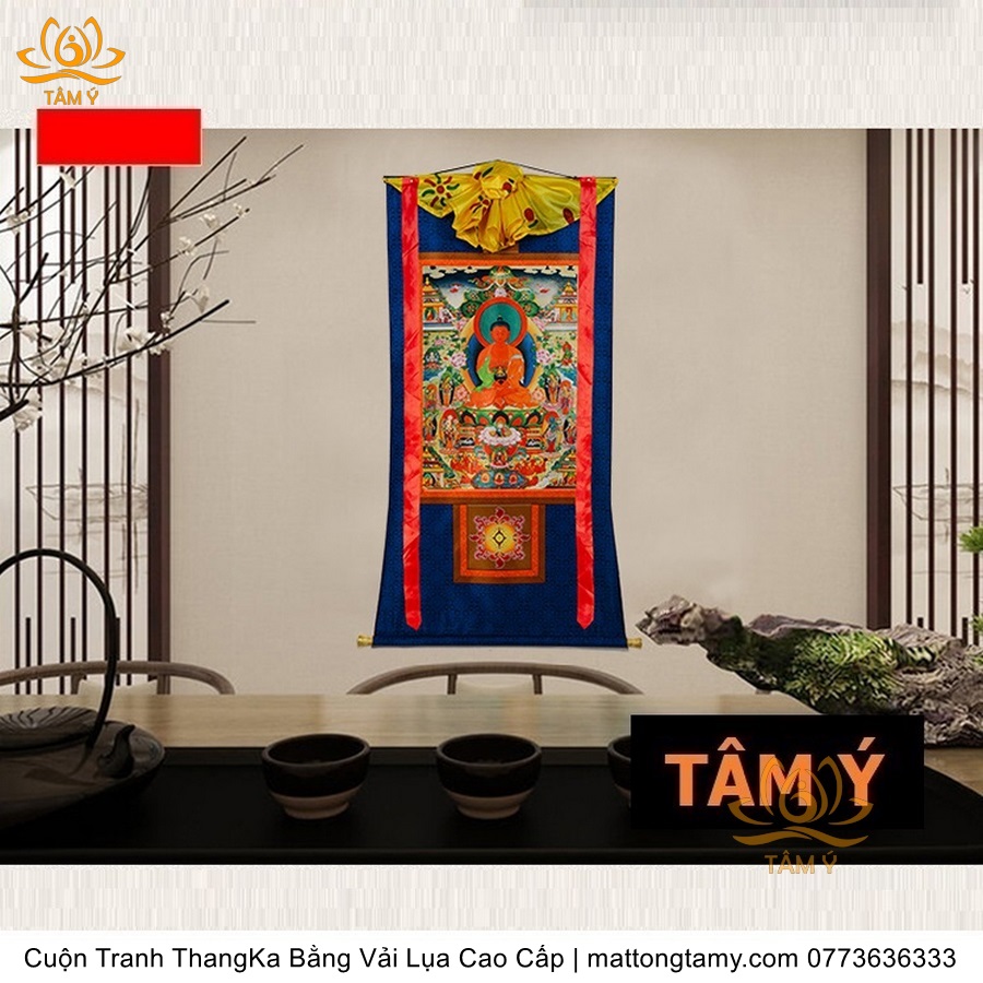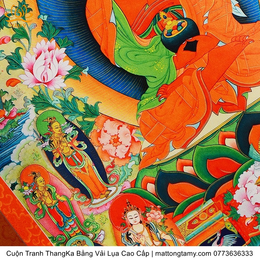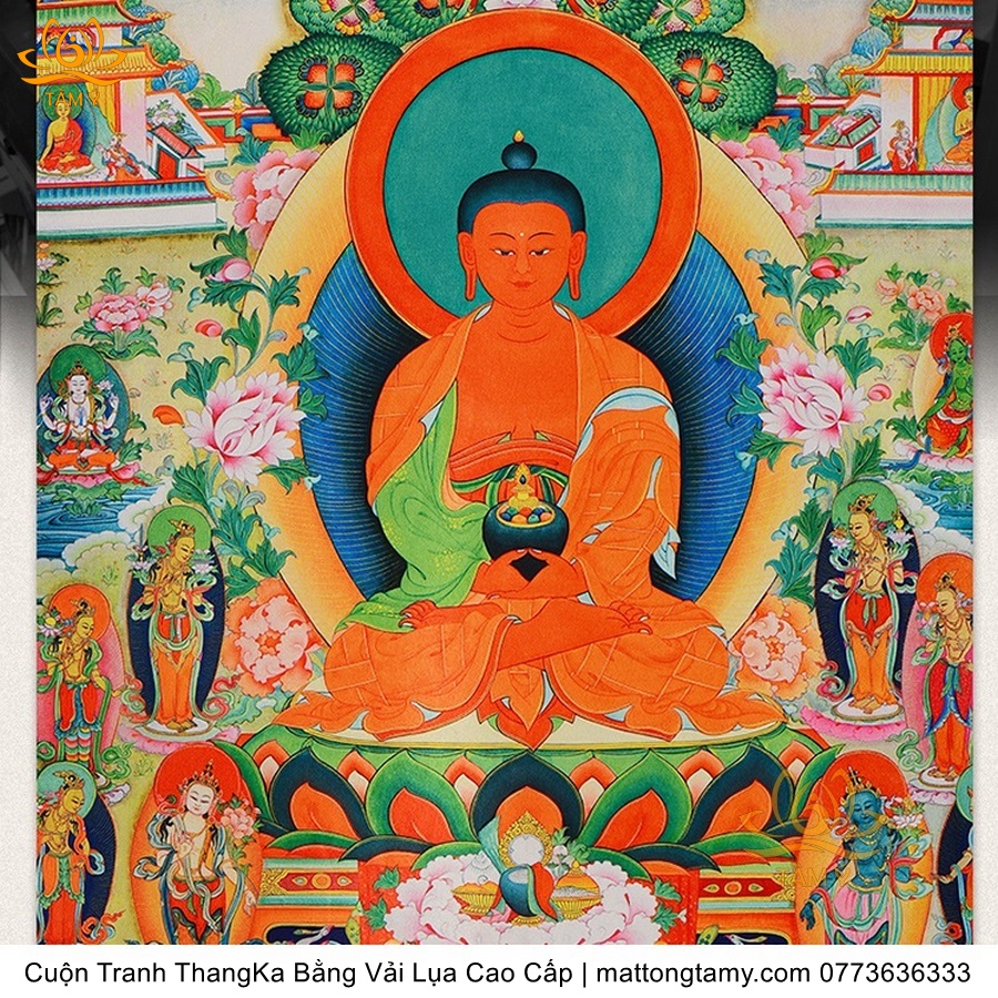 Cuộn Tranh ThangKa Ngài A Di Đà Phật Bằng Vải Gấm Cao Cấp, Kiểu 3, TCT48