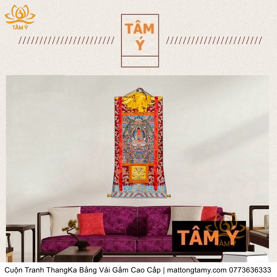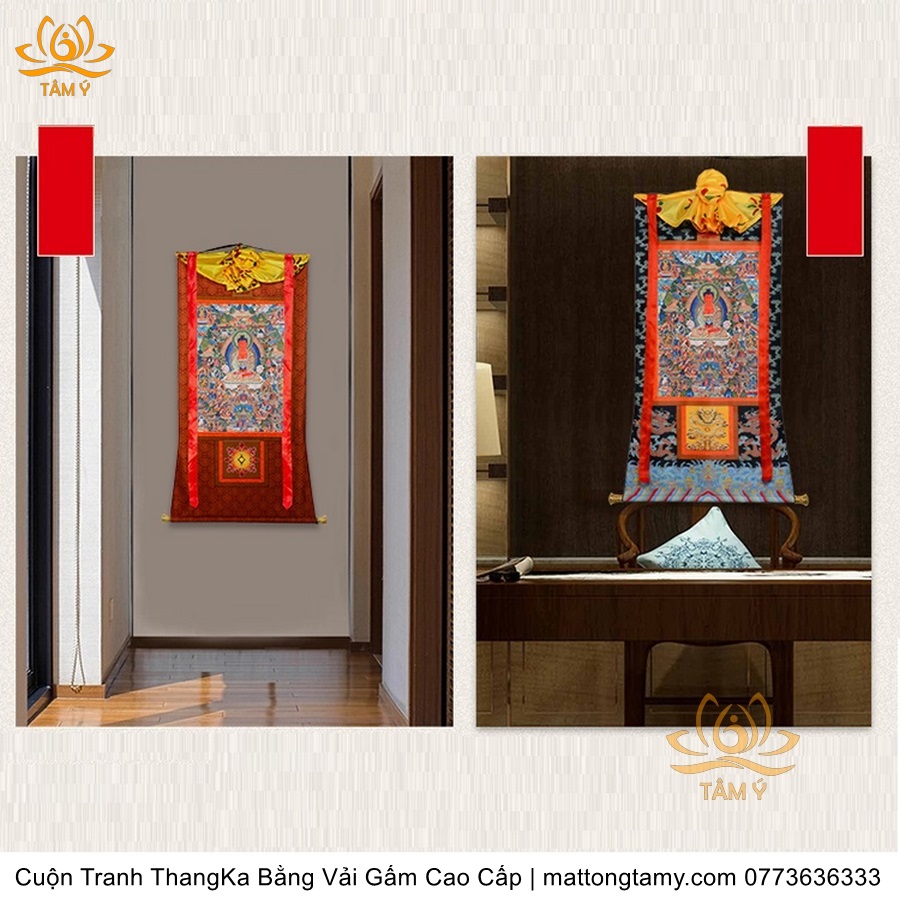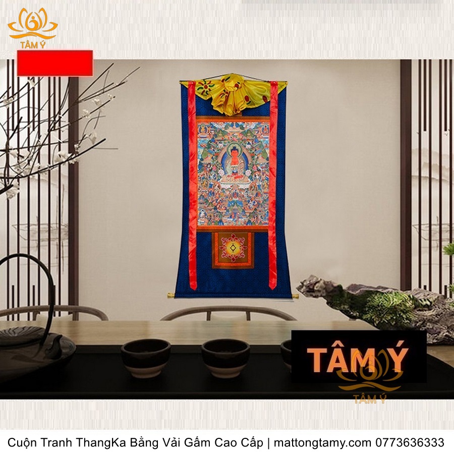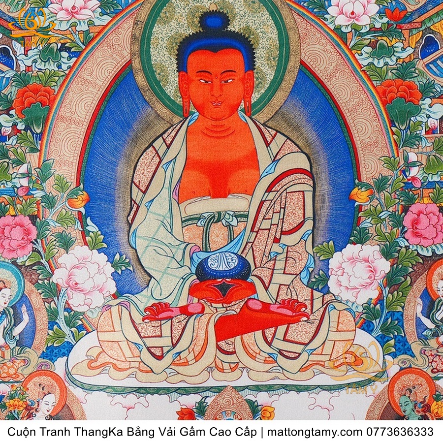 Cuộn Tranh ThangKa Ngài A Di Đà Phật Bằng Vải Gấm Cao Cấp, Kiểu 5, TCT65