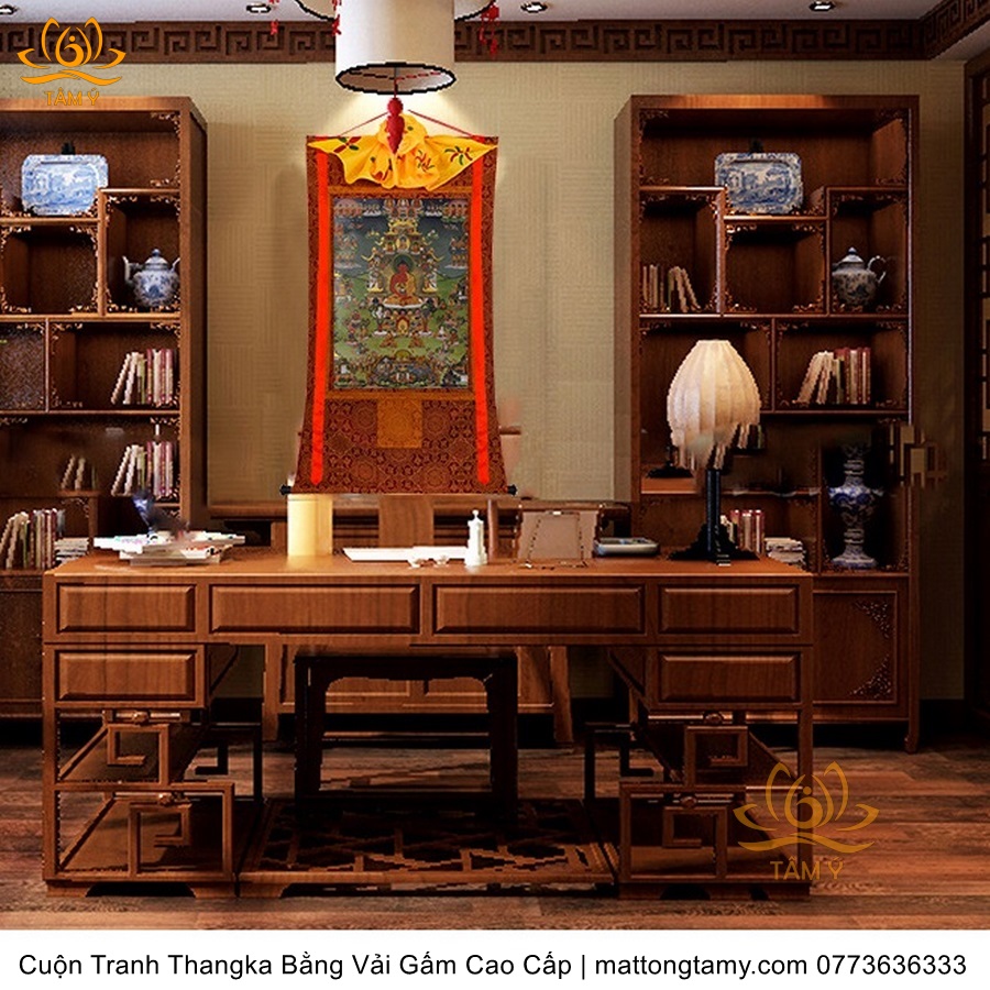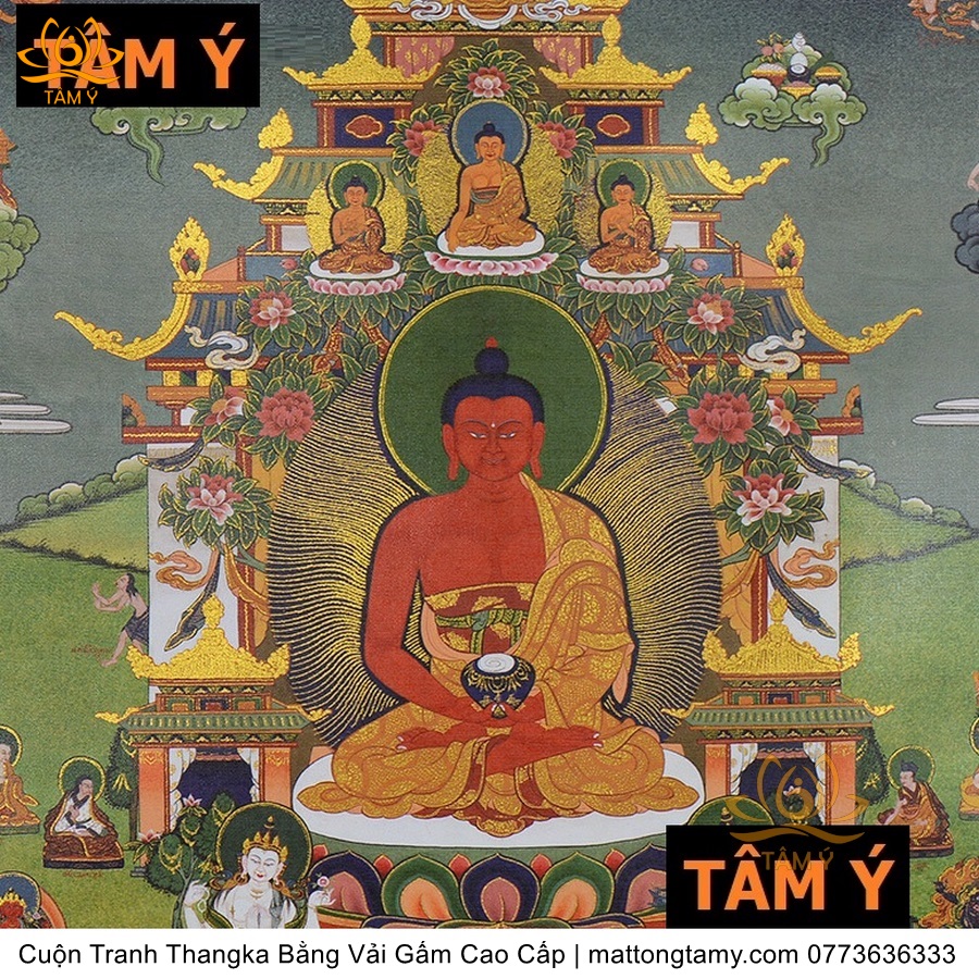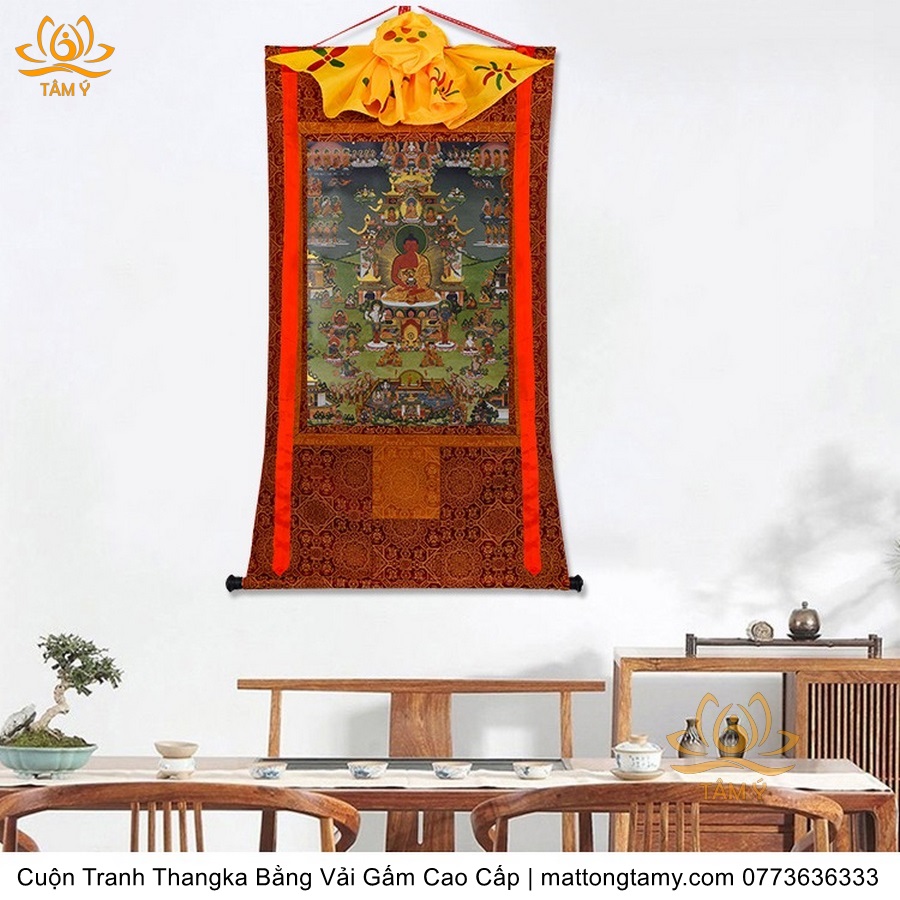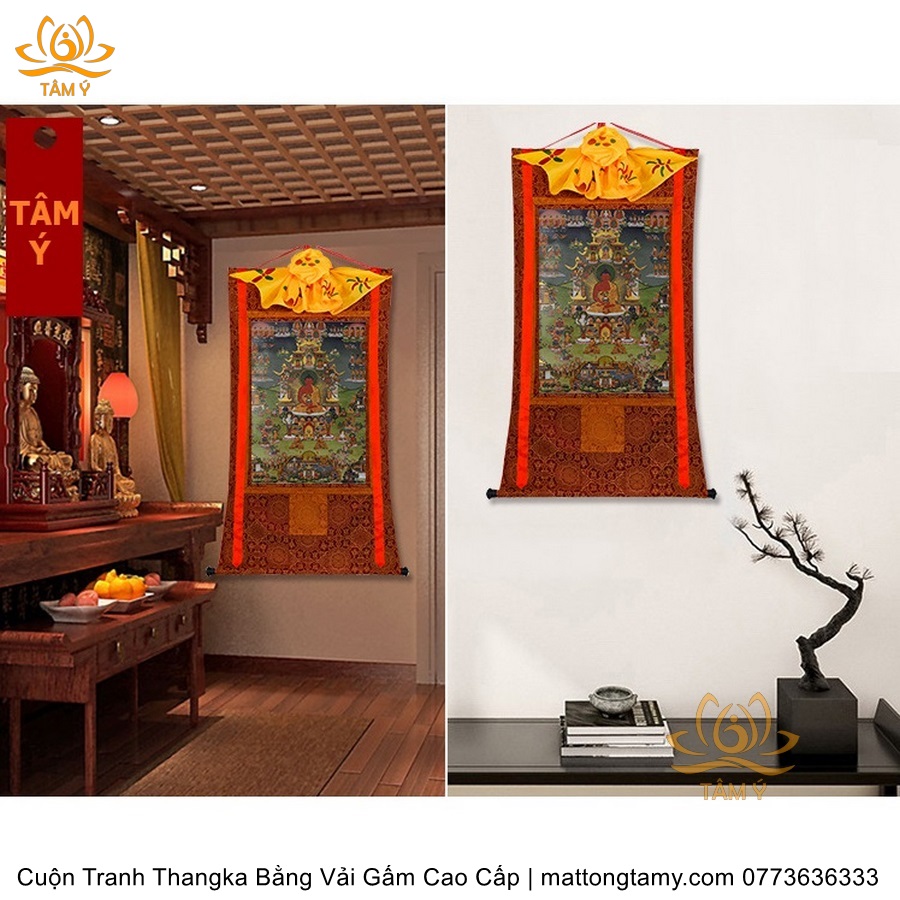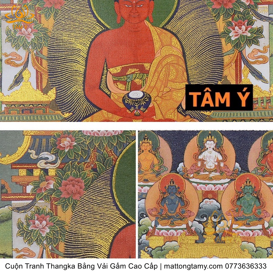 Cuộn Tranh ThangKa Ngài A Di Đà Phật Bằng Vải Gấm Cao Cấp, Kiểu 7, TCT96