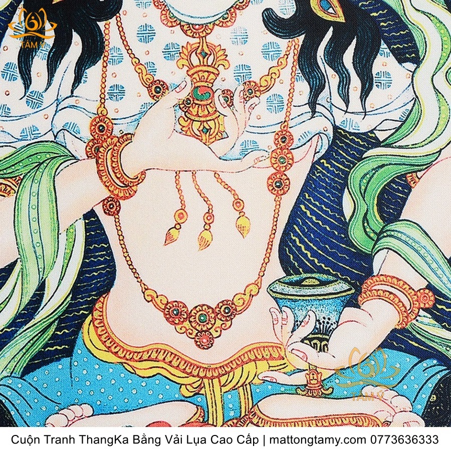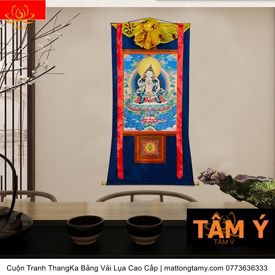 Cuộn Tranh ThangKa Ngài Kim Cang Tát Đỏa (Vajrasattva) Bằng Vải Gấm Cao Cấp, Kiểu 2, TCT37