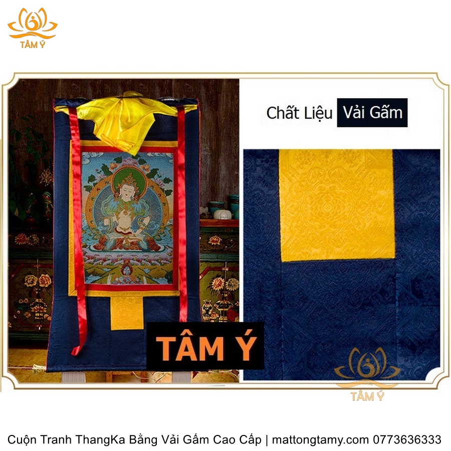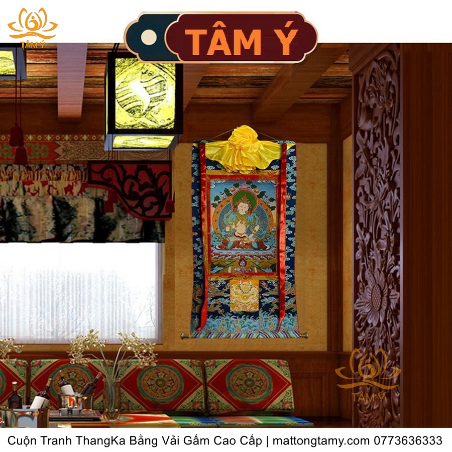 Cuộn Tranh ThangKa Ngài Kim Cang Tát Đỏa (Vajrasattva) Bằng Vải Gấm Cao Cấp, Kiểu 1, TCT30