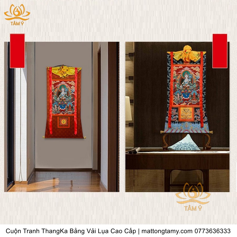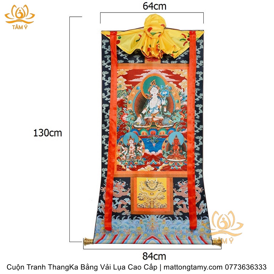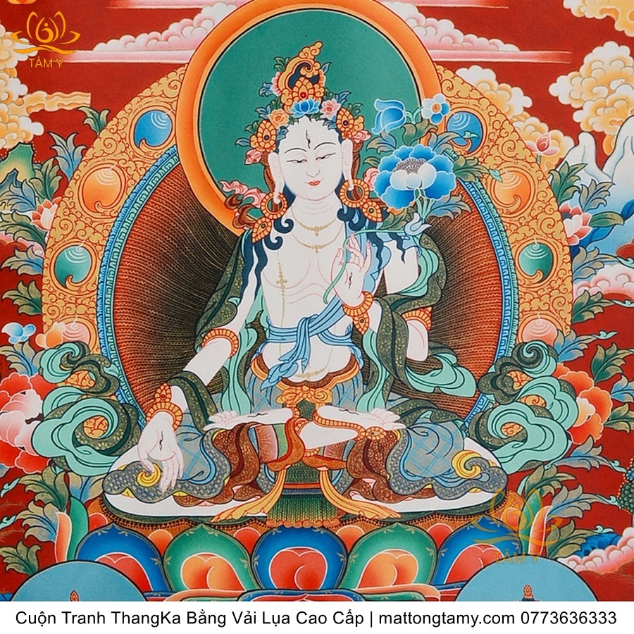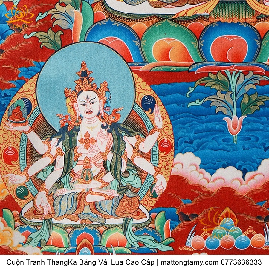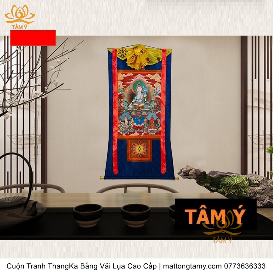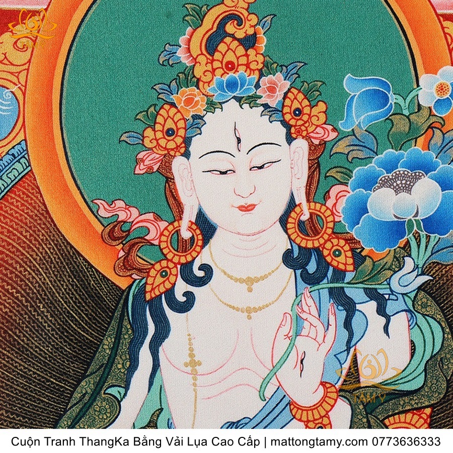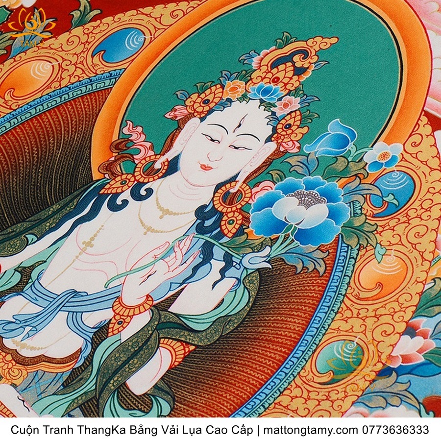 Cuộn Tranh ThangKa Ngài Quan Âm Bồ Tát Bằng Vải Gấm Cao Cấp, Kiểu 1, TCT39