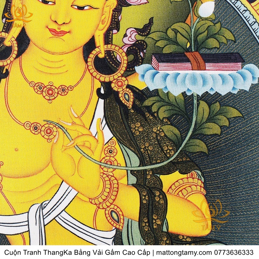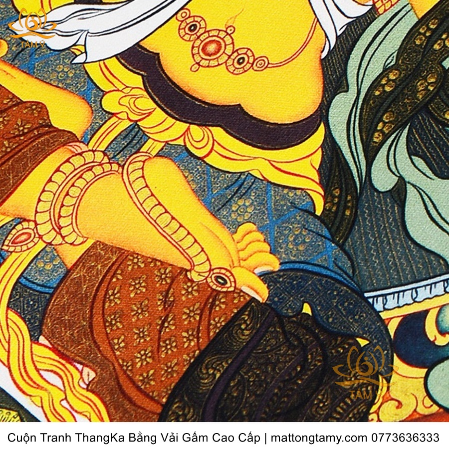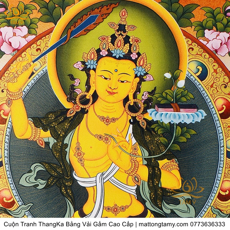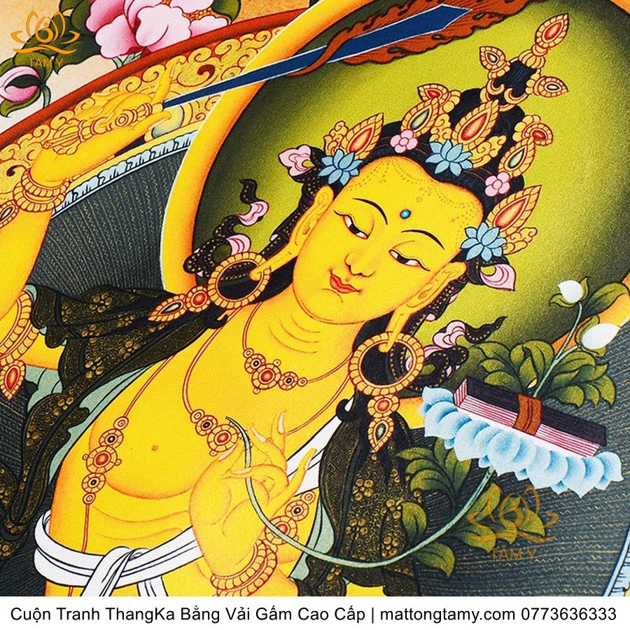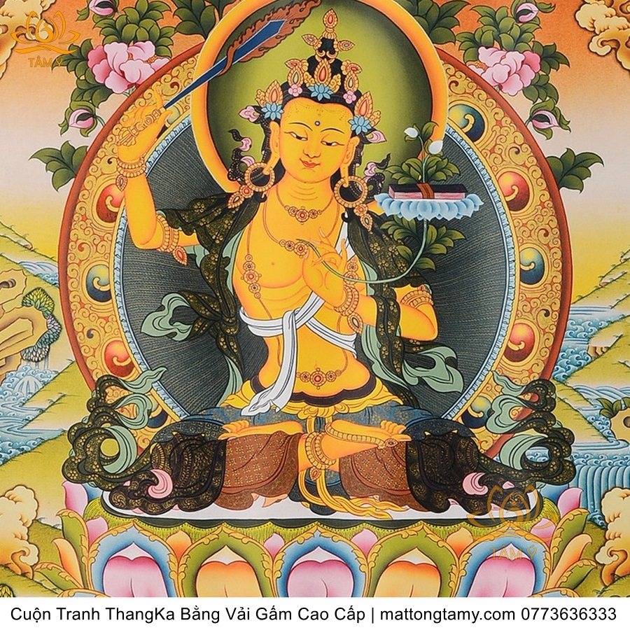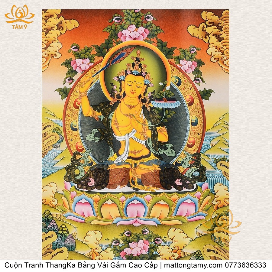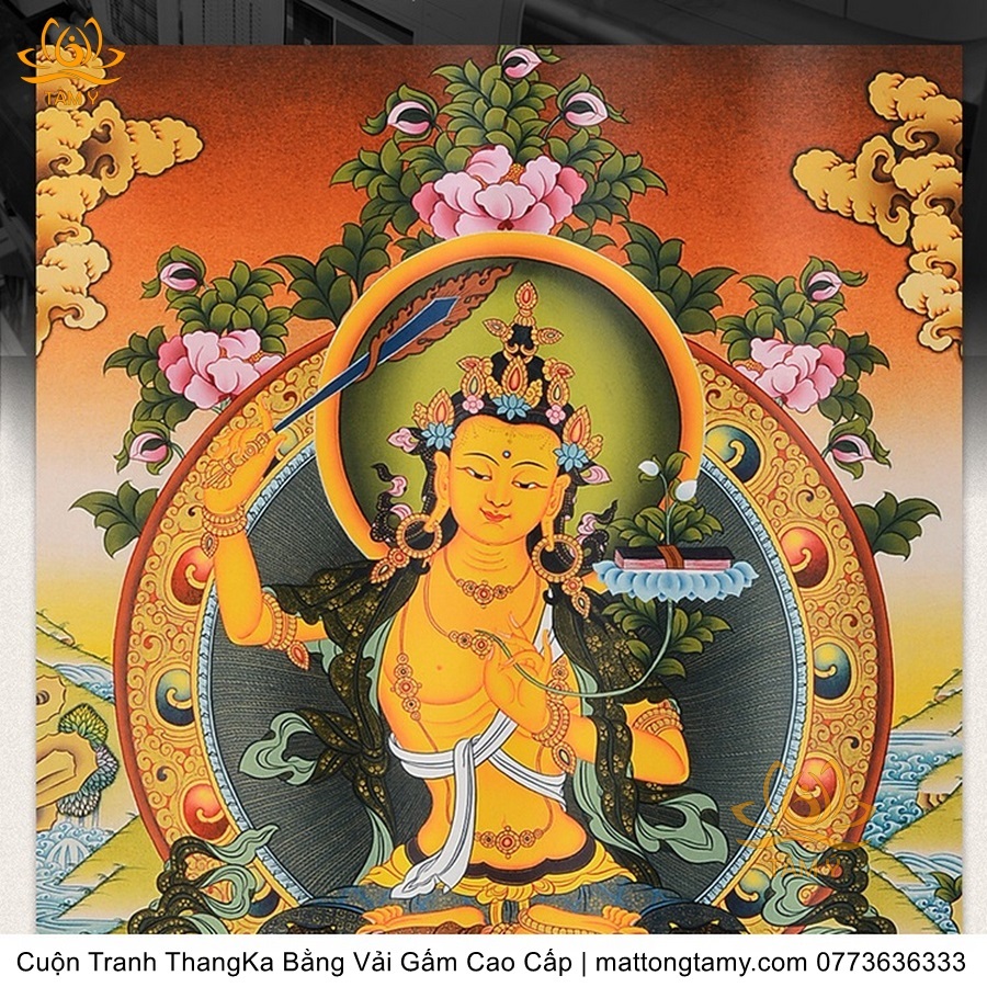 Cuộn Tranh ThangKa Ngài Văn Thù Bồ Tát Bằng Vải Gấm Cao Cấp, Kiểu 4, TCT64