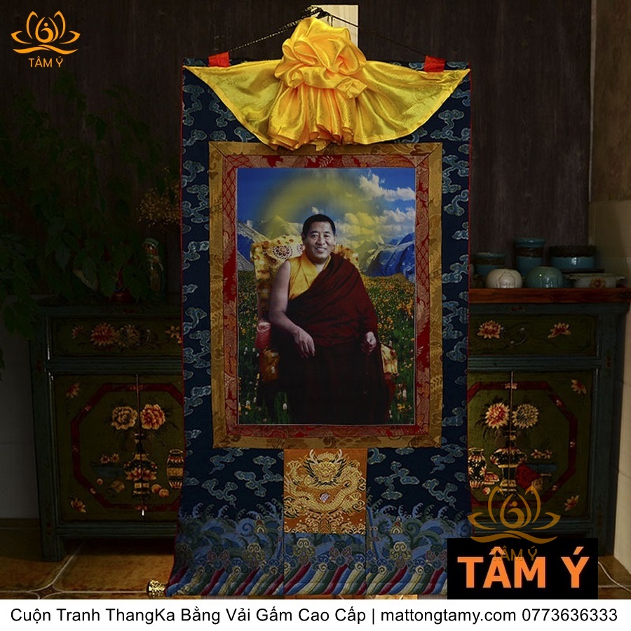 Cuộn Tranh ThangKa Pháp Vương(Choeje) Jigme Phuntsok Bằng Vải Gấm Cao Cấp, Kiểu 1, TCT79