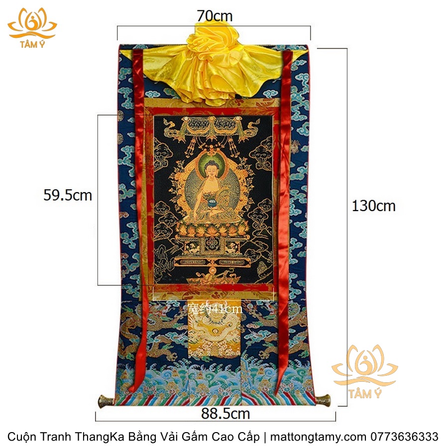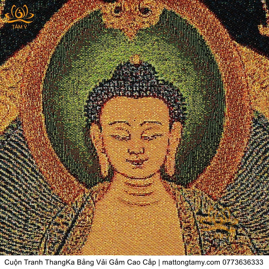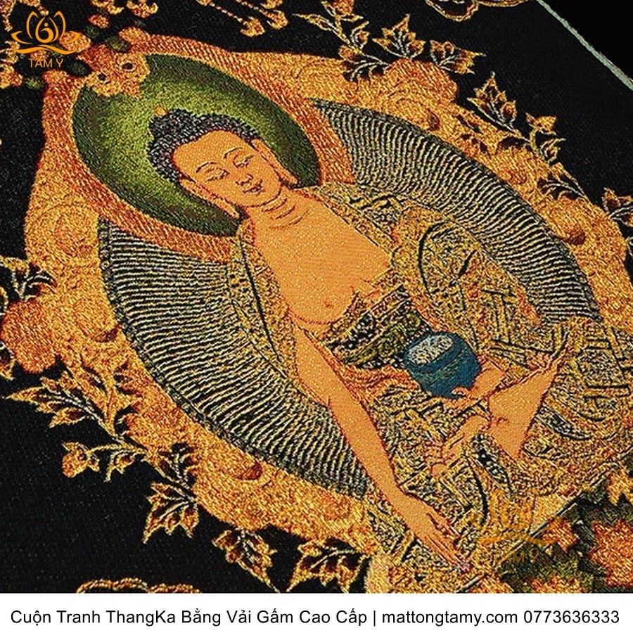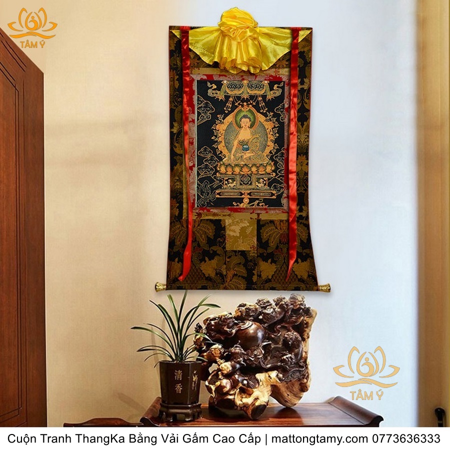 Cuộn Tranh ThangKa Phật Bản Mệnh Thích Ca Bằng Vải Gấm Cao Cấp, Kiểu 3, TCT21