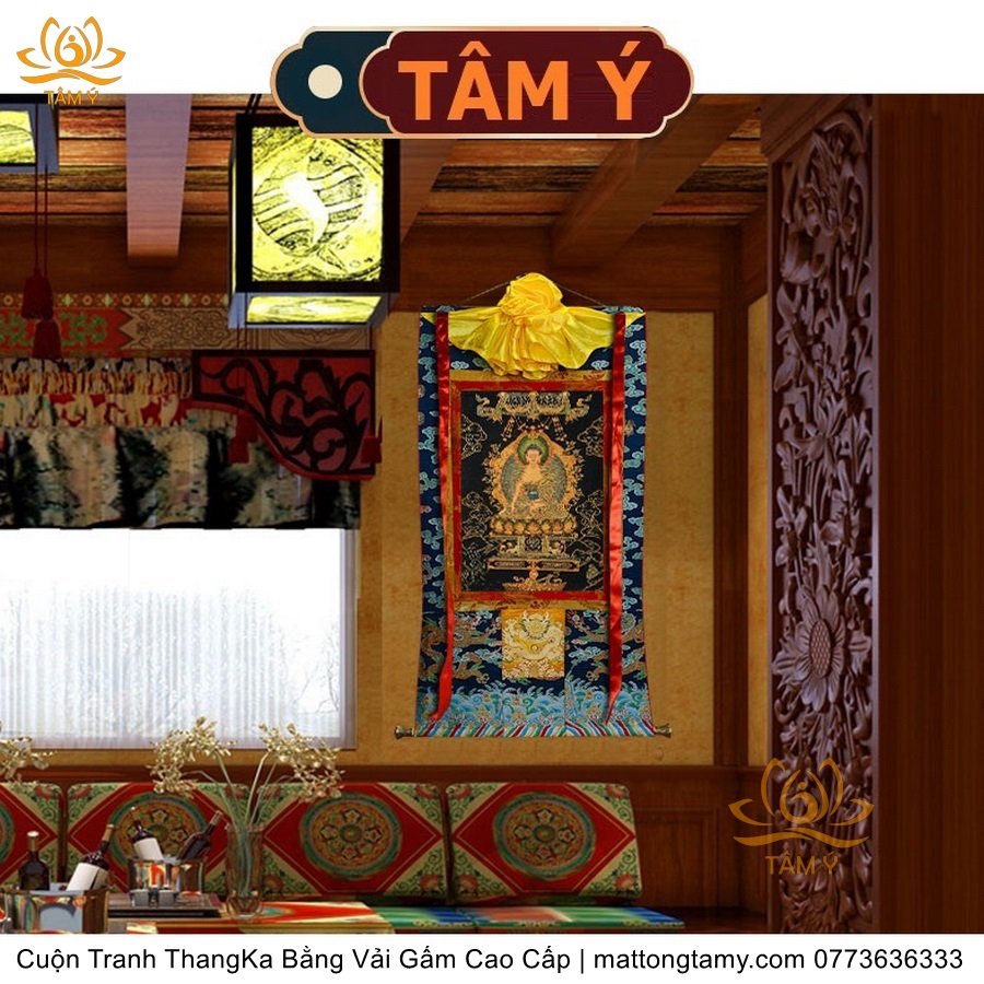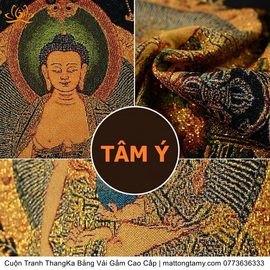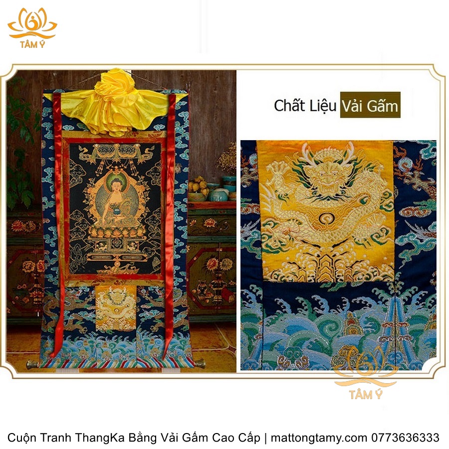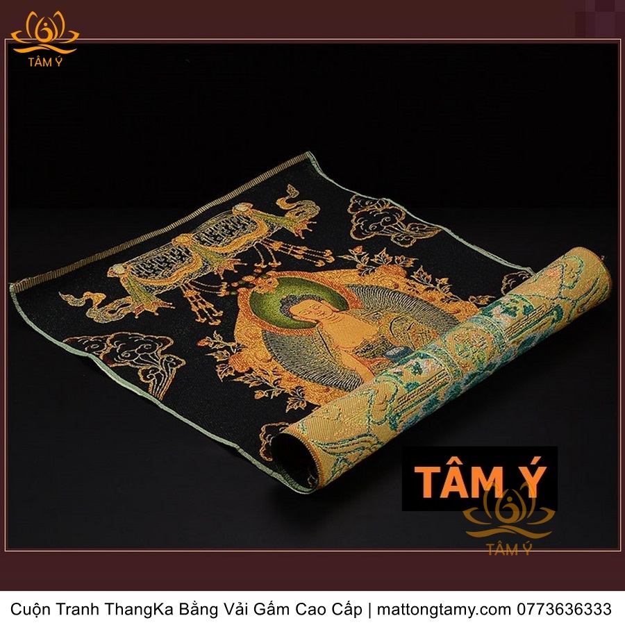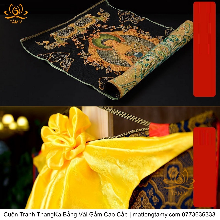 Cuộn Tranh ThangKa Phật Bản Mệnh Thích Ca Bằng Vải Gấm Cao Cấp, Kiểu 3, TCT21