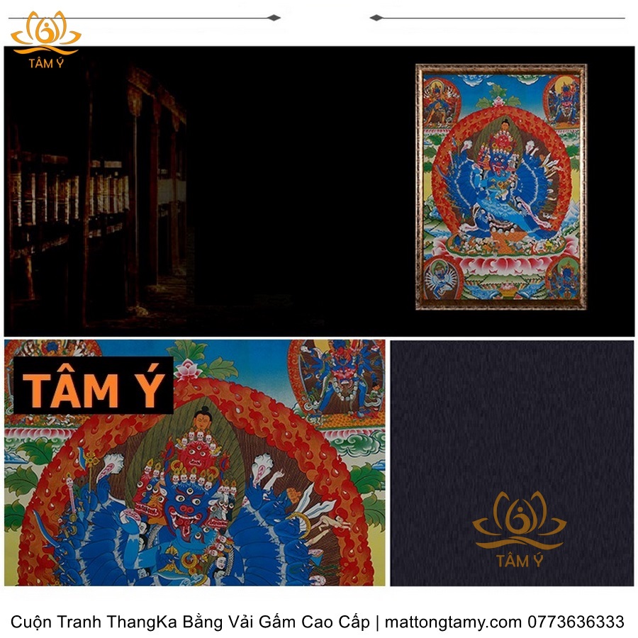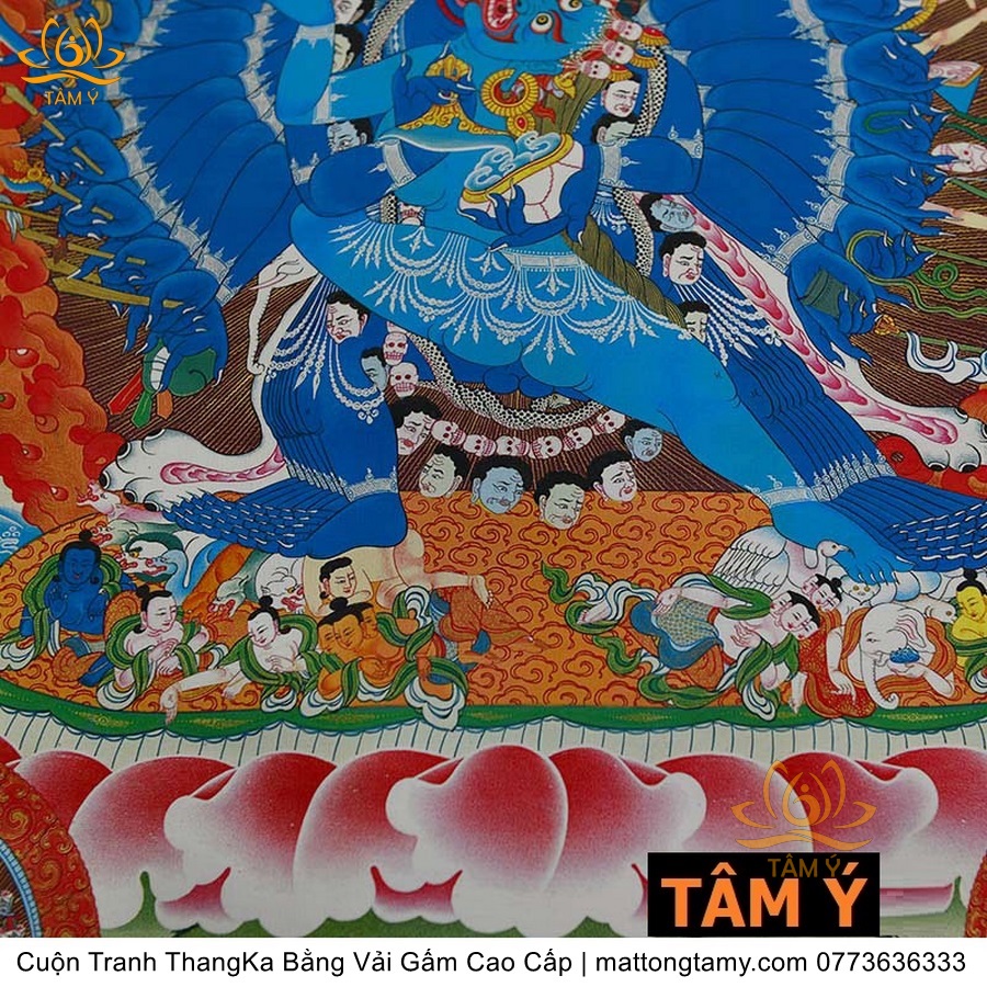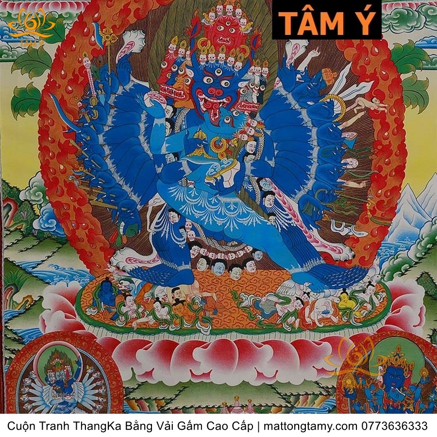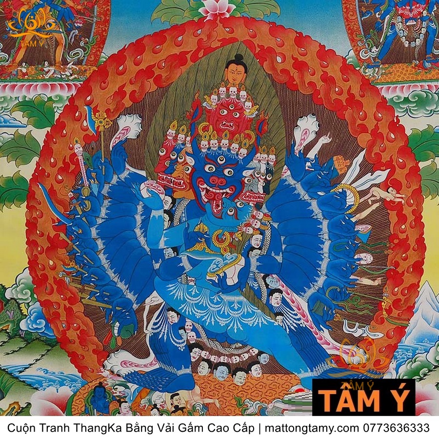 Cuộn Tranh ThangKa Phật Đại Uy Đức Minh Vương Yamatanka Bằng Vải Gấm Cao Cấp, Kiểu 3, TCT74