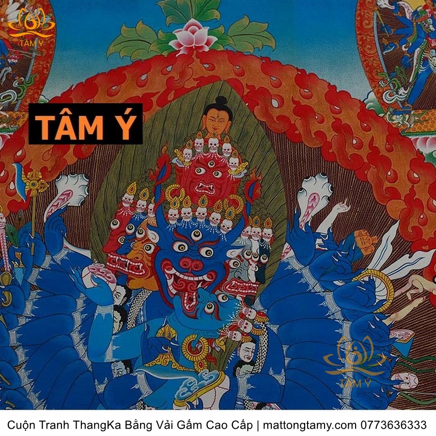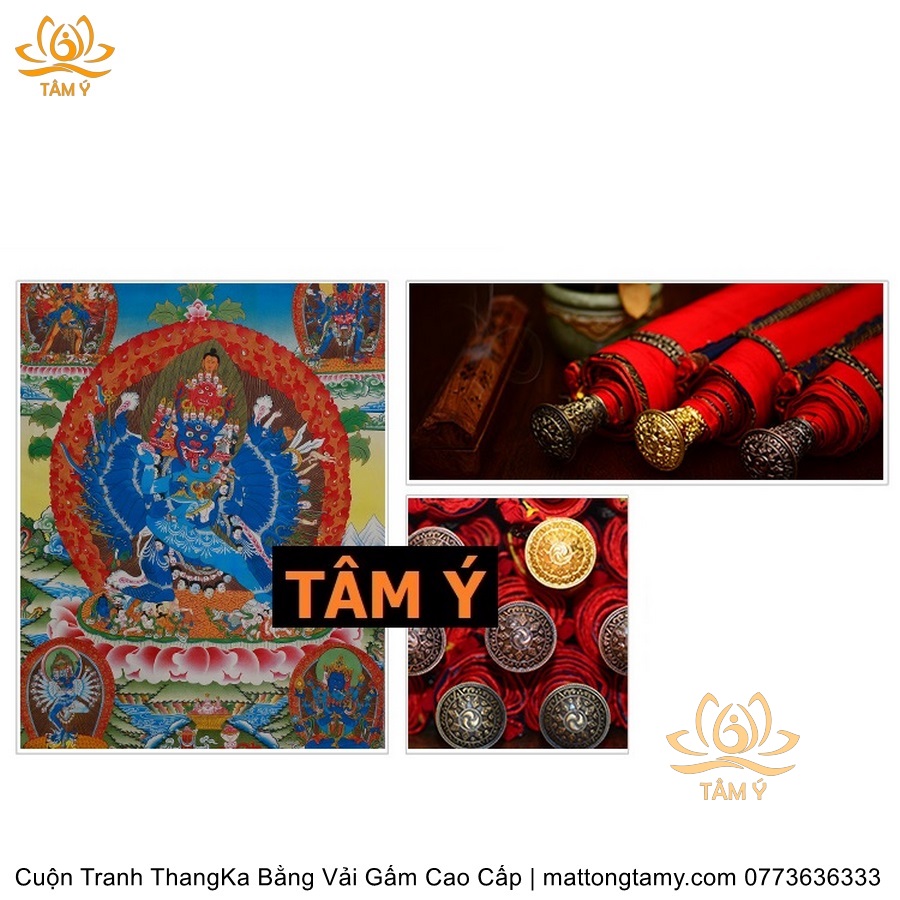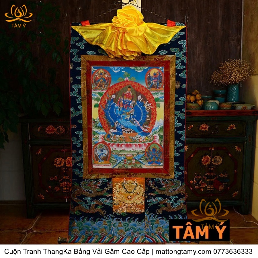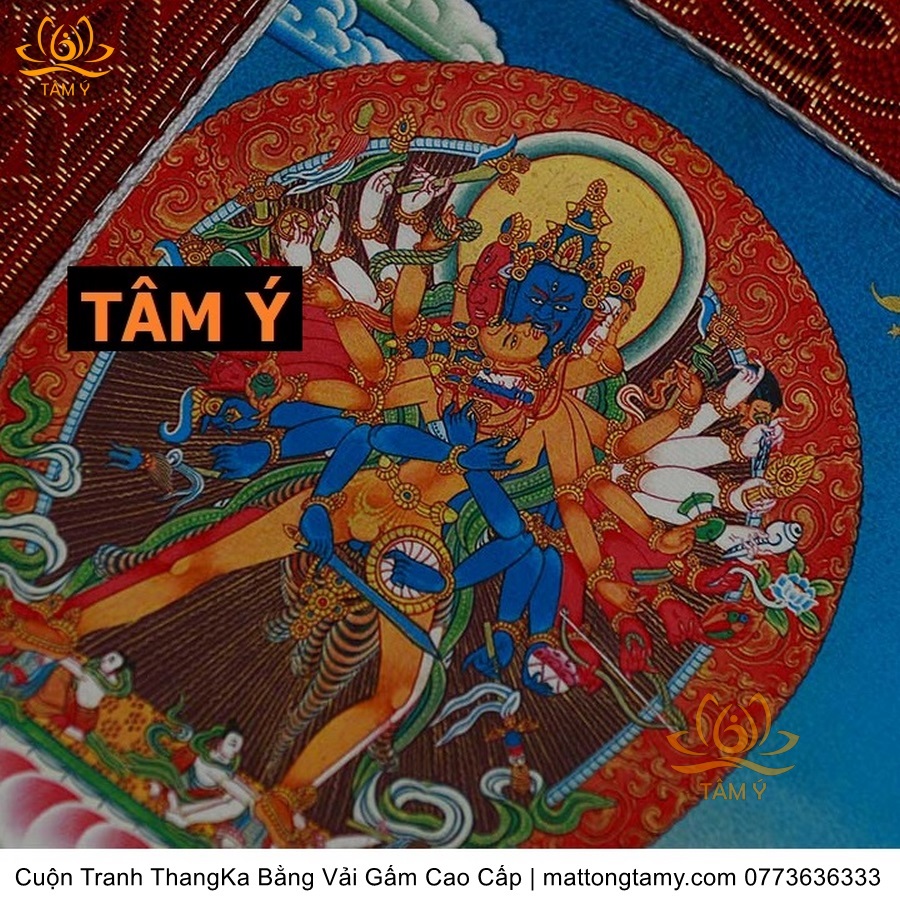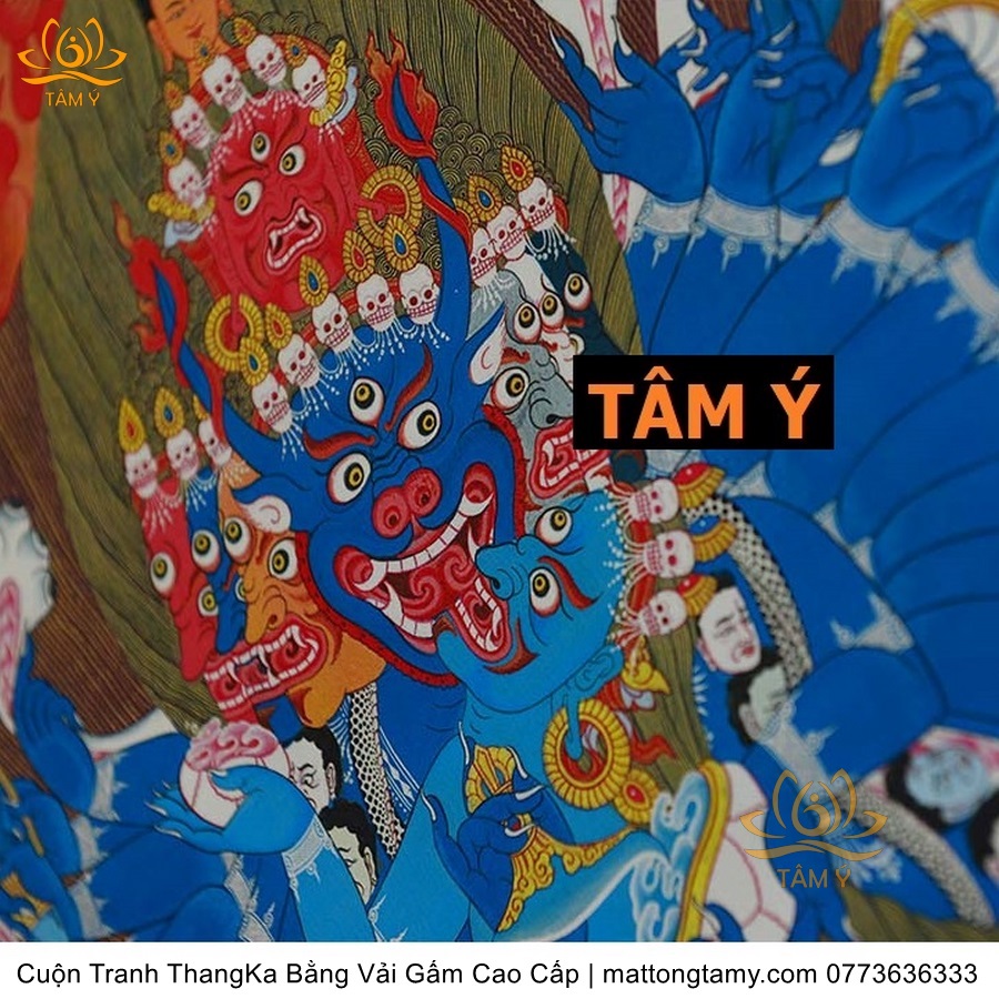 Cuộn Tranh ThangKa Phật Đại Uy Đức Minh Vương Yamatanka Bằng Vải Gấm Cao Cấp, Kiểu 3, TCT74