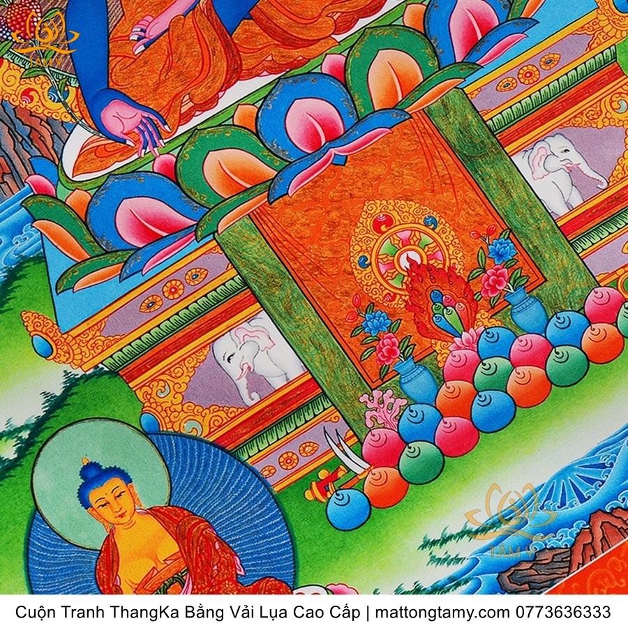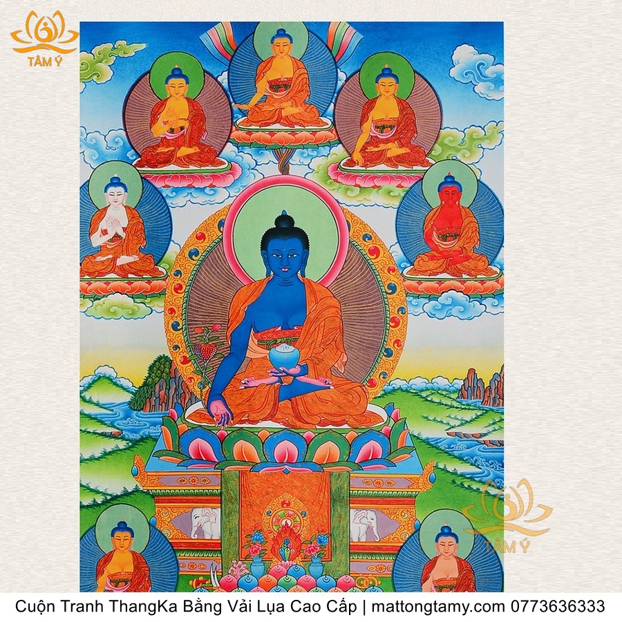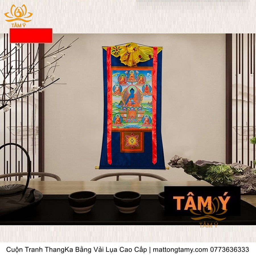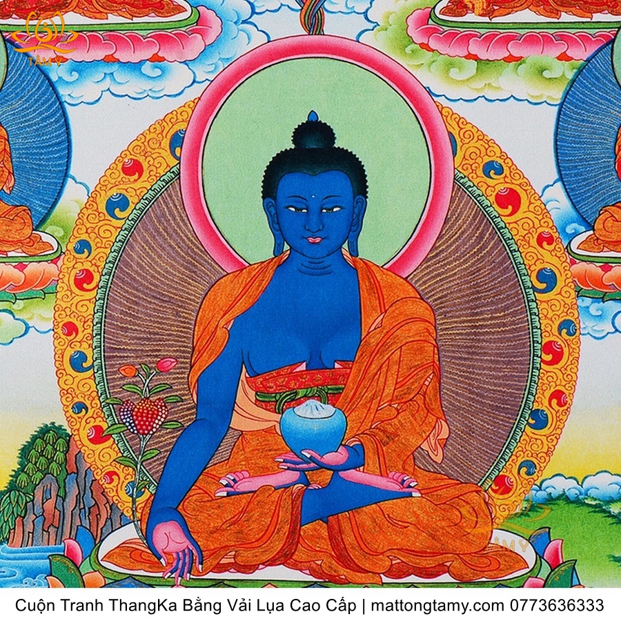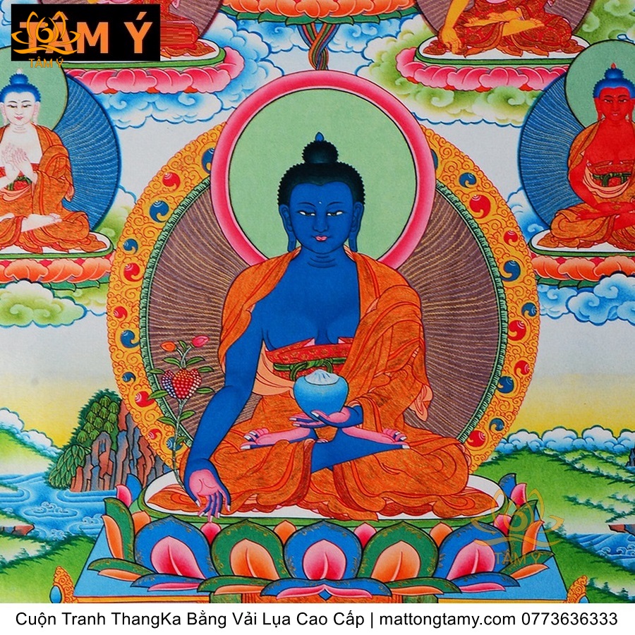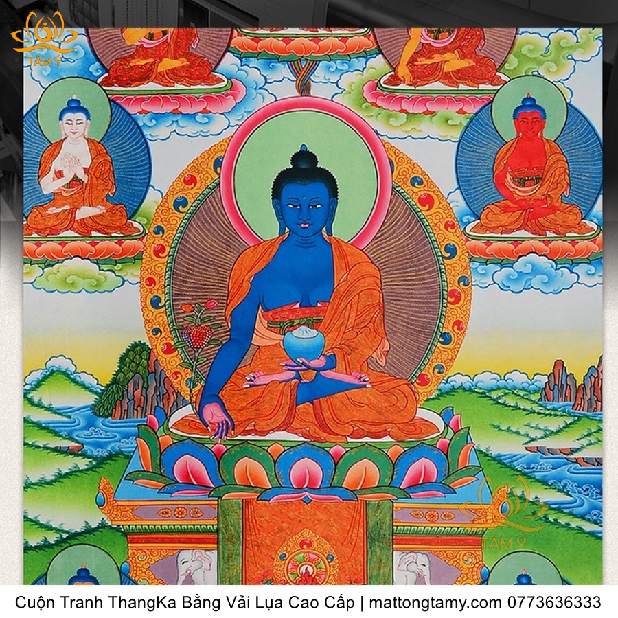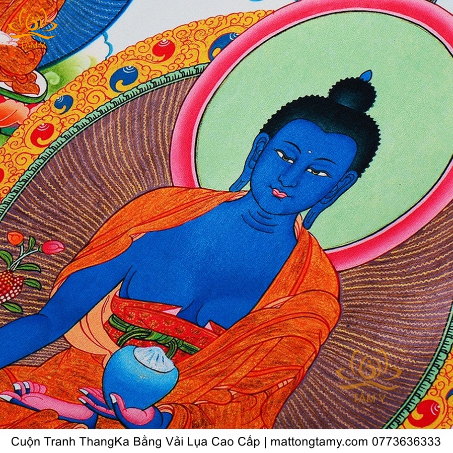 Cuộn Tranh ThangKa Phật Dược Sư Bằng Vải Gấm Cao Cấp Kiểu 4, TCT58
