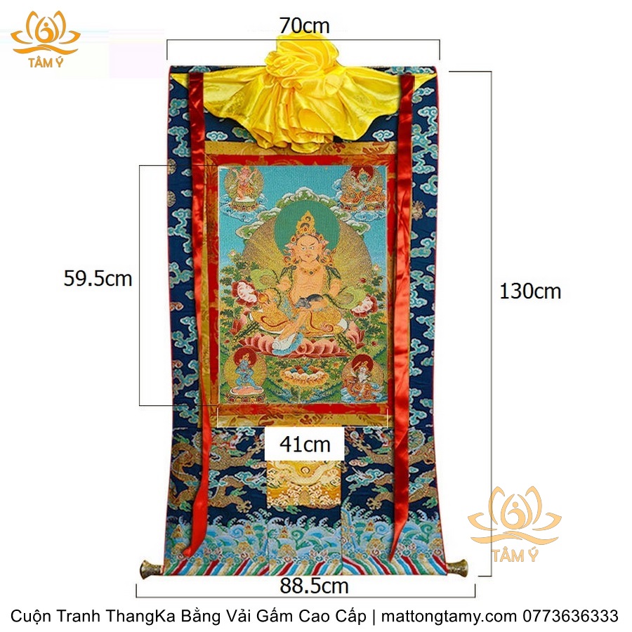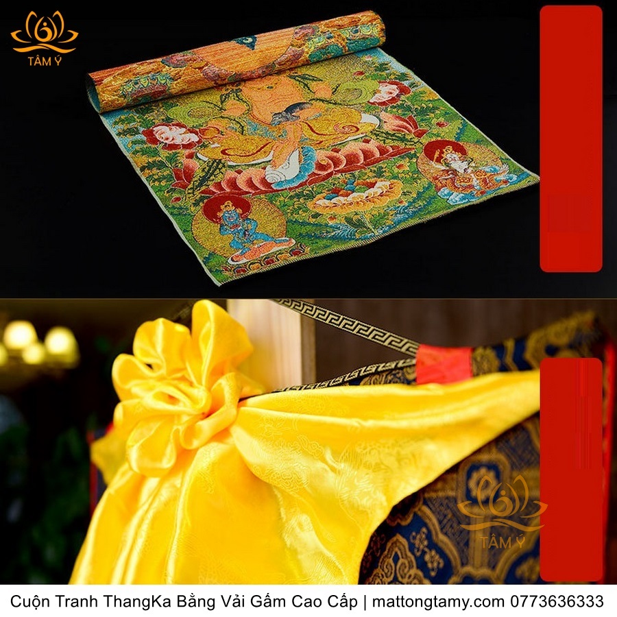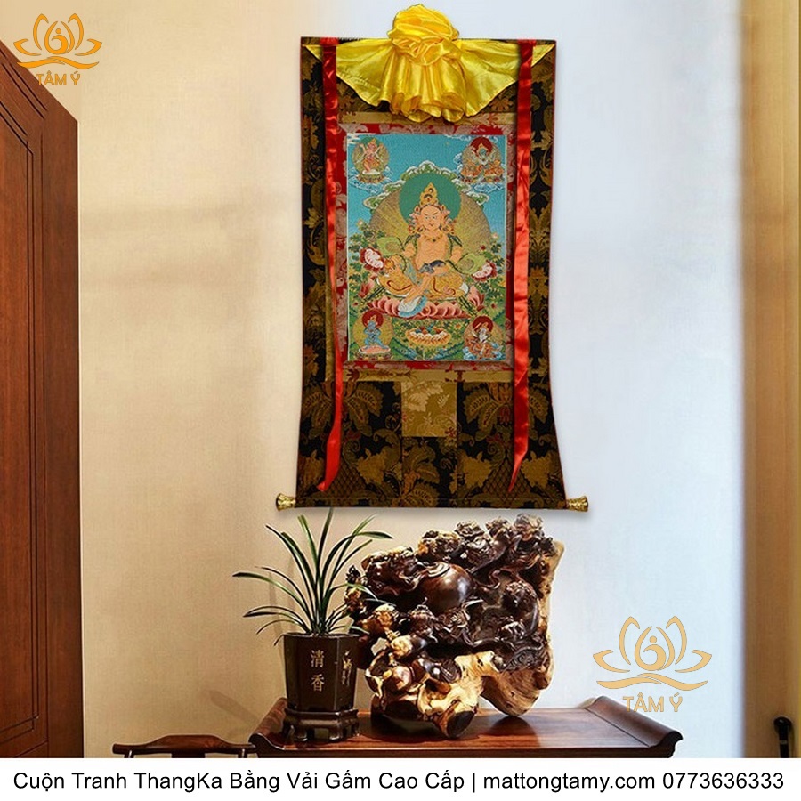Cuộn Tranh ThangKa Phật Hoàng Thần Tài Bằng Vải Gấm Cao Cấp, Kiểu 2, TCT33