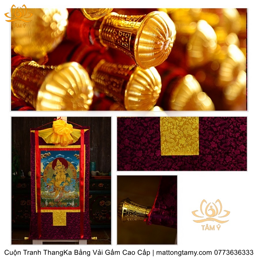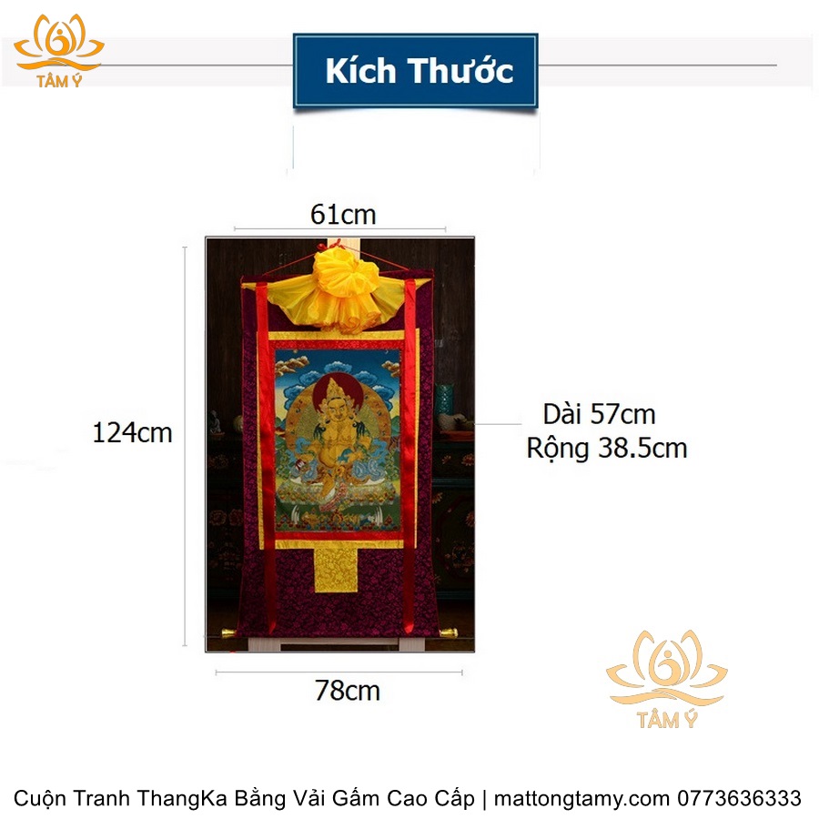 Cuộn Tranh ThangKa Phật Hoàng Thần Tài Bằng Vải Gấm Cao Cấp, Kiểu 3, TCT36