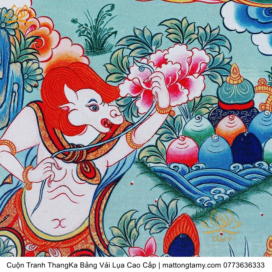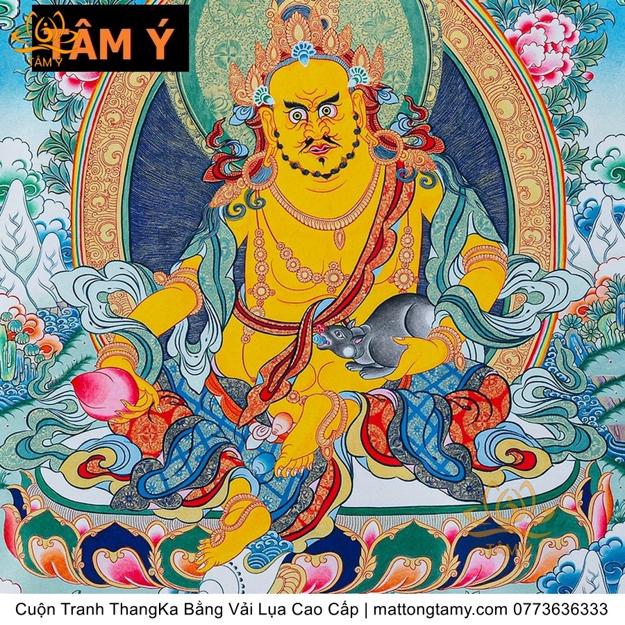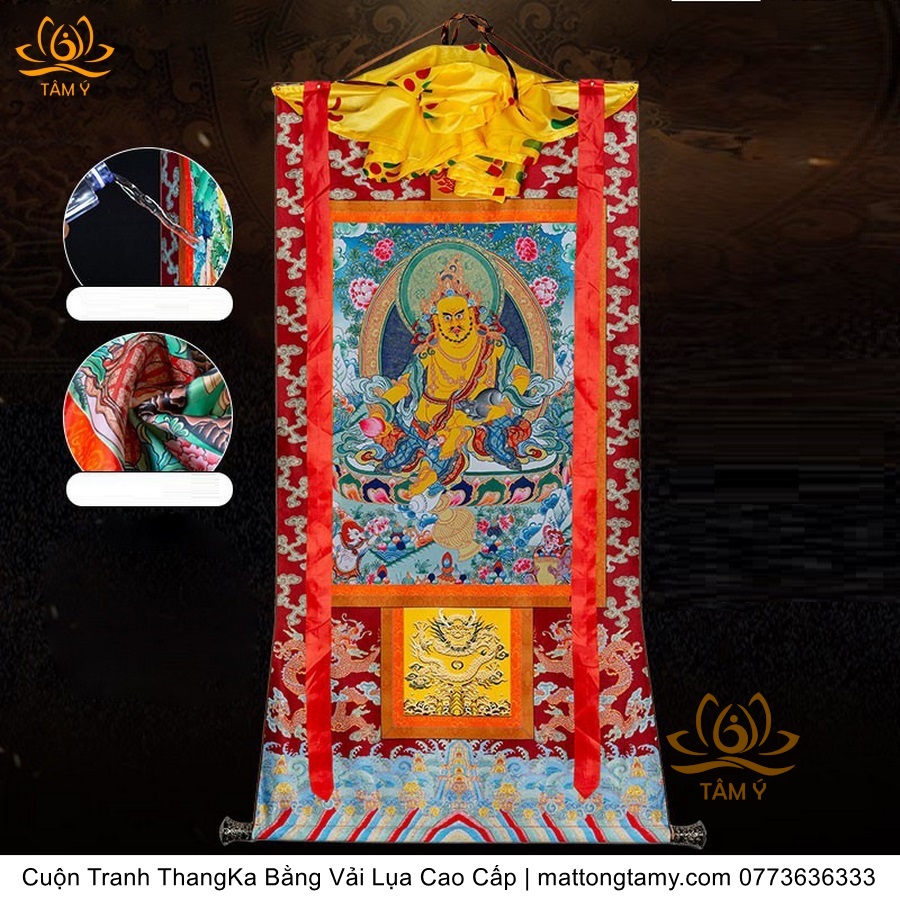 Cuộn Tranh ThangKa Phật Hoàng Thần Tài Bằng Vải Gấm Cao Cấp, Kiểu 5, TCT43