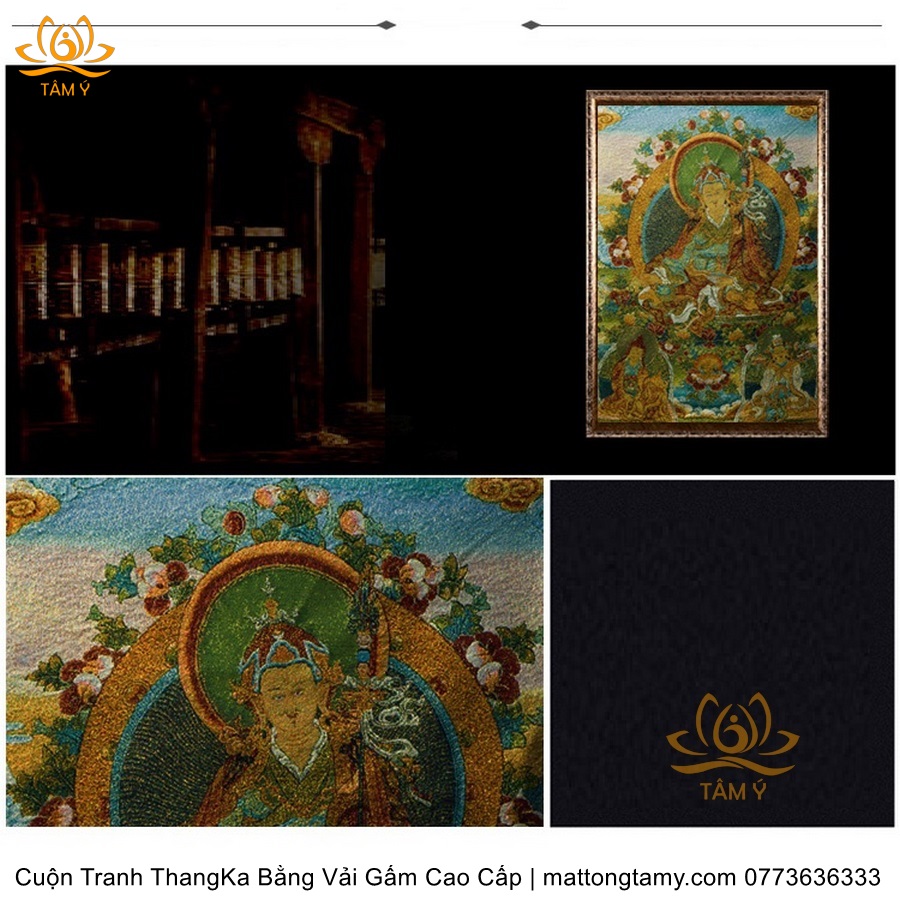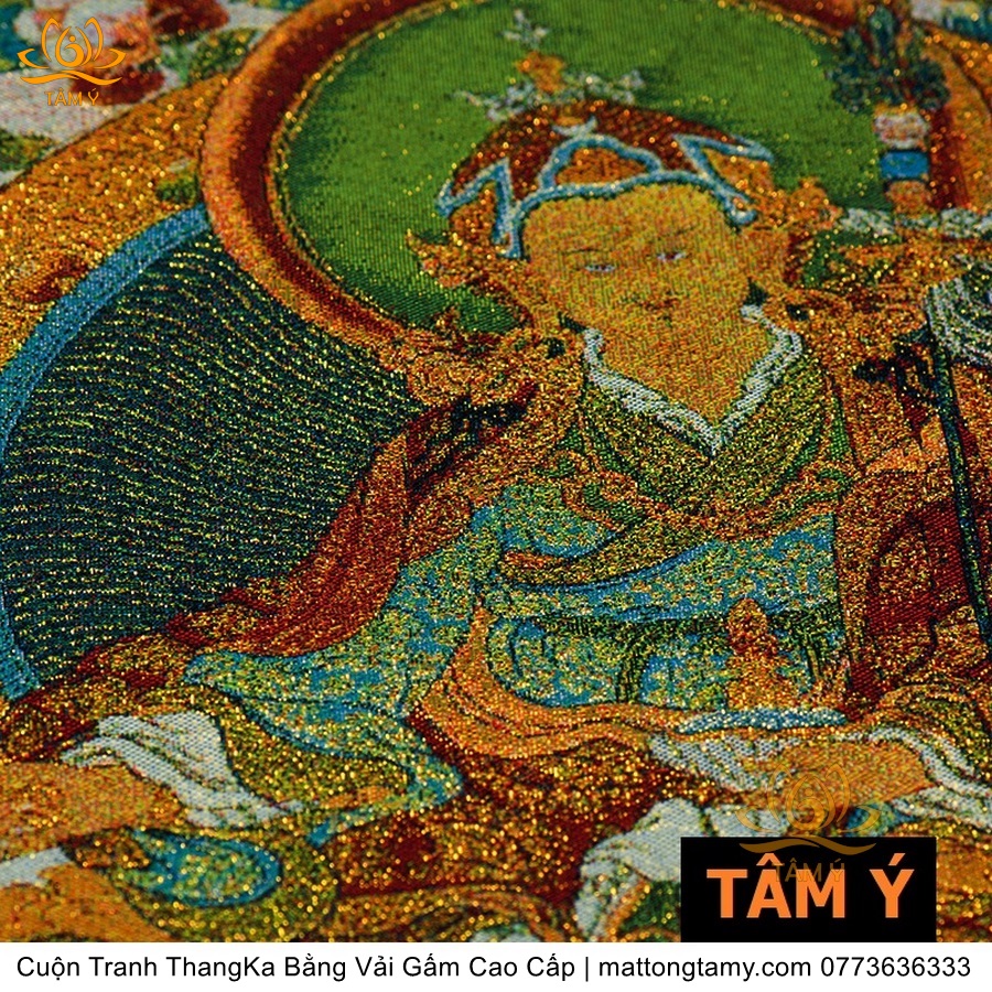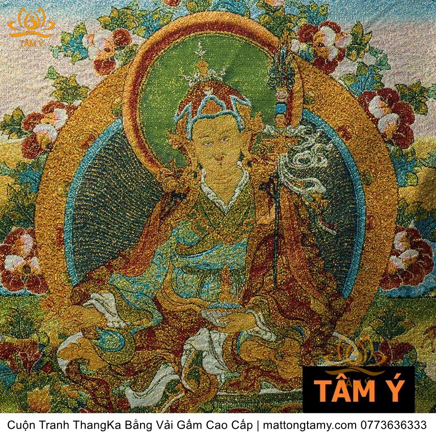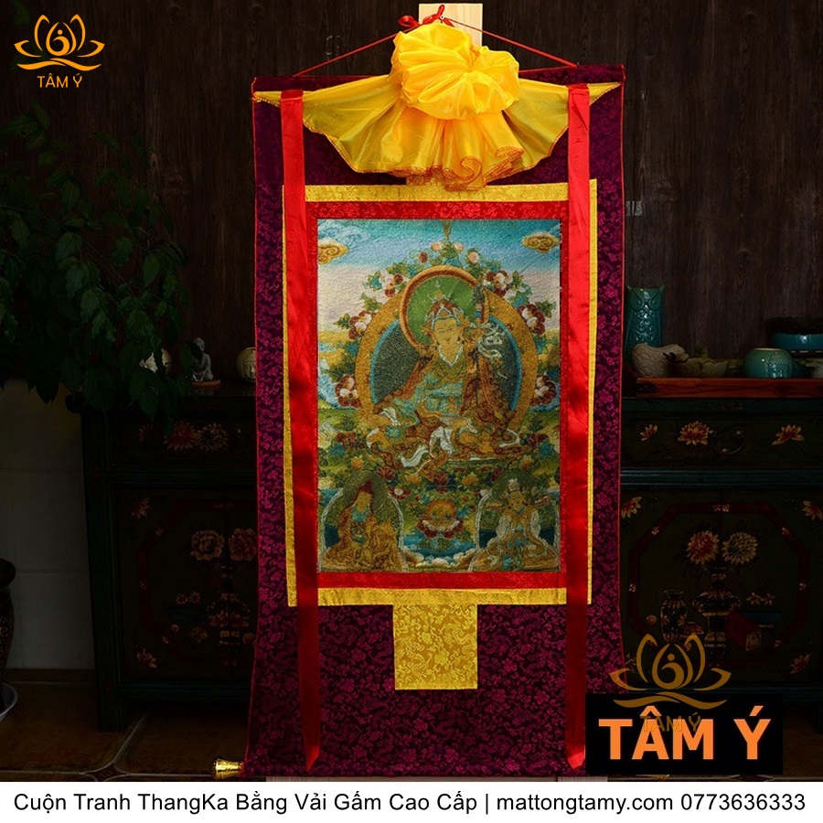 Cuộn Tranh ThangKa Phật Liên Hoa Sinh Bằng Vải Gấm Cao Cấp Kiểu 5, TCT16
