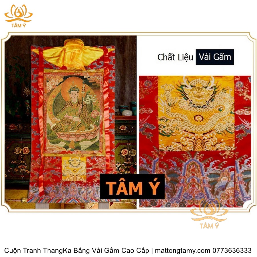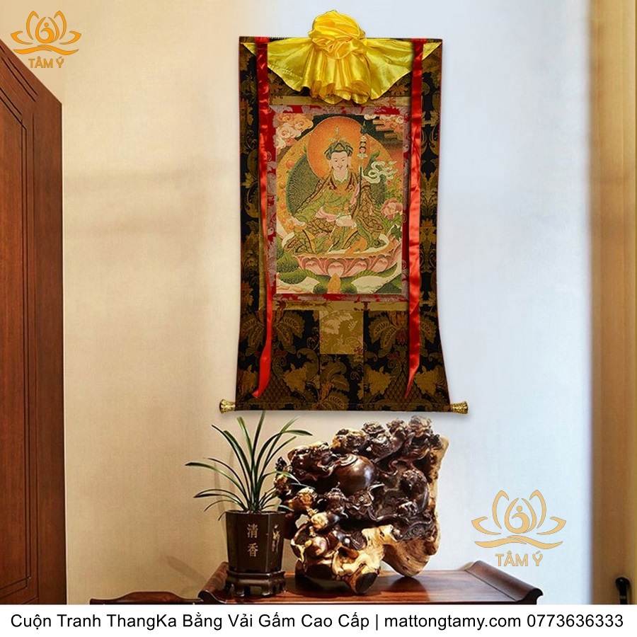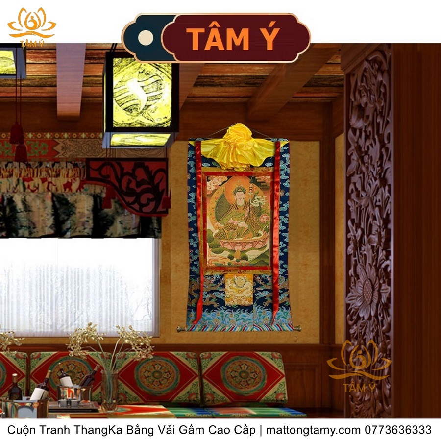 Cuộn Tranh ThangKa Phật Liên Hoa Sinh Bằng Vải Gấm Cao Cấp Kiểu 7, TCT35