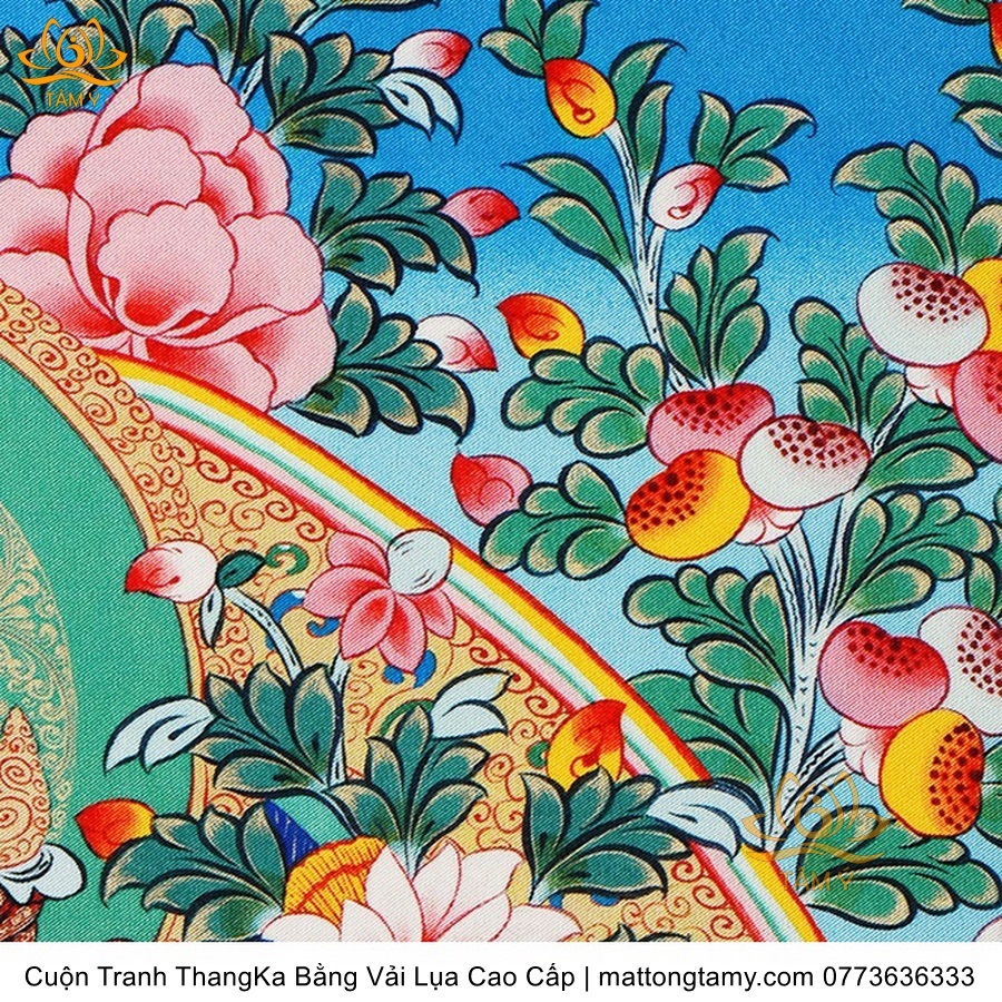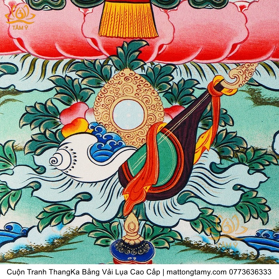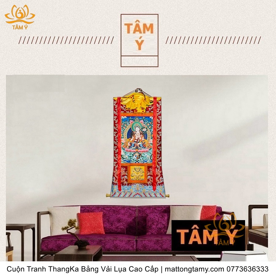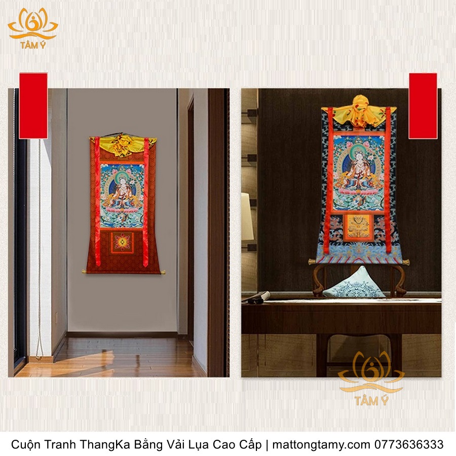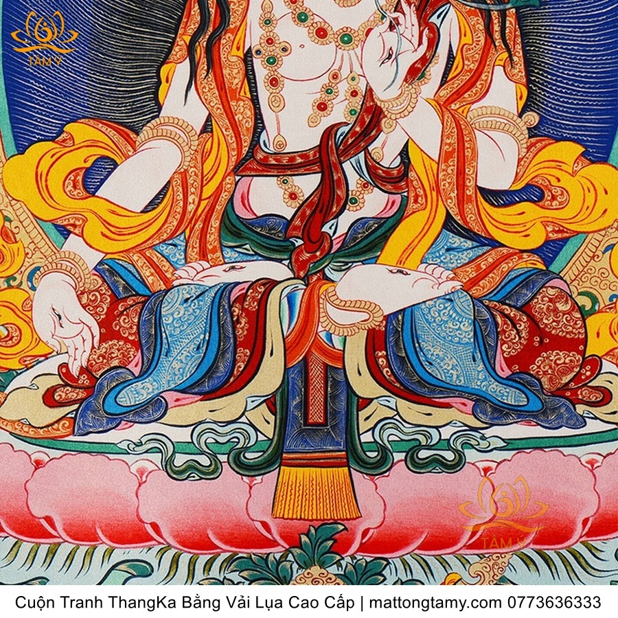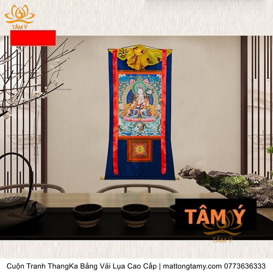 Cuộn Tranh ThangKa Phật Tara Trắng Bằng Vải Gấm Cao Cấp, Kiểu 2, TCT51