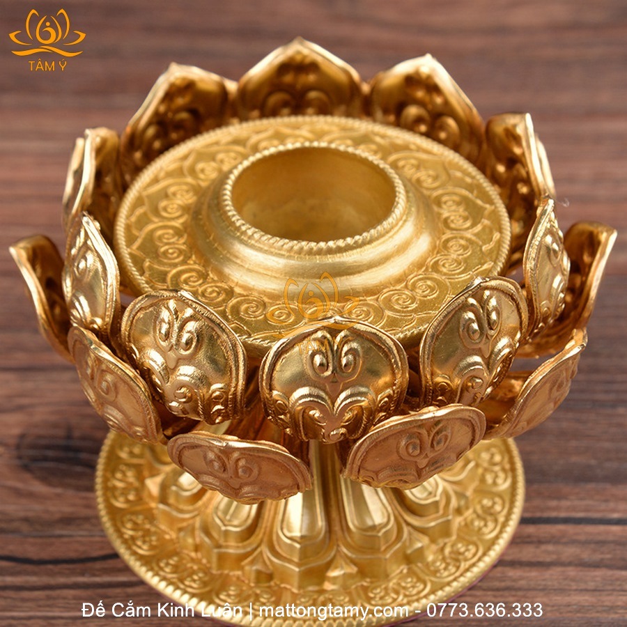 Đế Cắm Kinh Luân Bằng Đồng Nguyên Chất Hình Đóa Sen 2 Tầng DKL11