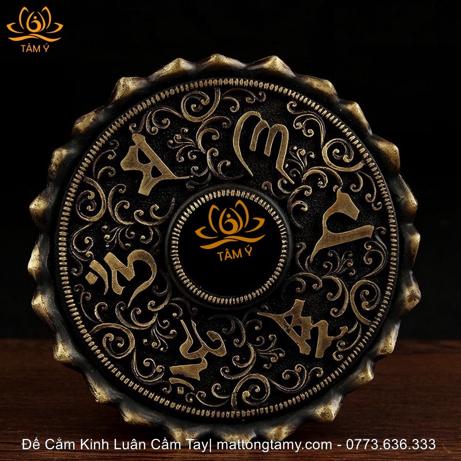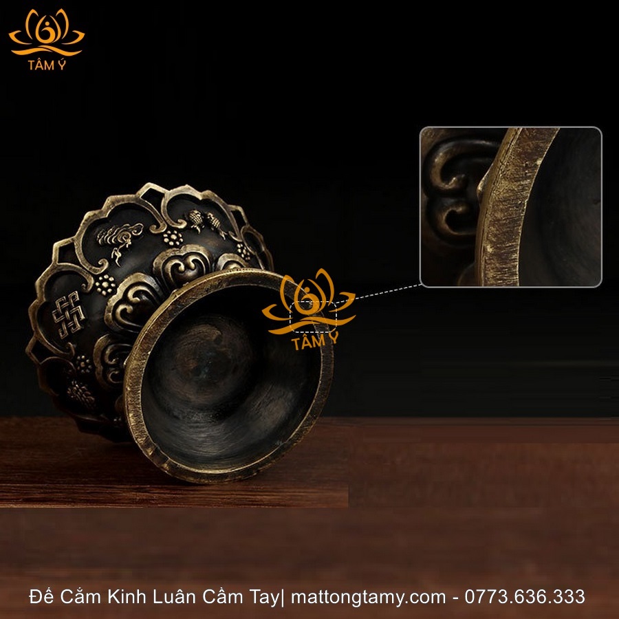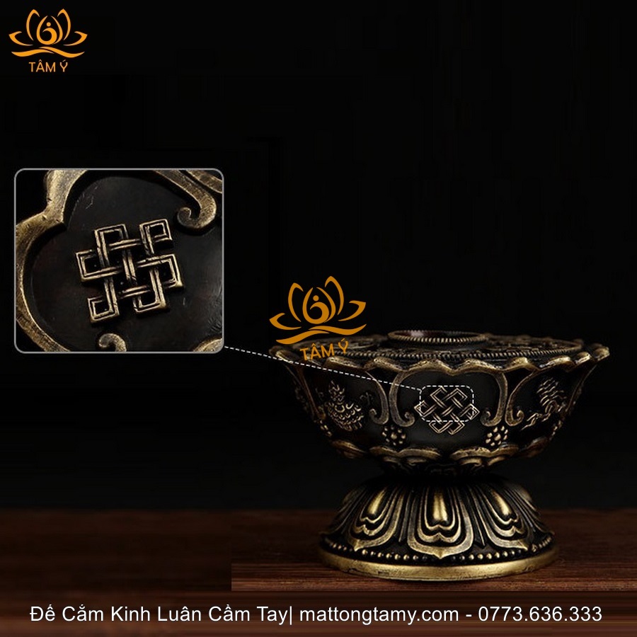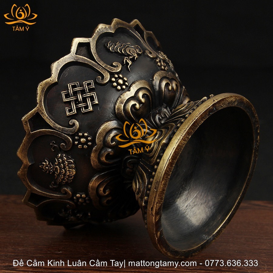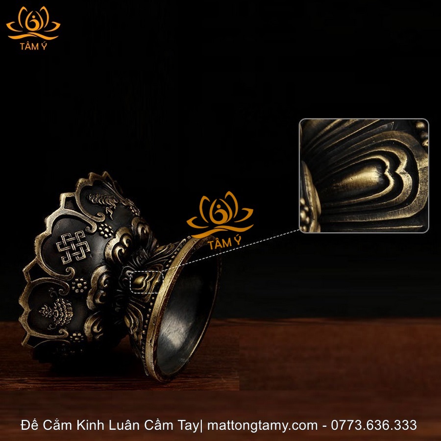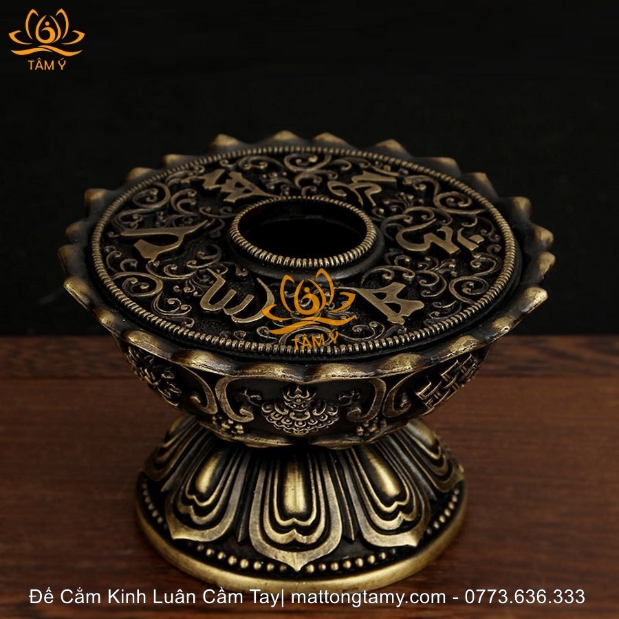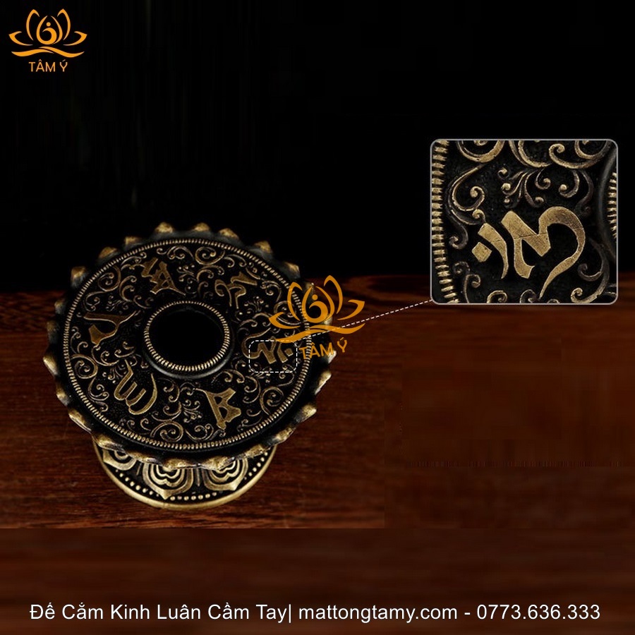 Đế Cắm Kinh Luân Cầm Tay Bằng Đồng Hoa Văn Bát Kiết Tường và Lục Tự Đại Minh DKL07