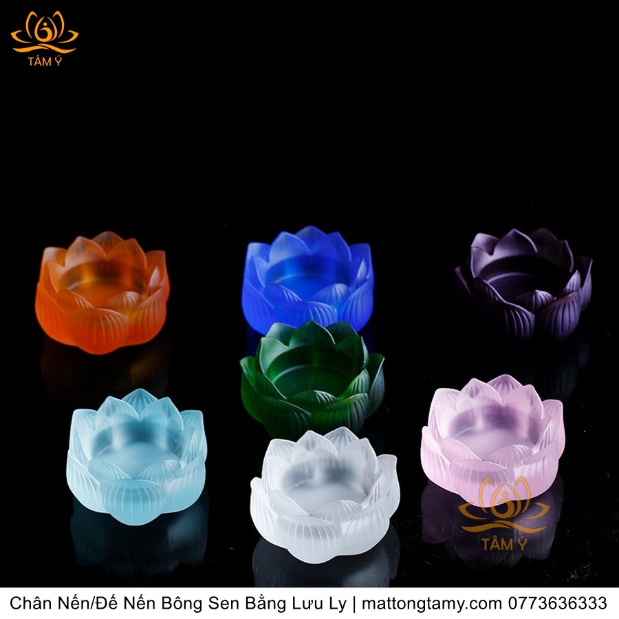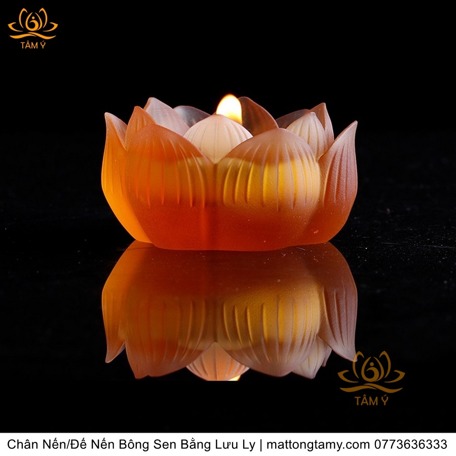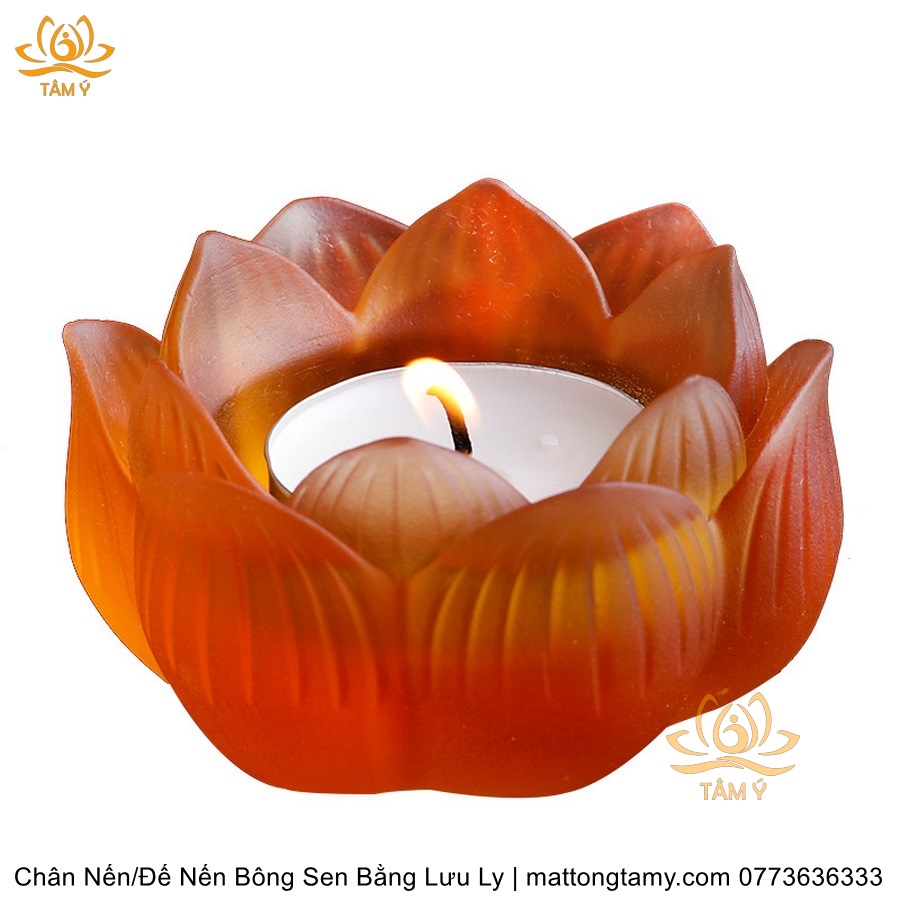 Đế nến/Chân Nến Bằng Lưu Ly Cao Cấp Hình Bông Sen