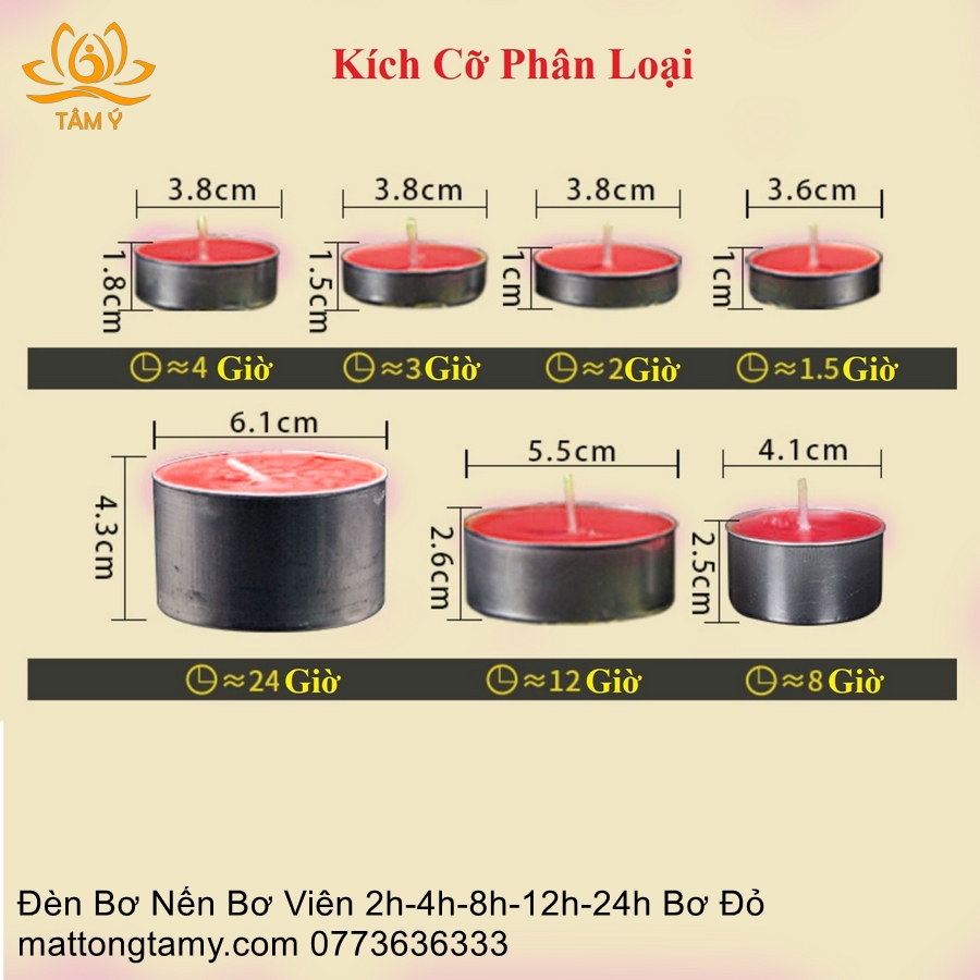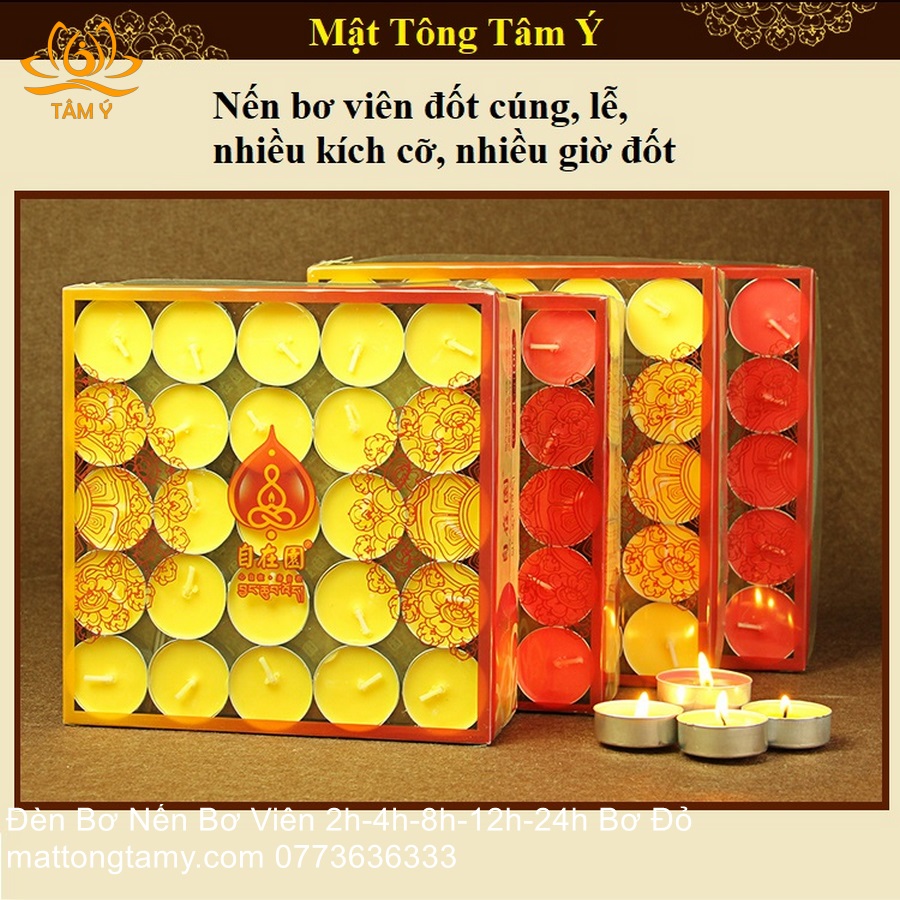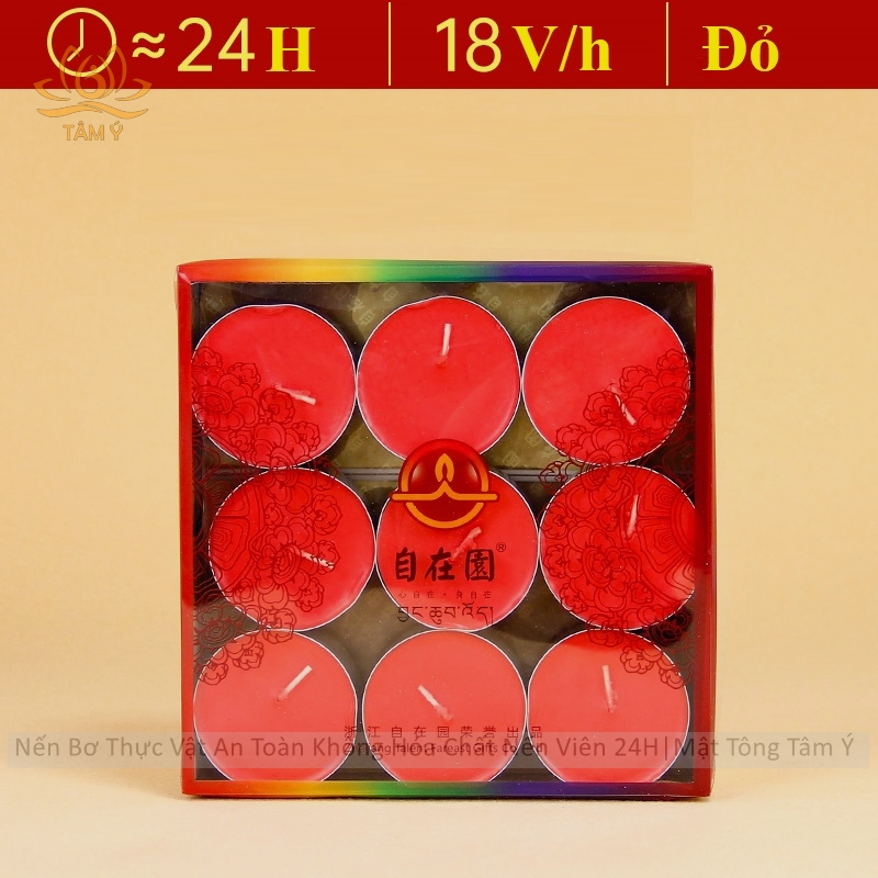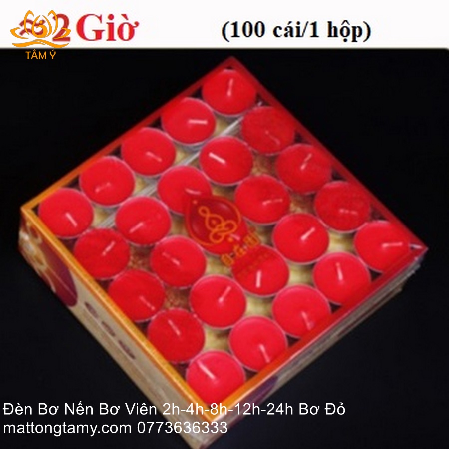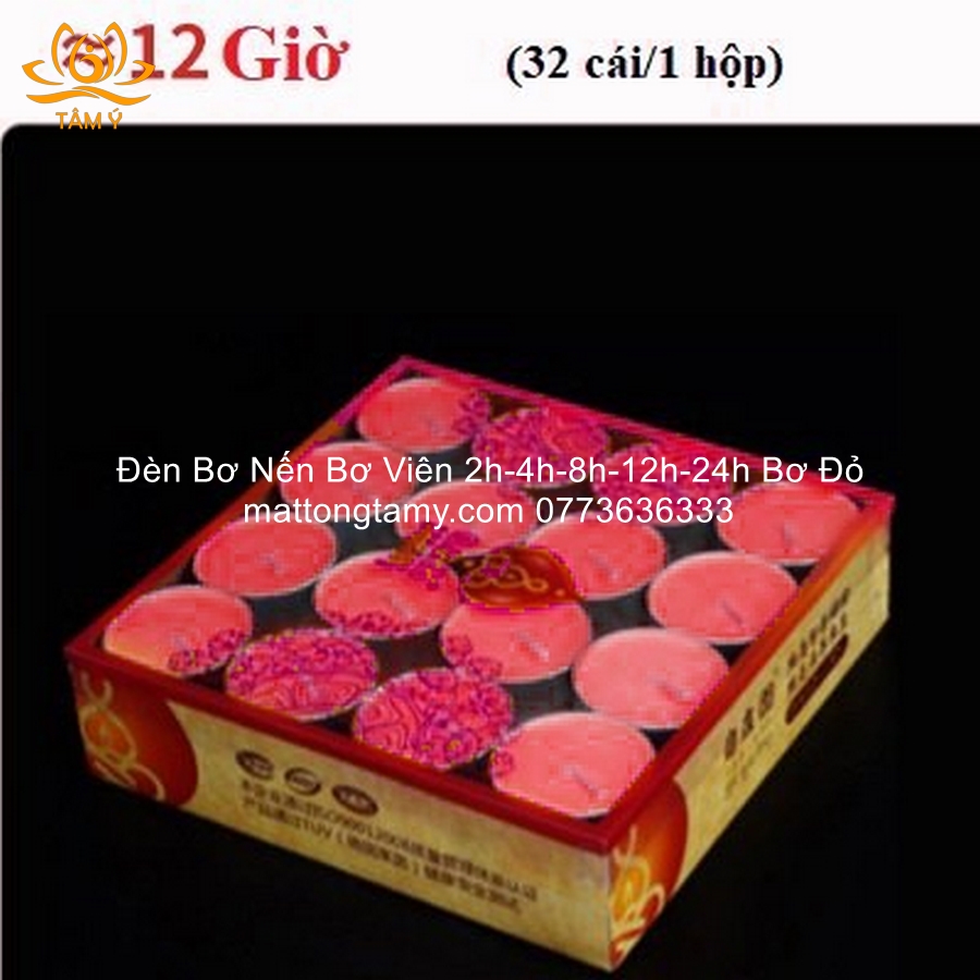 - nến thời lượng 12 giờ có 32 viên/hộp, màu sắc: đỏ/vàng