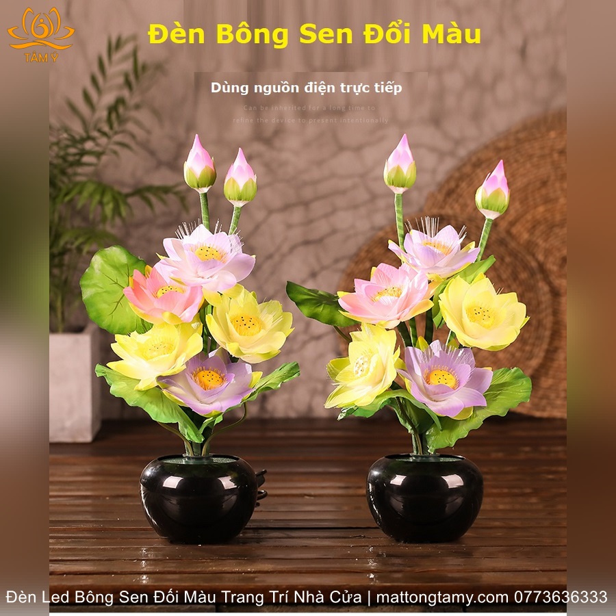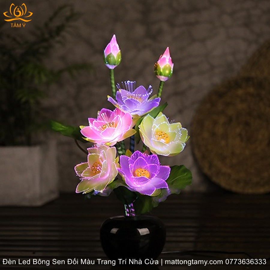 Đèn LED Thất Sắc Liên Hoa 7 Bông Sen Đổi Màu Rực Rỡ